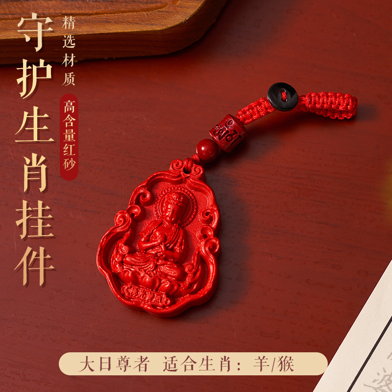 십이지신 부처님 붉은 모래 목걸이 열쇠고리 펜던트, 생년월일 남녀 공용 자동차 키 가방 장식품스토어 가기