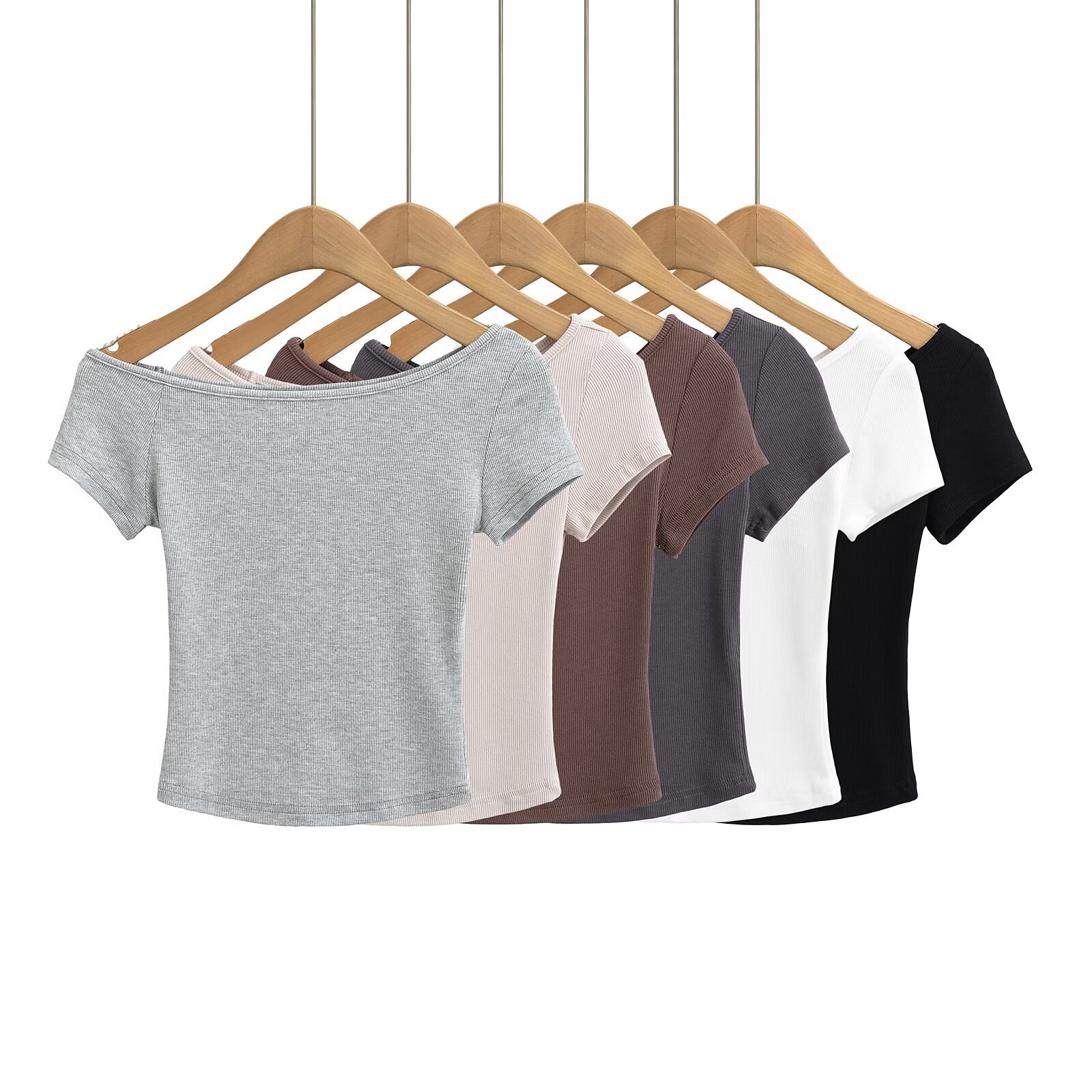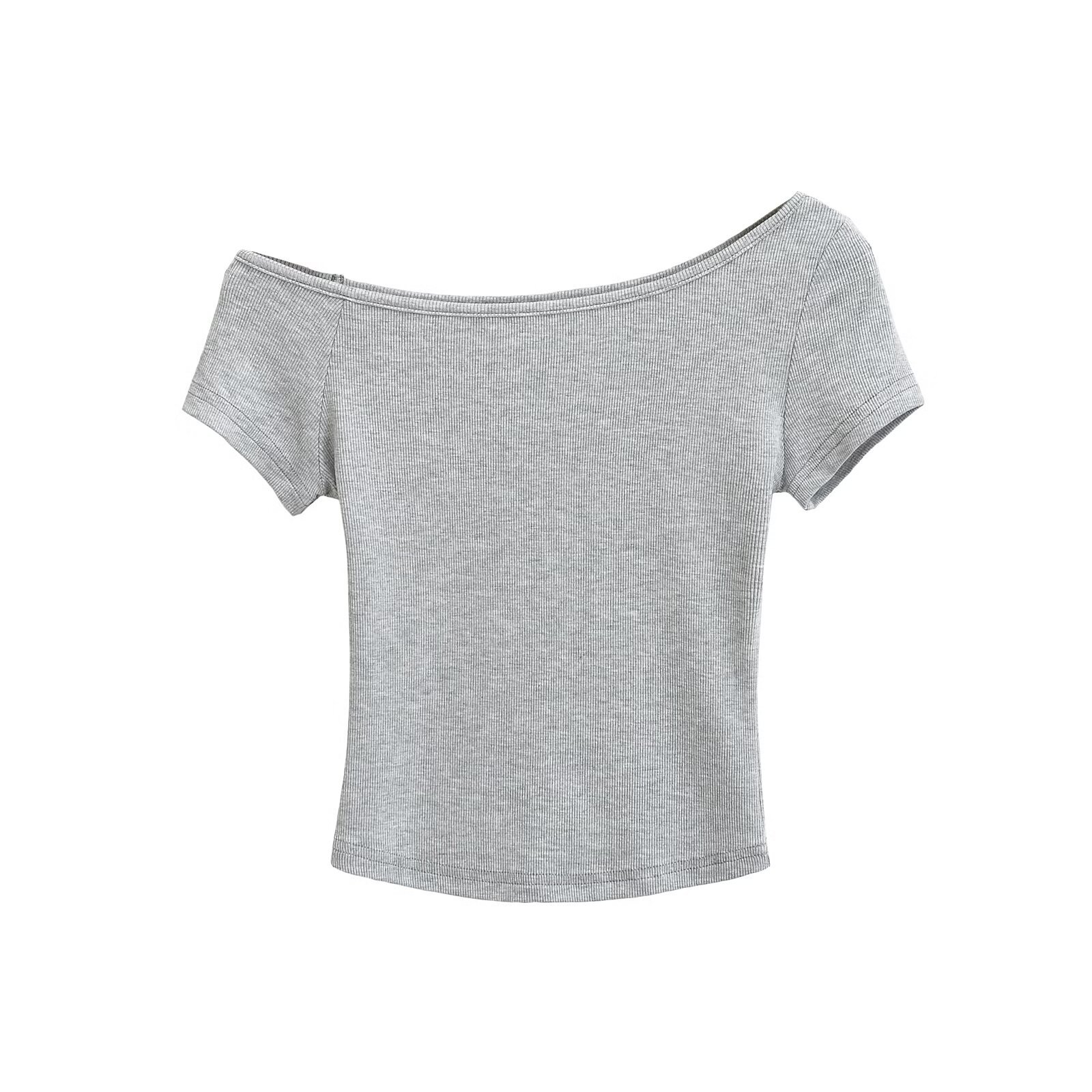 미국식 슬림 반팔 최고 여성 여름 섹시한 티셔츠 시즌 오프 숄더 순수 짧은 스레드 슬림 탑 도매