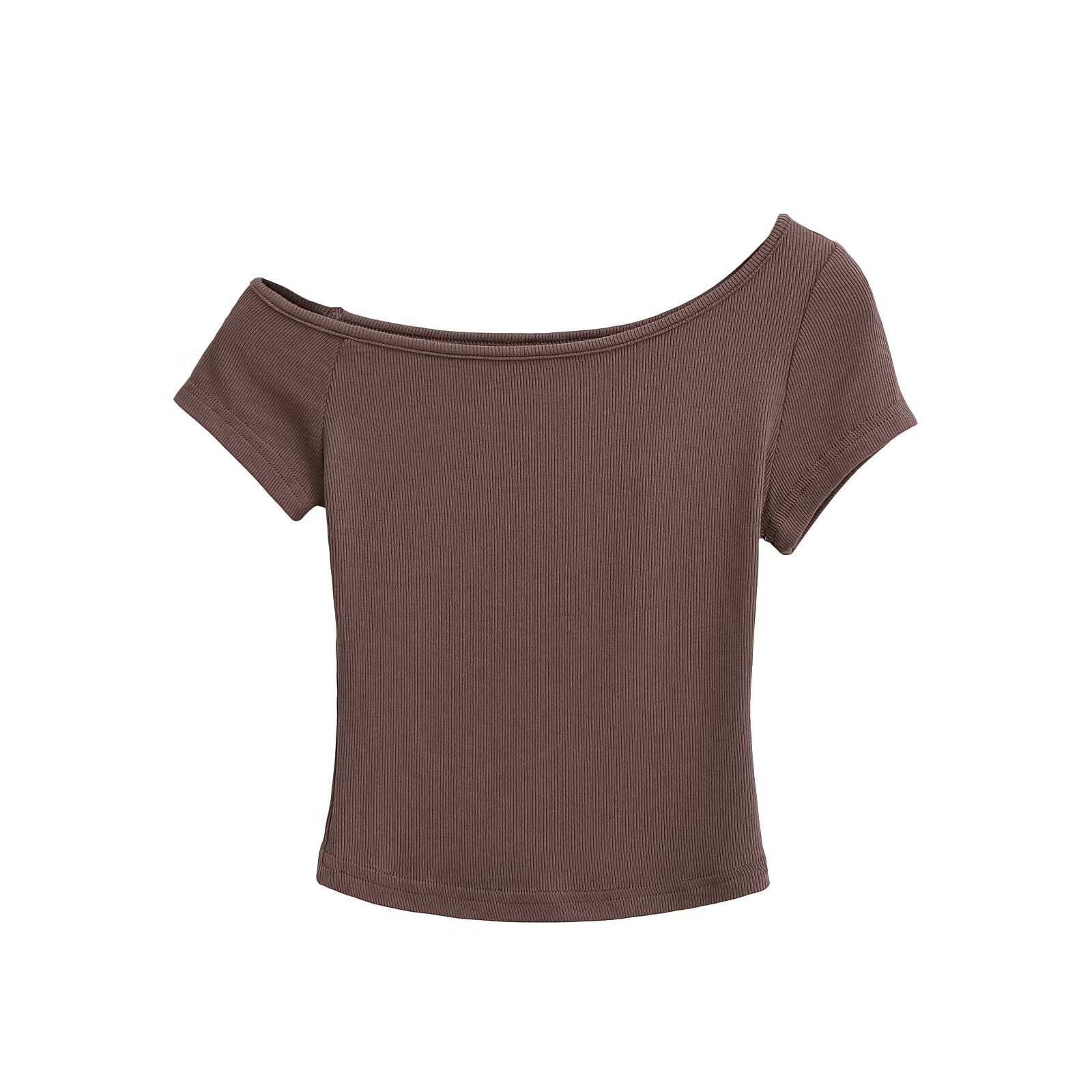 미국식 슬림 반팔 최고 여성 여름 섹시한 티셔츠 시즌 오프 숄더 순수 짧은 스레드 슬림 탑 도매스토어 가기