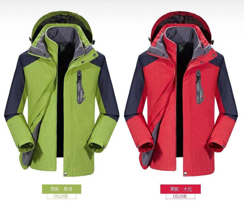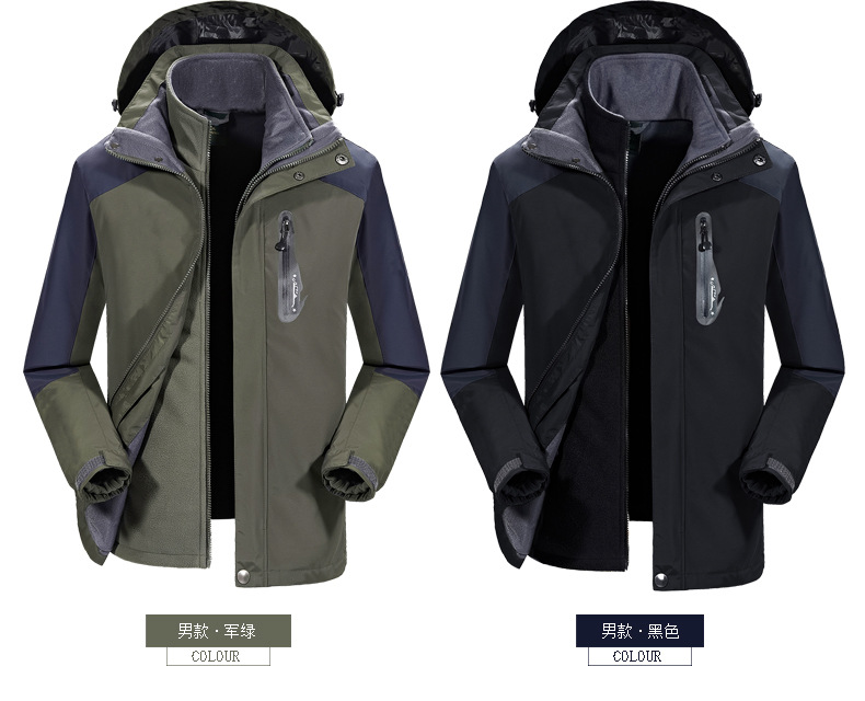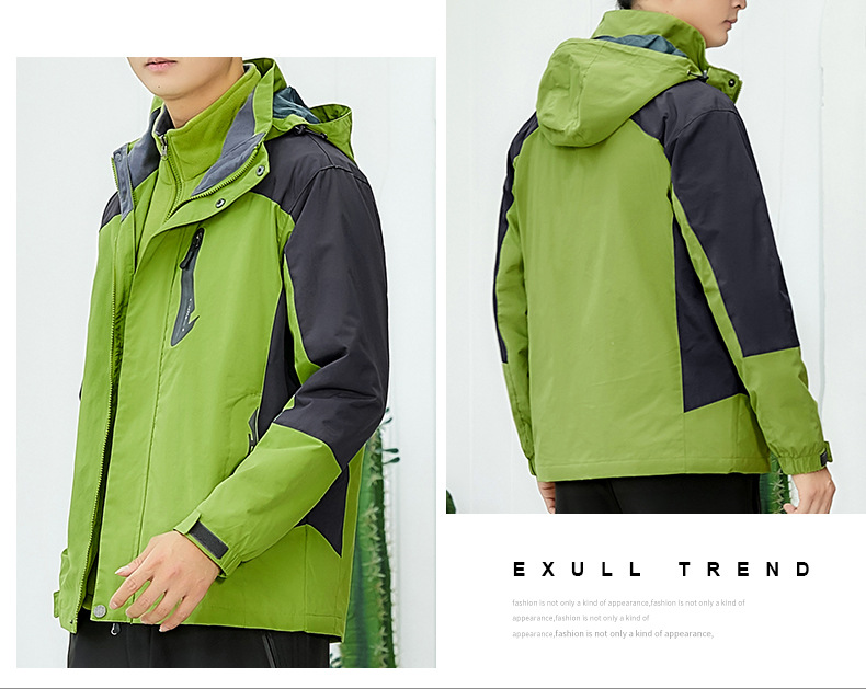 라이트 그린 작업복은 커플 남녀 코트 트렌디 브랜드 3 대 1 기모 두꺼운 방풍 야외 인쇄용