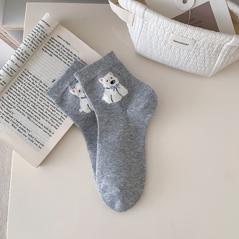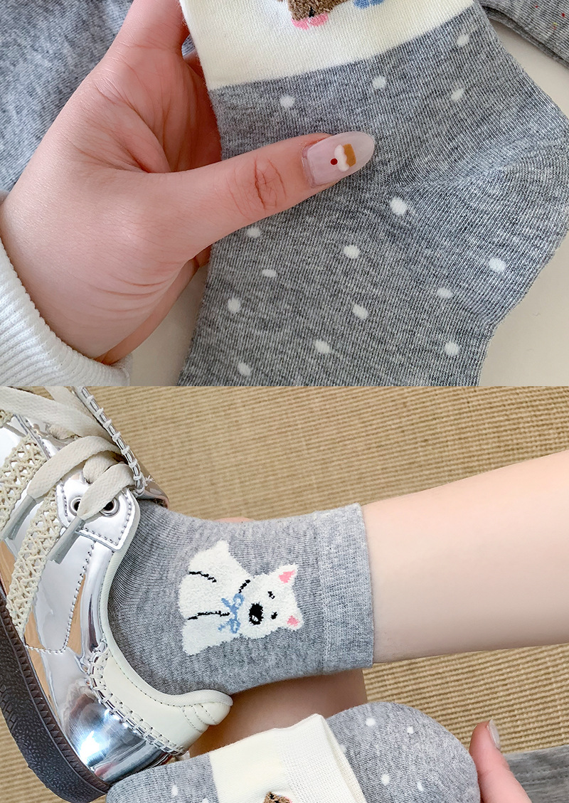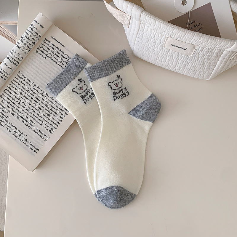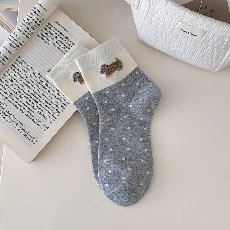 양말 여성 봄과 여름 회색 튜브 양말 한국 만화 강아지 더미 양말 귀여운 숙녀 면화 양말 도매