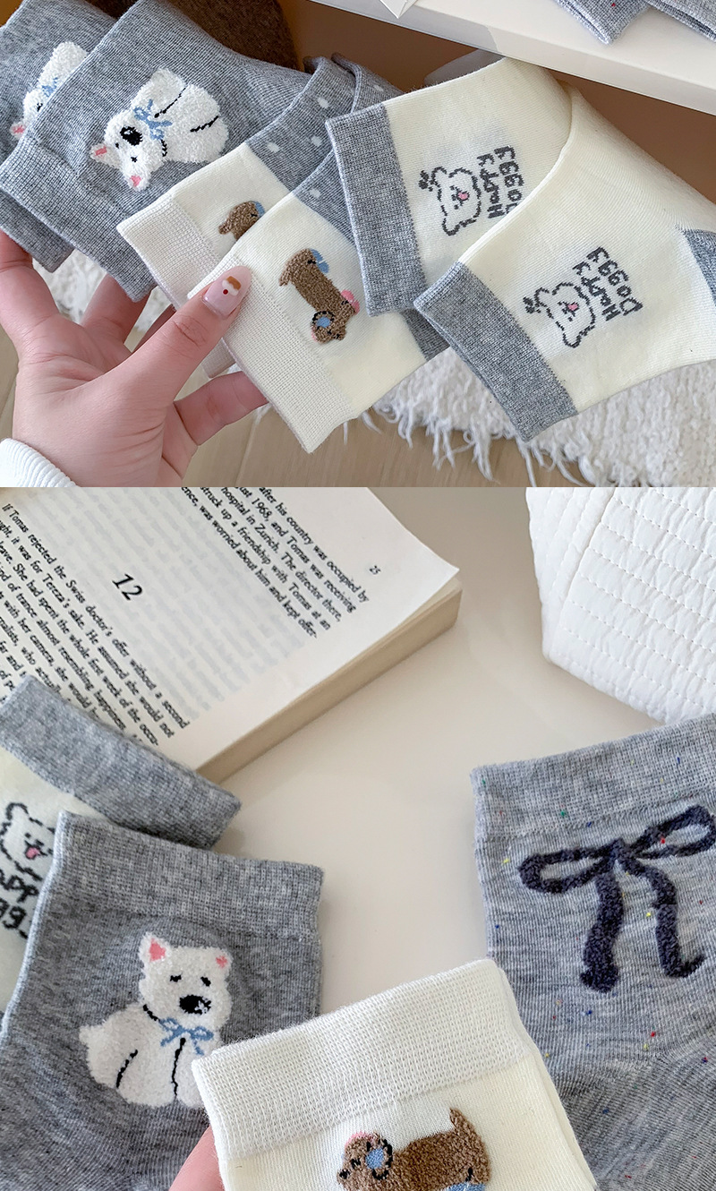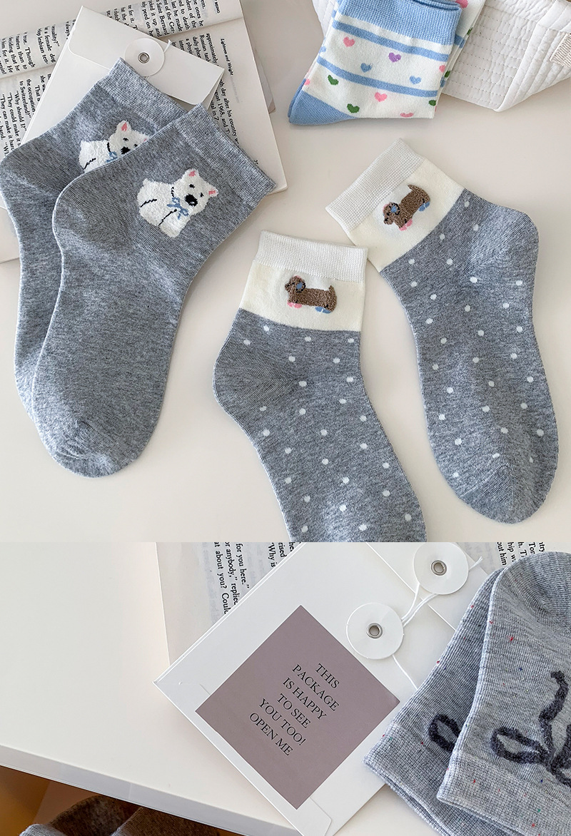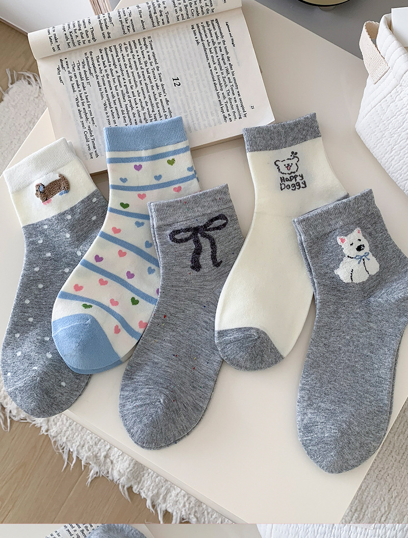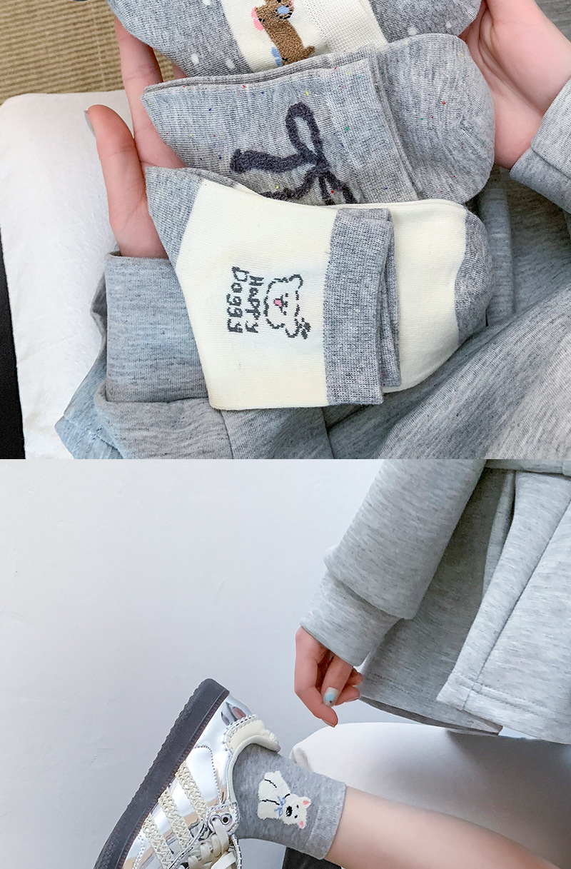 양말 여성 봄과 여름 회색 튜브 양말 한국 만화 강아지 더미 양말 귀여운 숙녀 면화 양말 도매