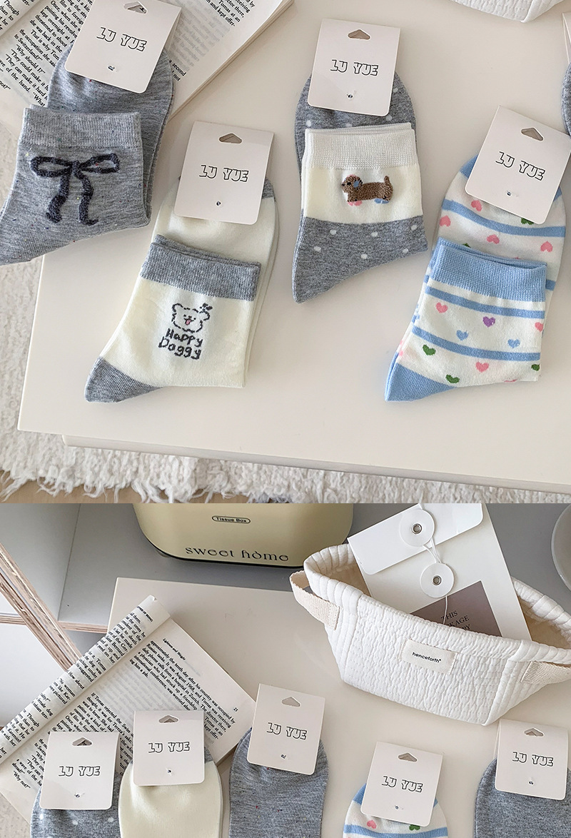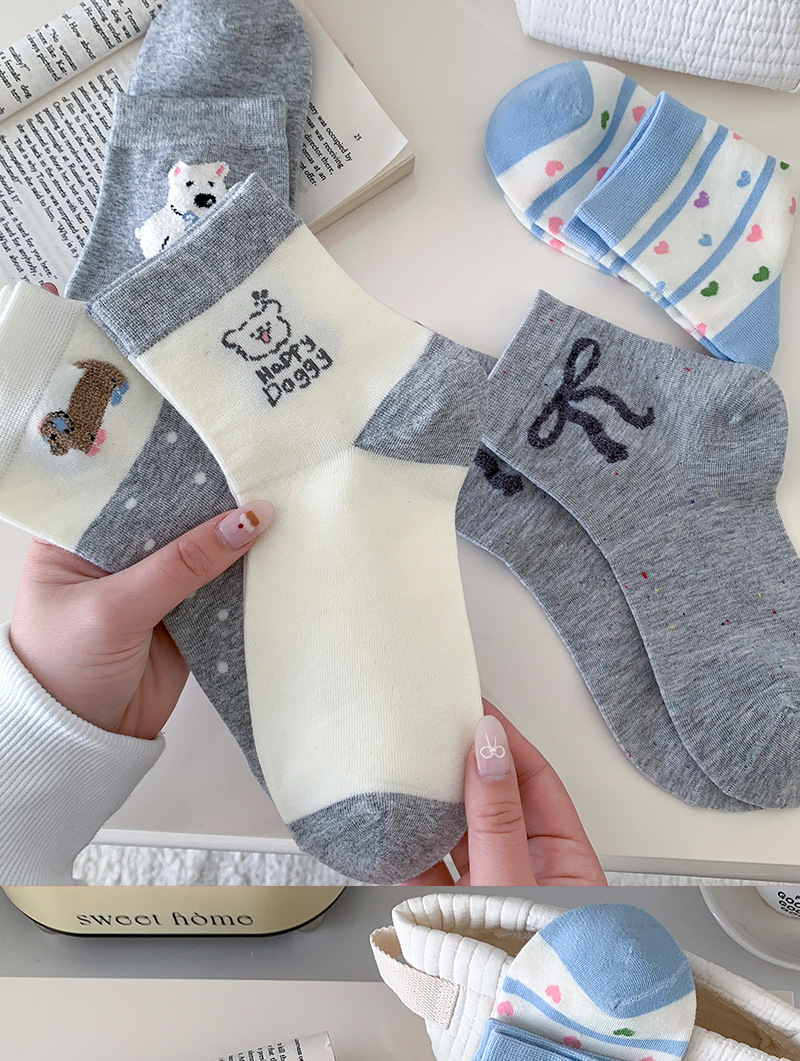 양말 여성 봄과 여름 회색 튜브 양말 한국 만화 강아지 더미 양말 귀여운 숙녀 면화 양말 도매스토어 가기