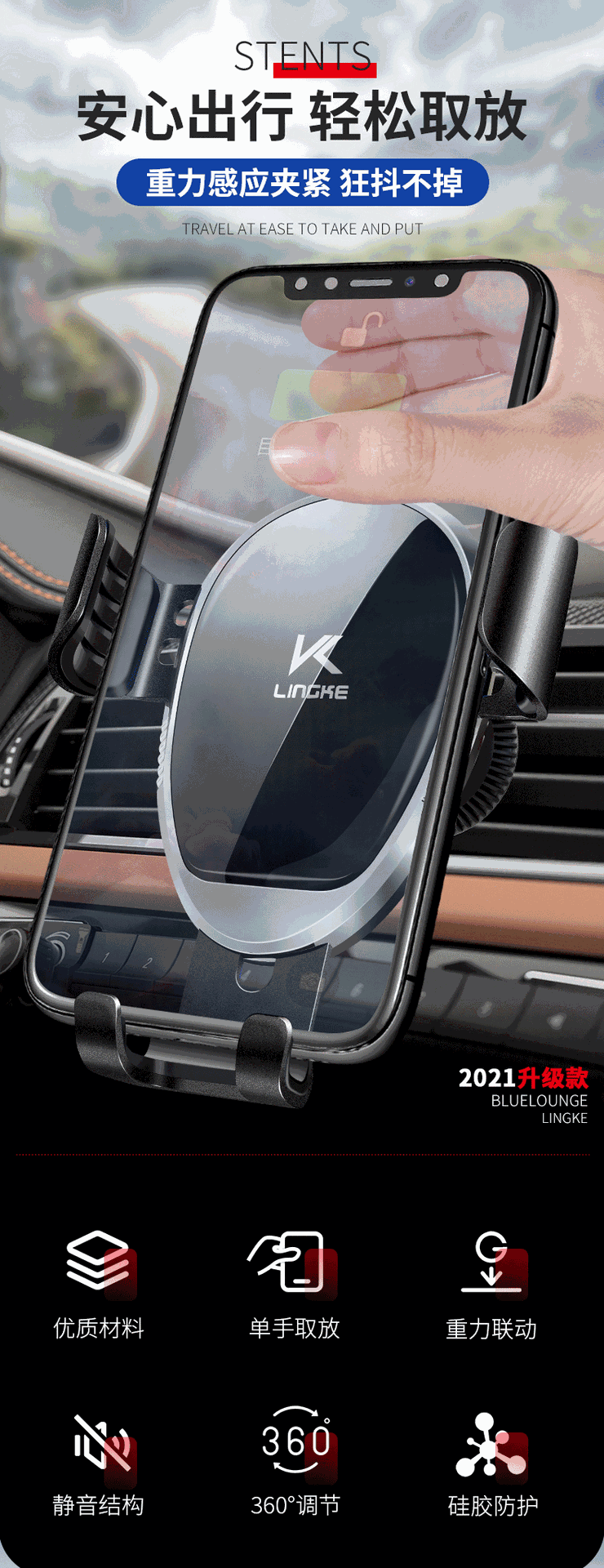 자동차 공기 콘센트 휴대 전화 브래킷 고정 지원 중력 360 도 회전 가능한 자동차 내비게이션 브래킷 도매
