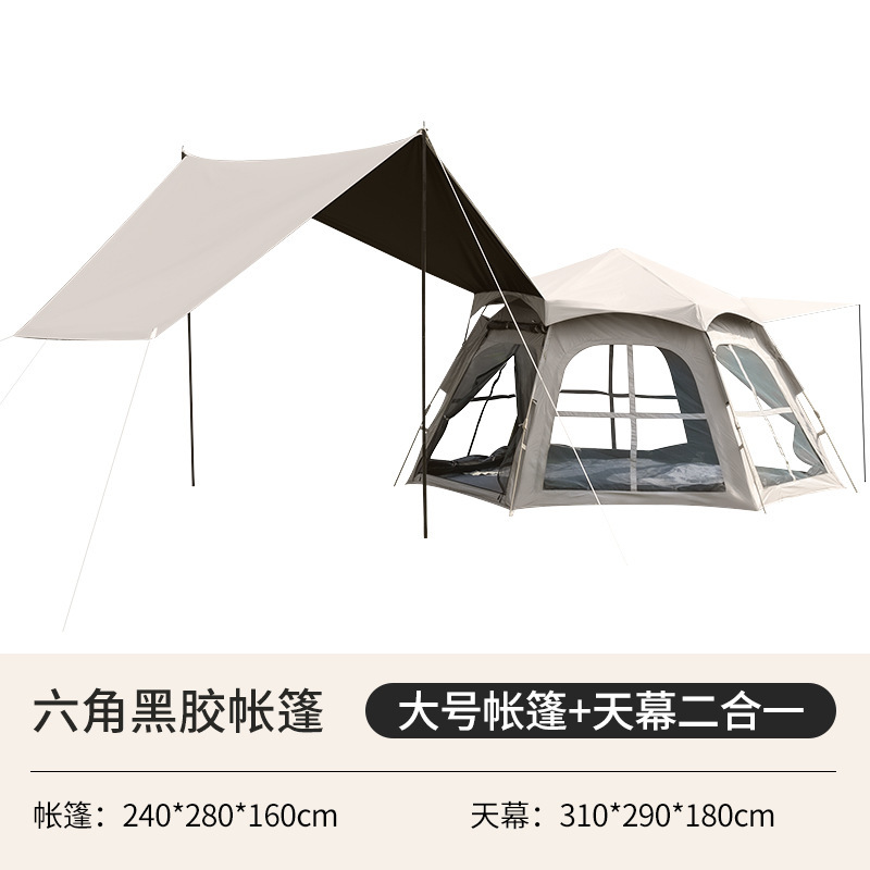 텐트 야외 3-4 완전 자동 캠핑 접이식 편리한 캐노피 1 검은 고무 육각형 장비 도매스토어 가기