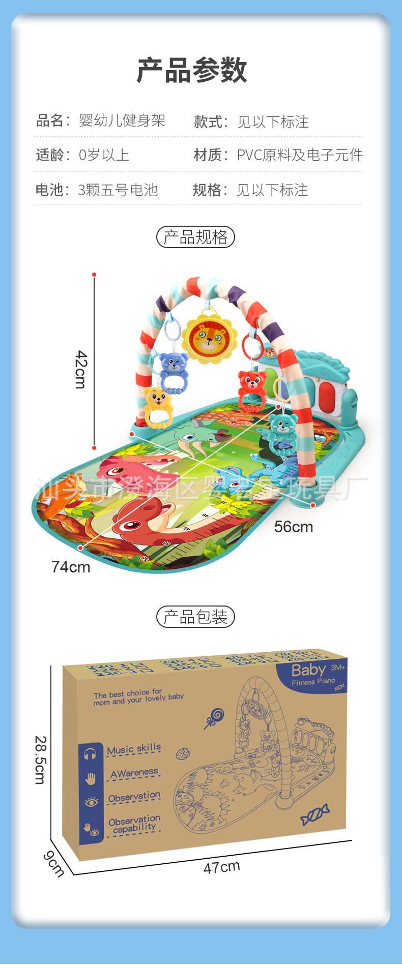 국경 간 아기 피아노 피트니스 랙 0-1 세 신생아 조기 교육 장난감 분리 가능한 음악 훈련