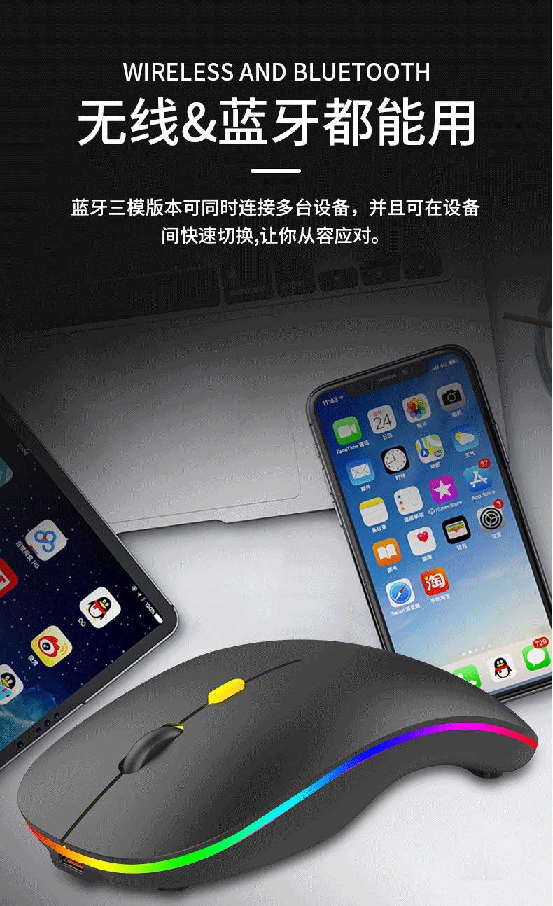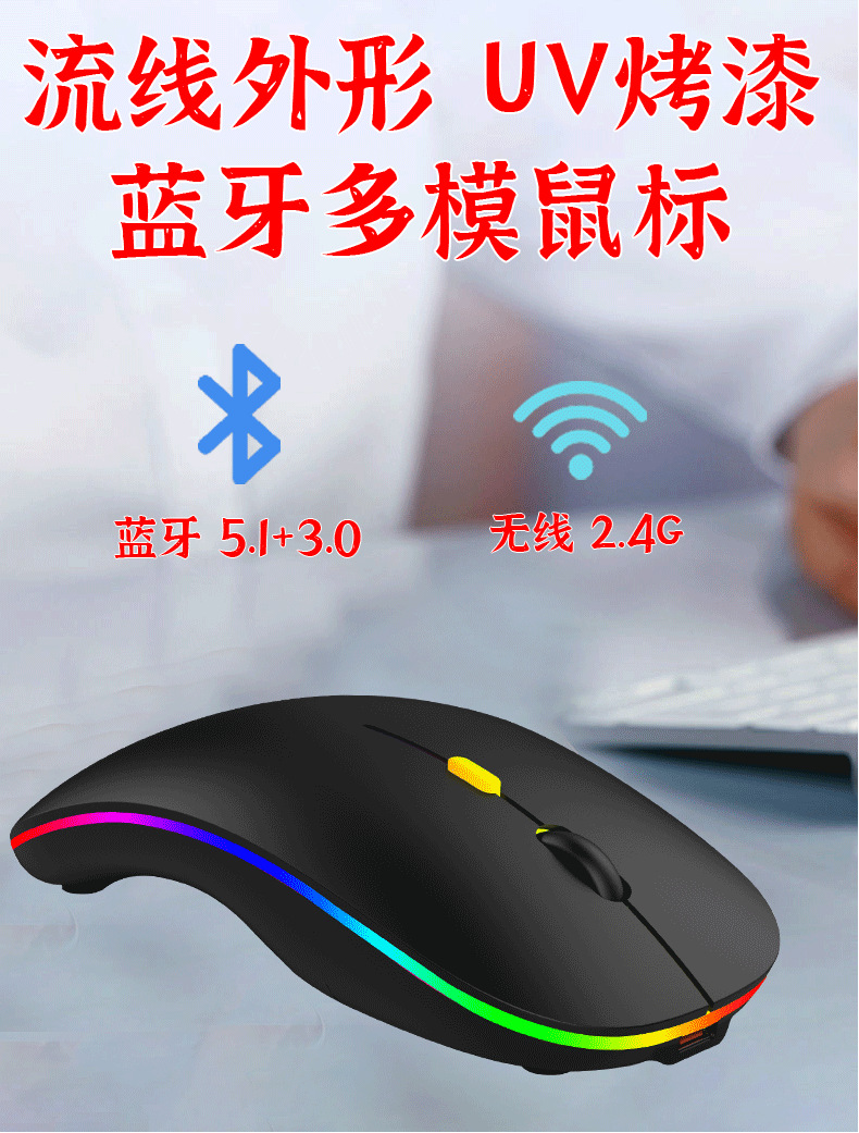 定制新款跨境蓝牙双模鼠标电脑办公可充电发光静音无线鼠标