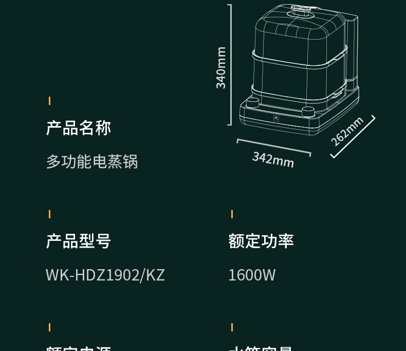 코닝 (세계 주방) WK-HDZ1902/KZ 다기능 전기 기선