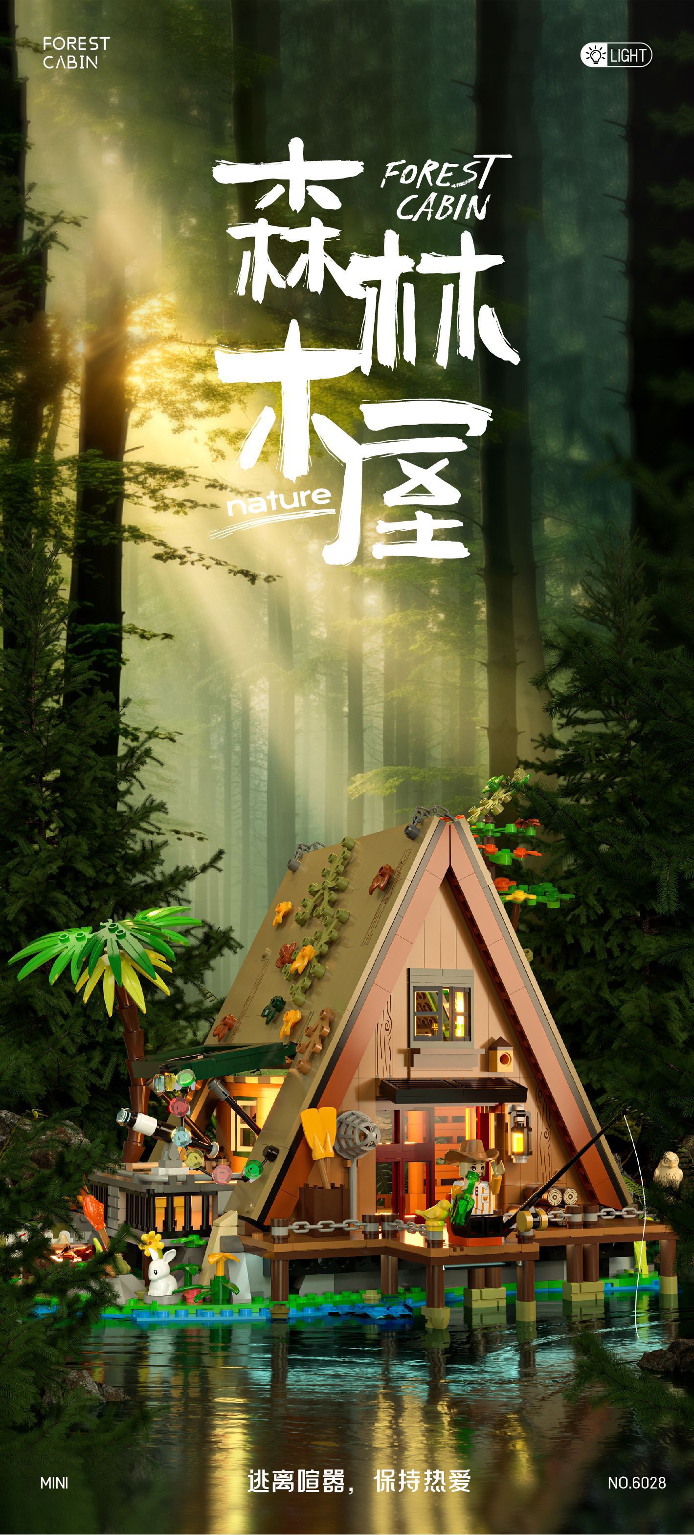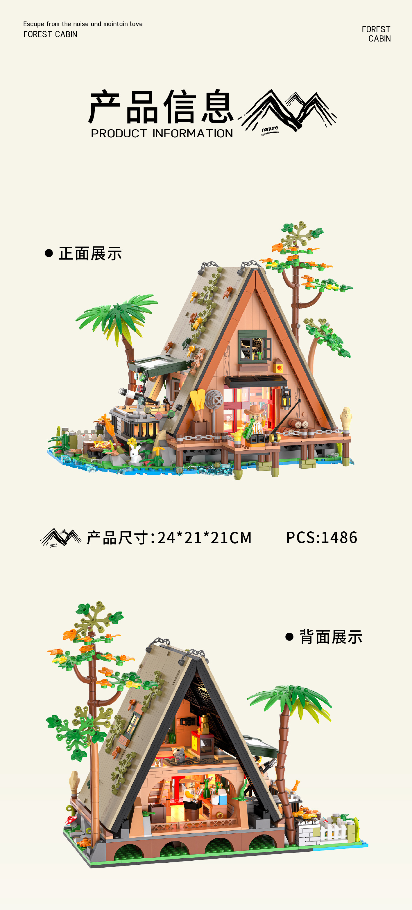국경 간 벽돌 또한 6028 숲 목조 주택 나무 집 건물 블록 데스크탑 장식품 어린이 교육 조립 장난감 선물스토어 가기