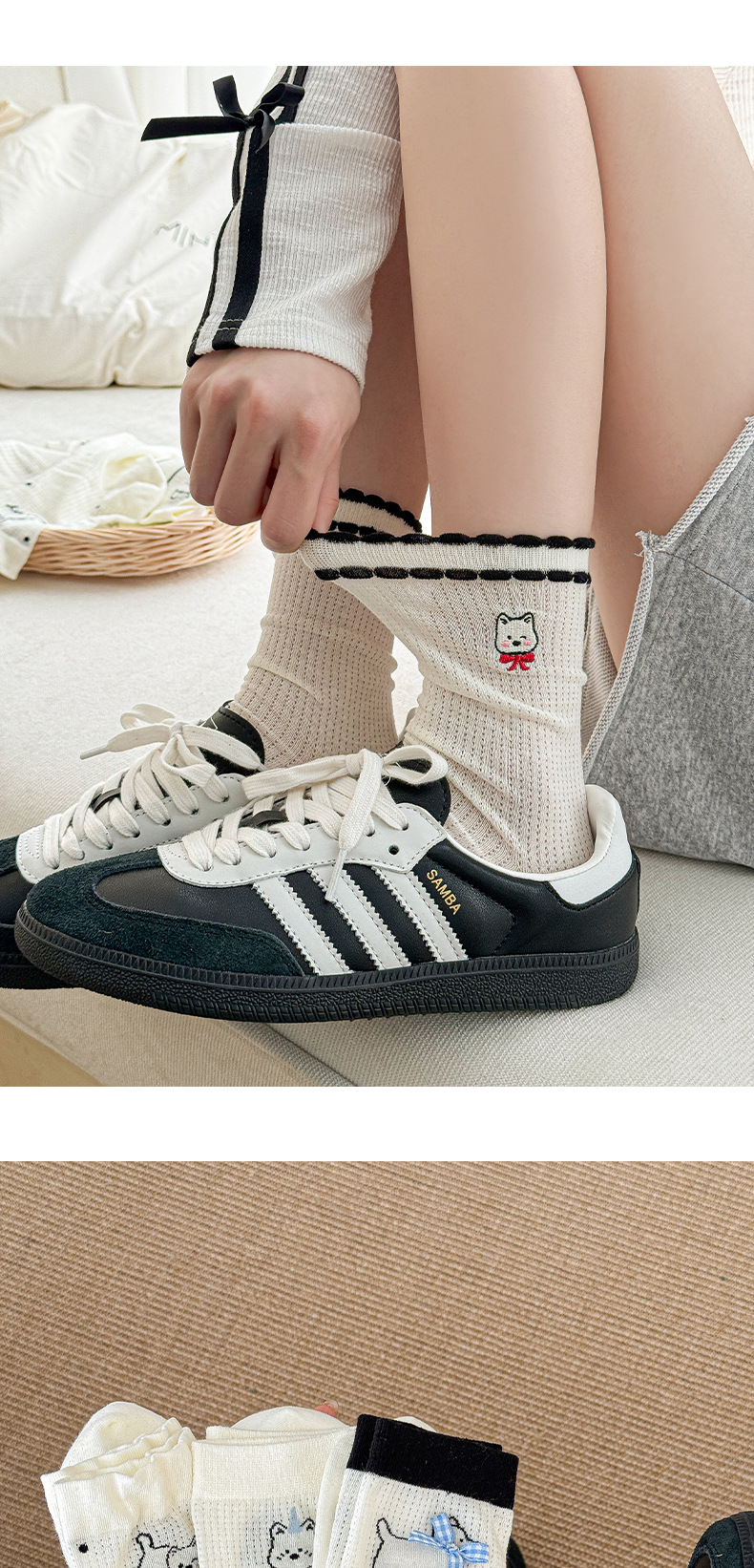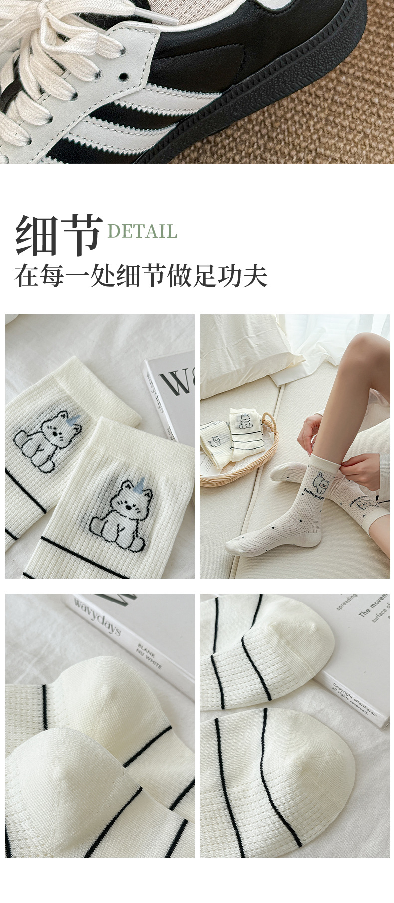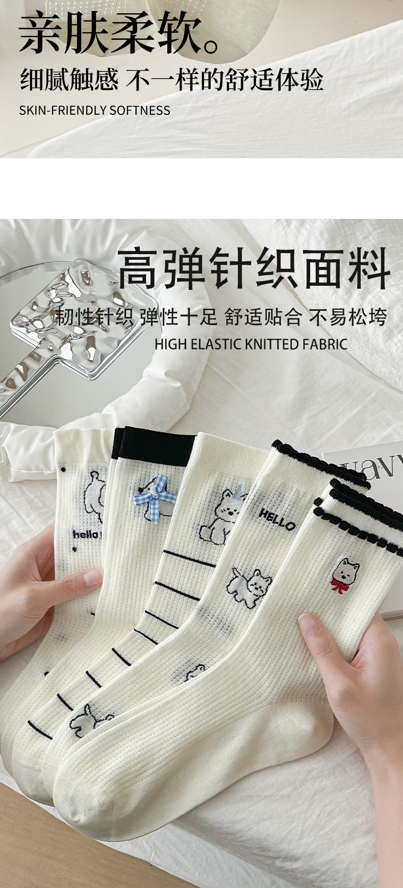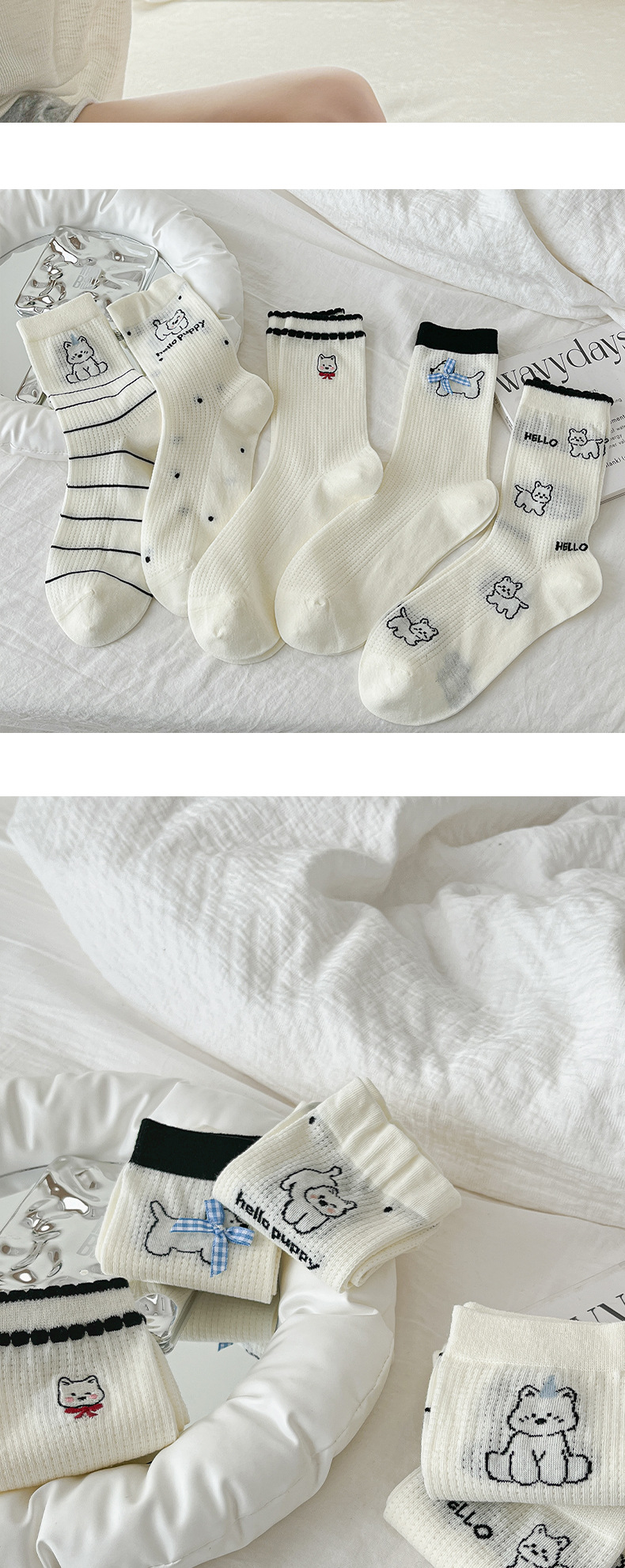 흰색 양말 여성의 중간 튜브 양말 봄과 가을 얇은 통기성 메쉬 귀여운 강아지 더미 긴 튜브 뼈없는 조수스토어 가기