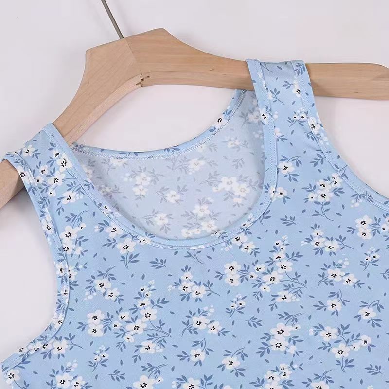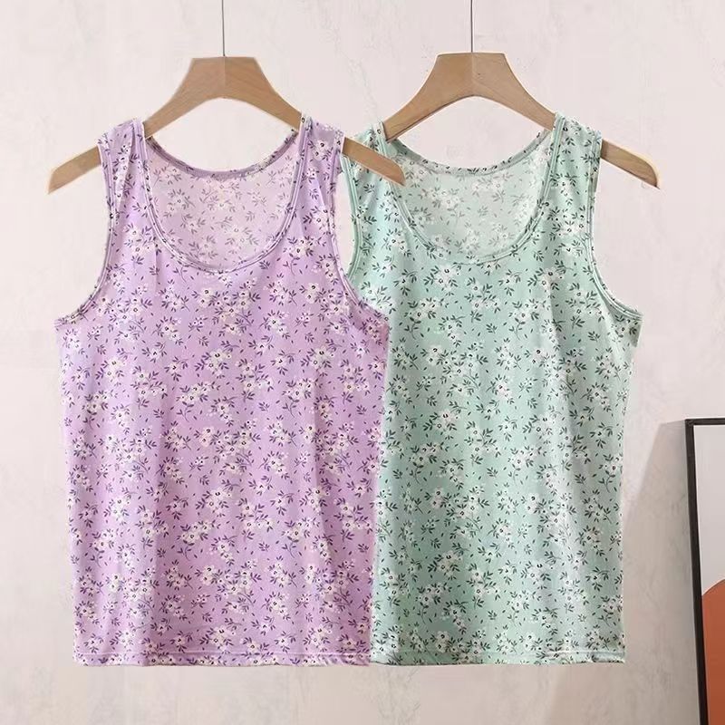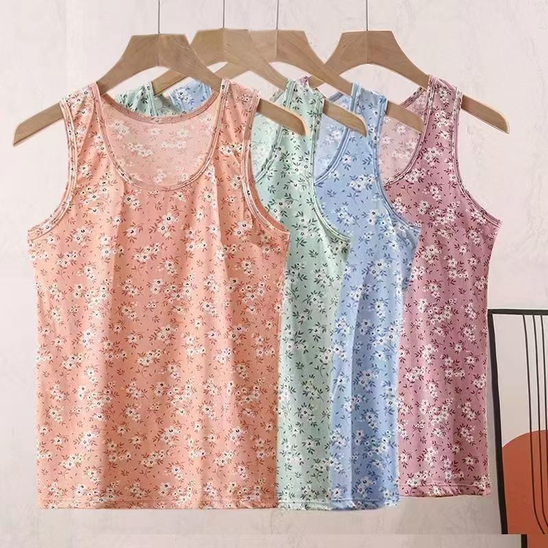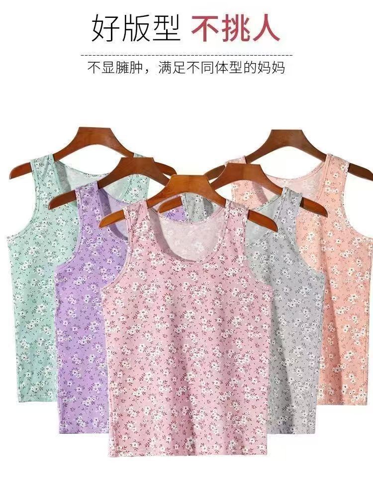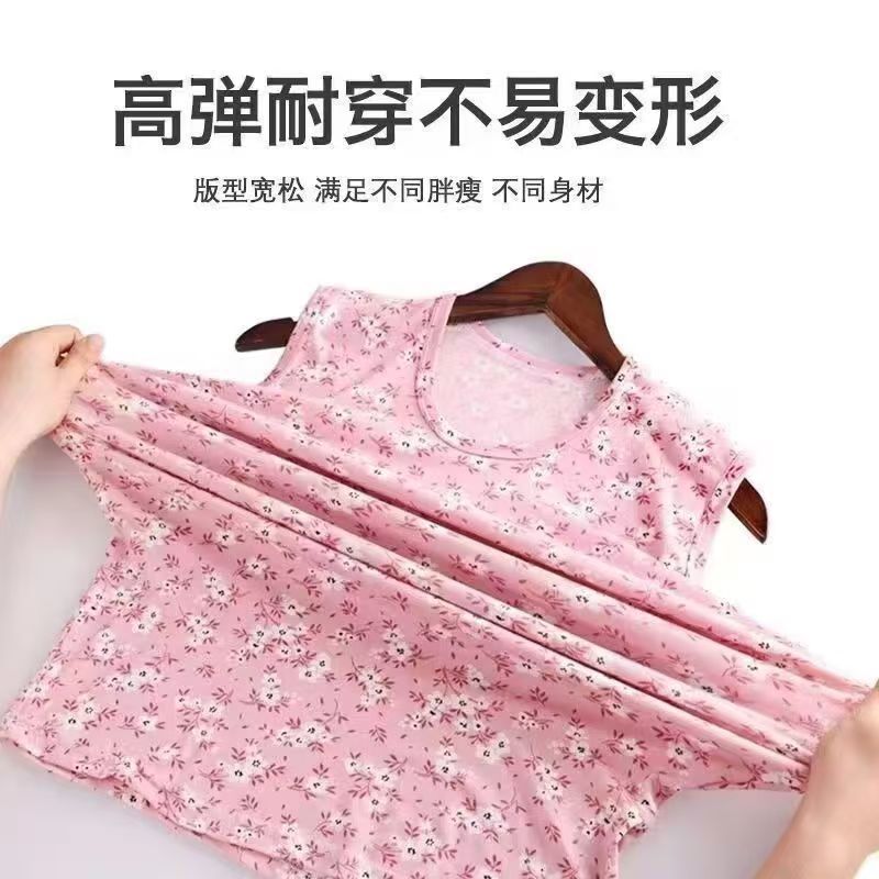 여름 여성 조끼 밀크 실크 스트레치 루즈 중년 및 노인 대형 슬링 얇은 프린트 서양식 시어머니 셔츠 언더 셔츠스토어 가기