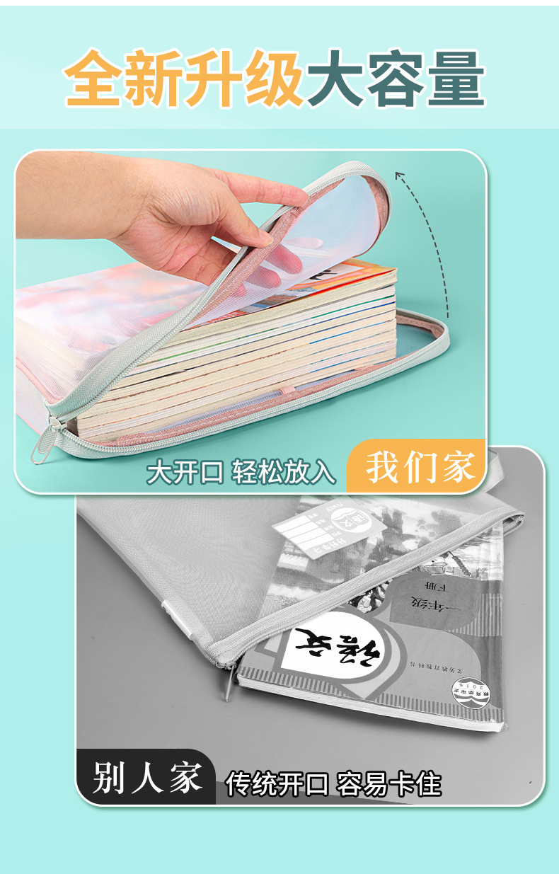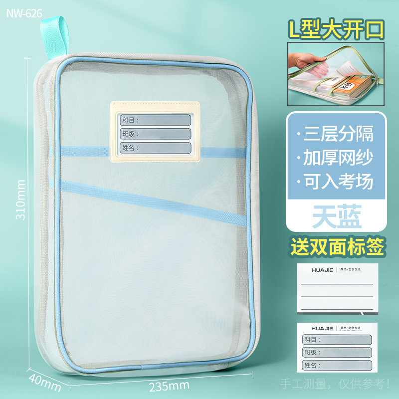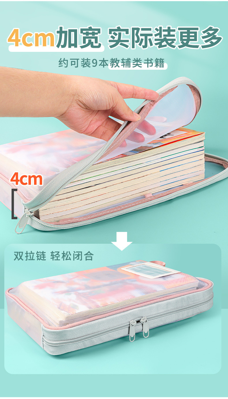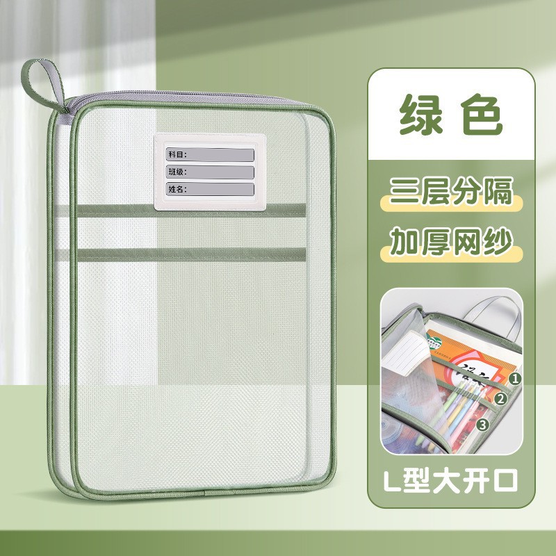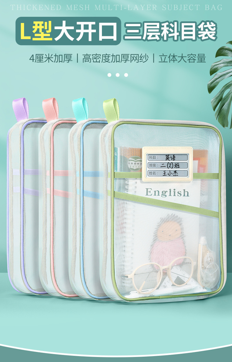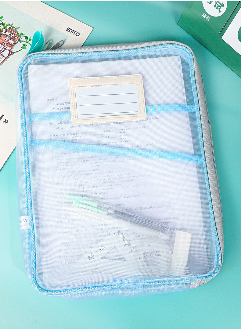 L 모양의 주제 분류 가방 투명 문서 가방 지퍼 메쉬 검사 튜토리얼 가방 파일 검사 종이 보관 가방스토어 가기