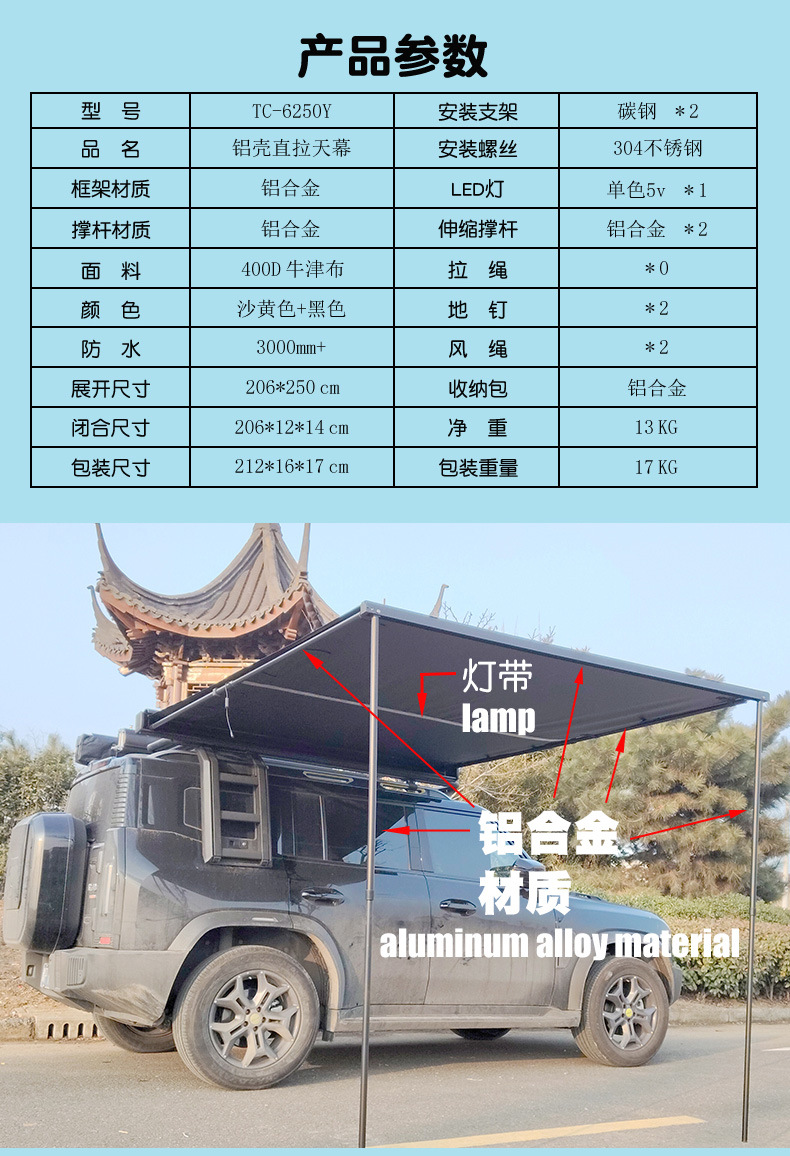 공장 직접 국경 간 SUV 지붕 측면 자동차 캐노피 캠핑 텐트 자동차 옥스포드 천 캐노피 텐트