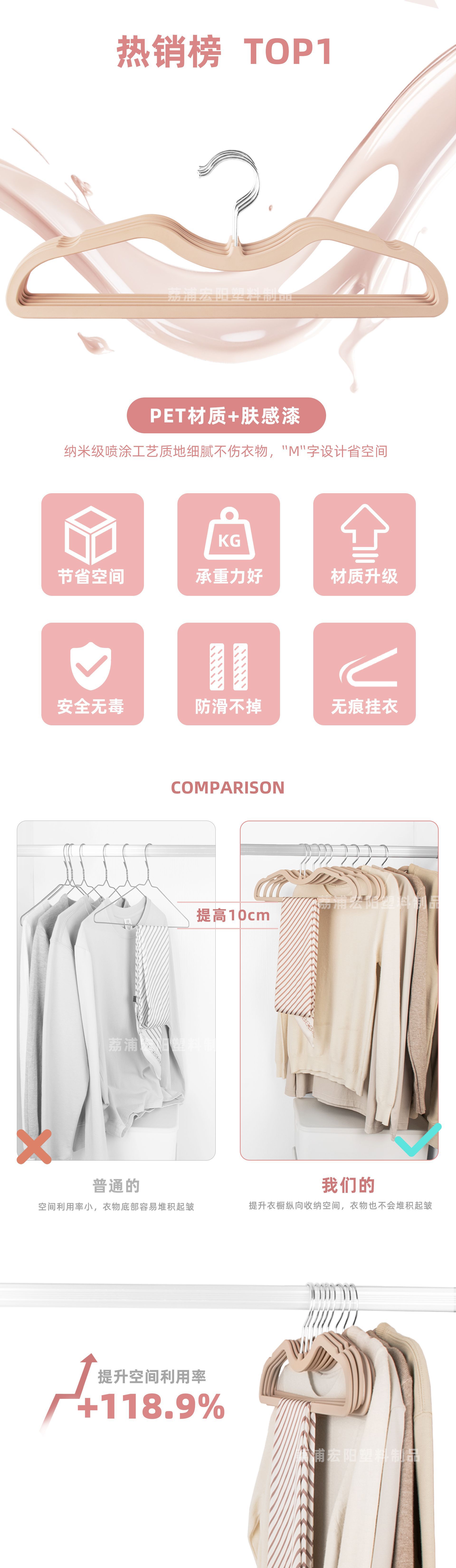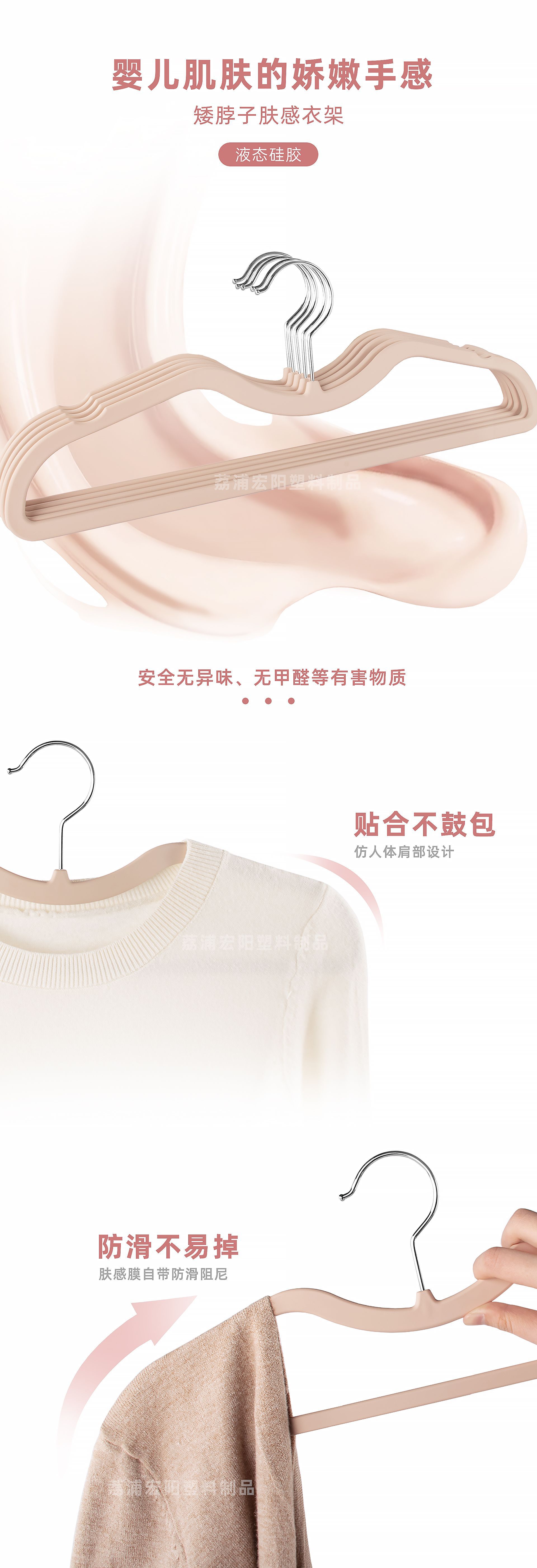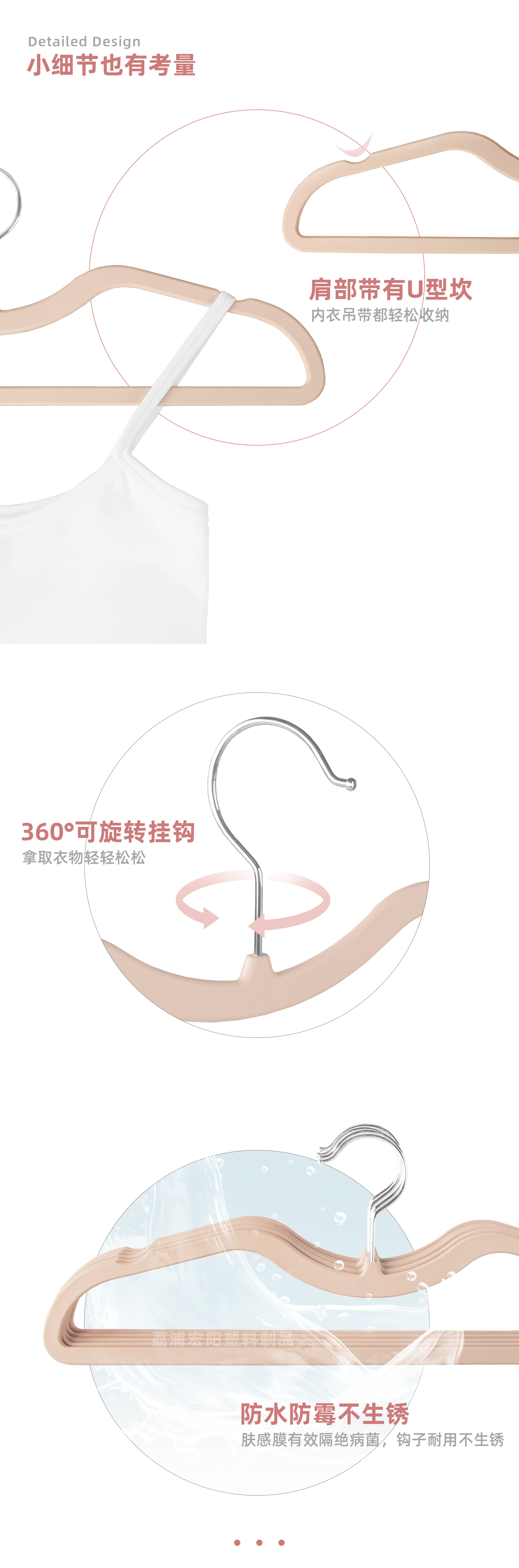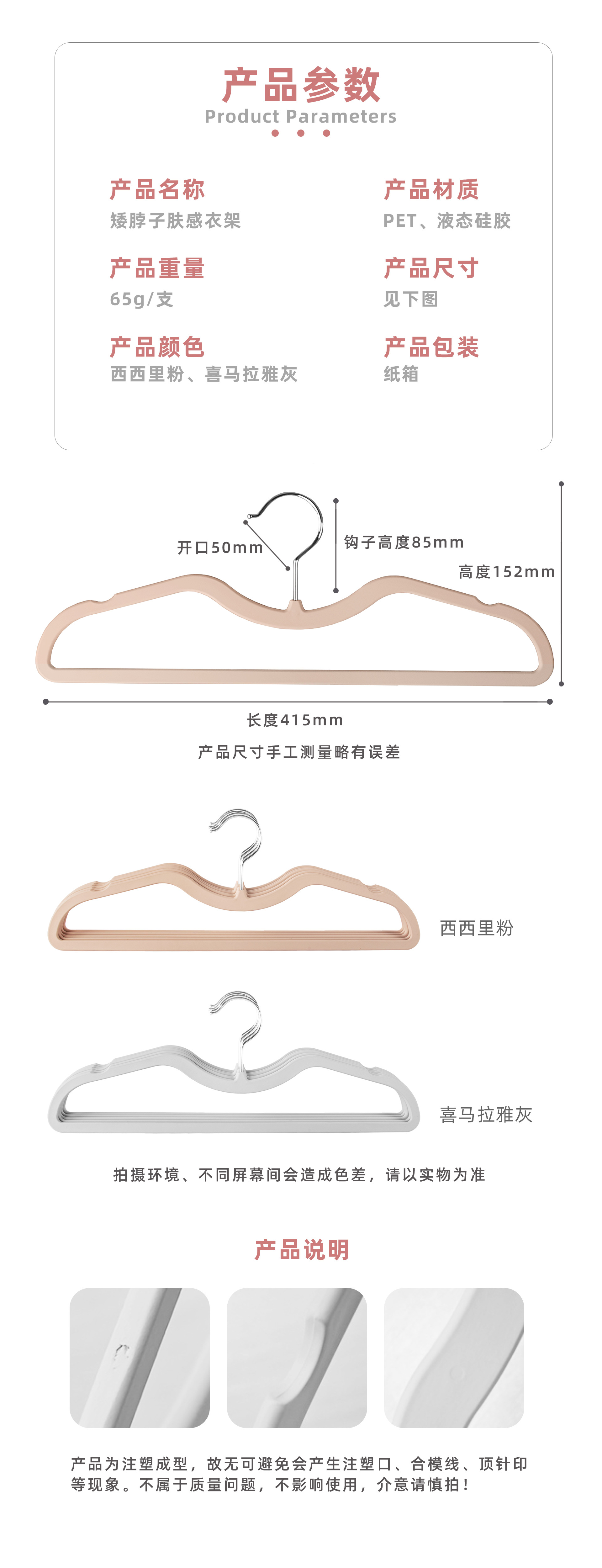 피부촉감 필름 코팅 짧은 목걸이형 공간 절약형 옷걸이 PET 플라스틱 건식 및 습식 겸용 낮은 목걸이형 액상 실리콘 옷걸이 고품질 대체품스토어 가기