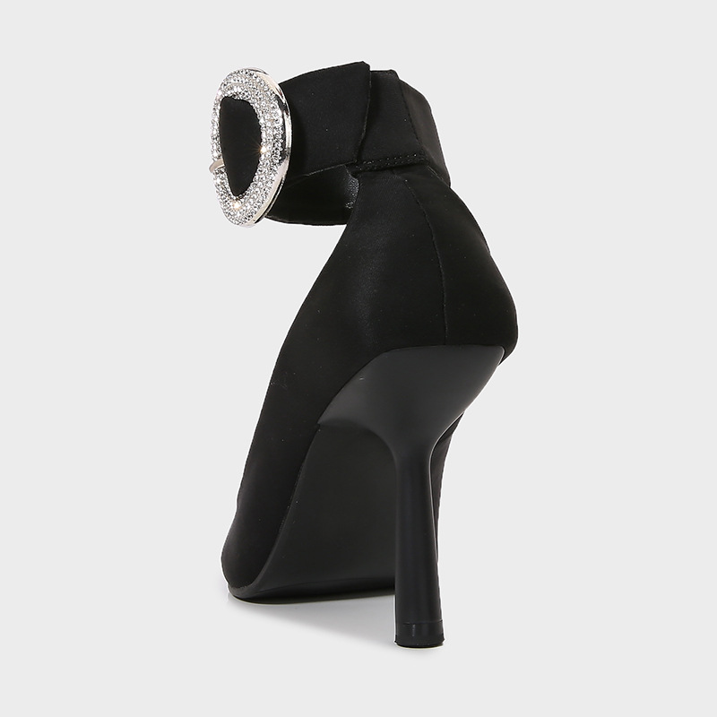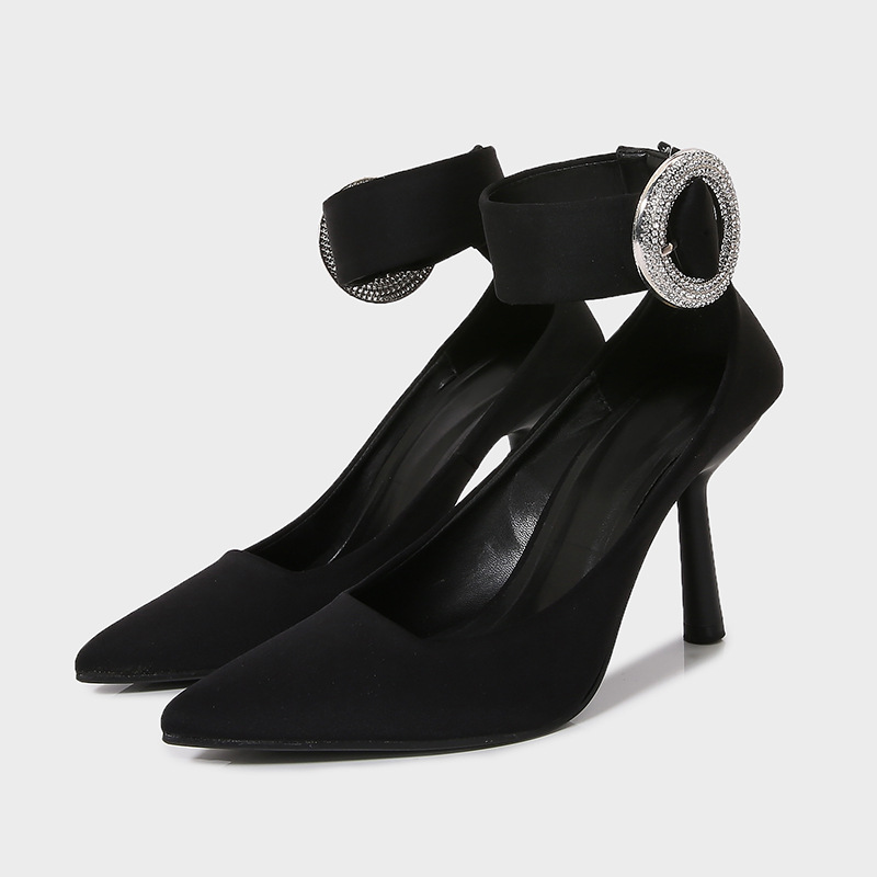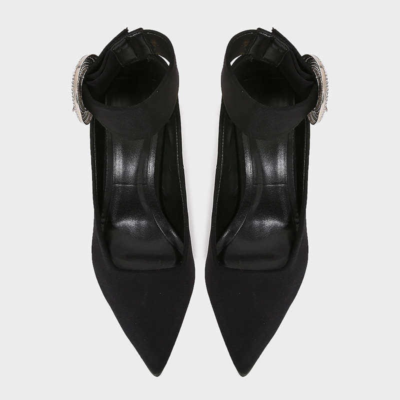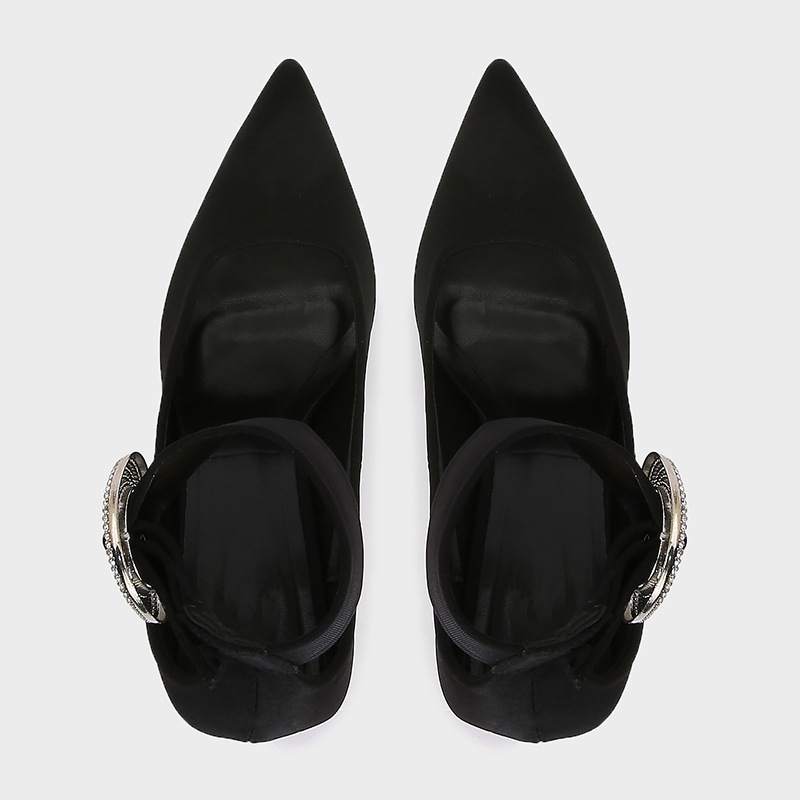 ZA2025 봄 새로운 여성 신발 블랙 라이트 버클 우아한 하이힐 스틸레토 포인팅 신발 여성