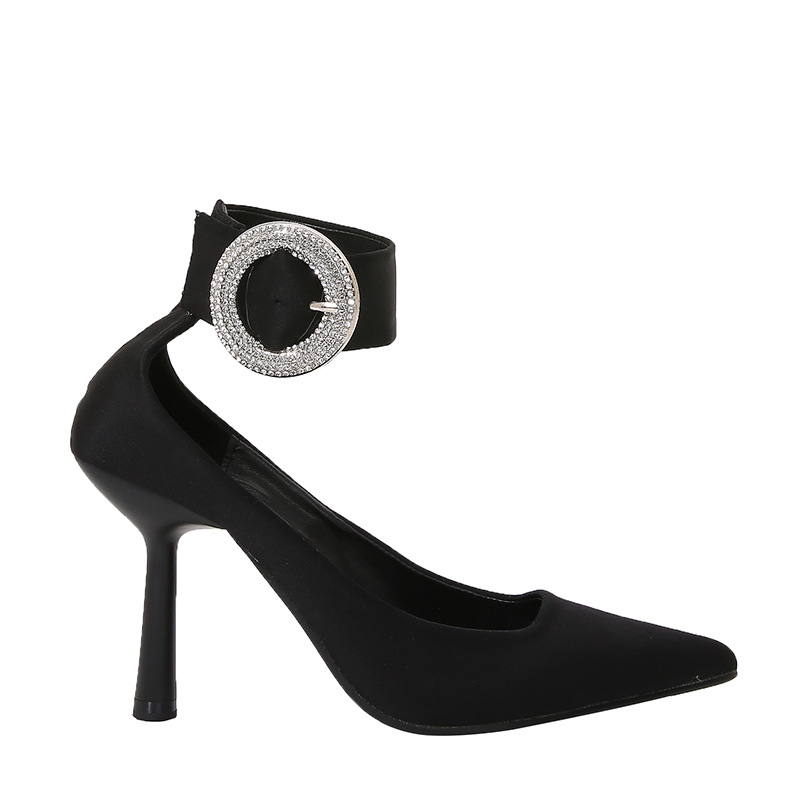 ZA2025 봄 새로운 여성 신발 블랙 라이트 버클 우아한 하이힐 스틸레토 포인팅 신발 여성스토어 가기