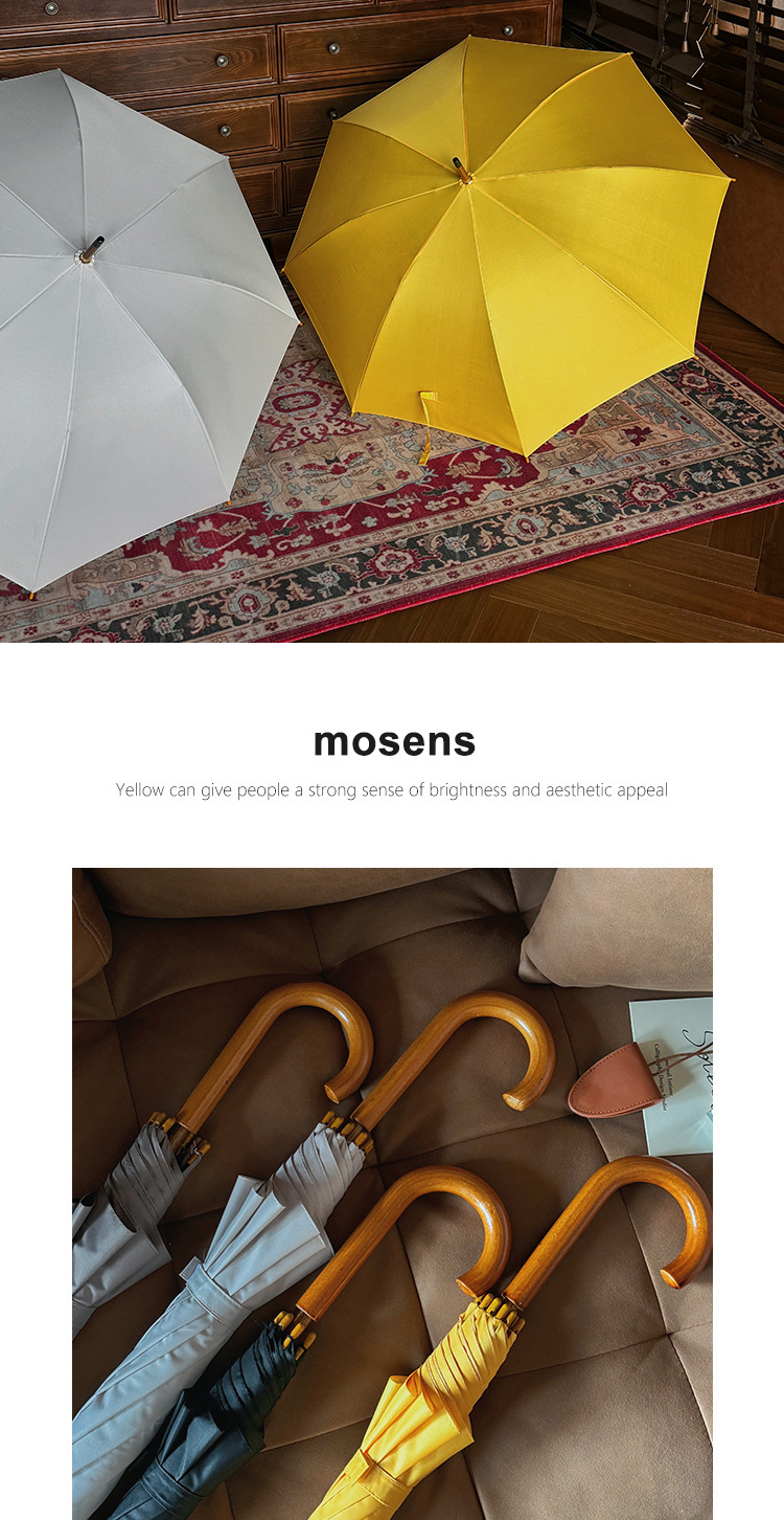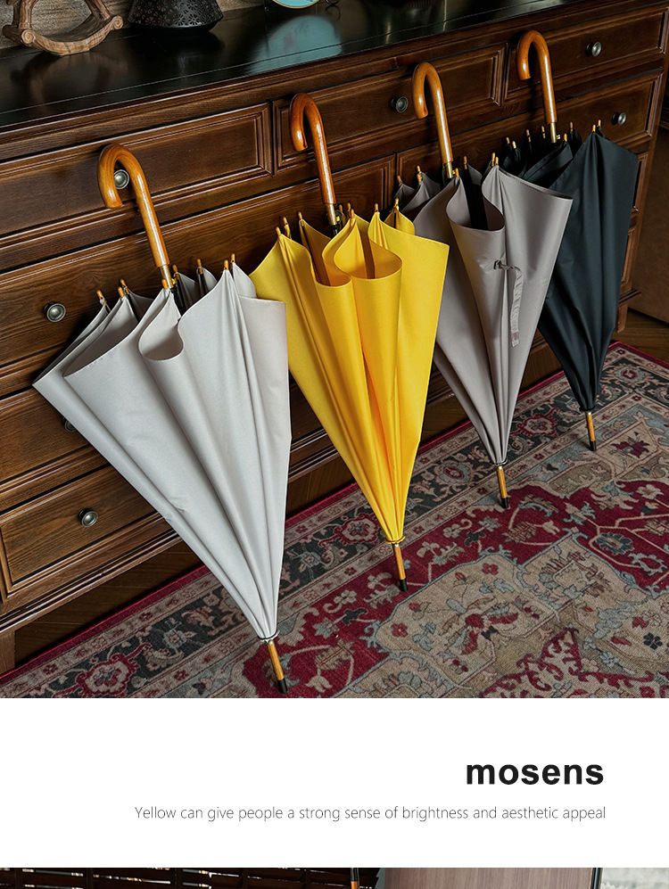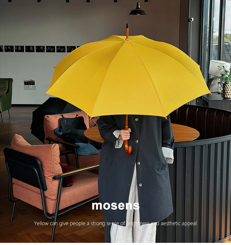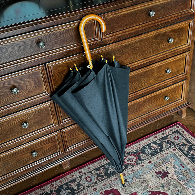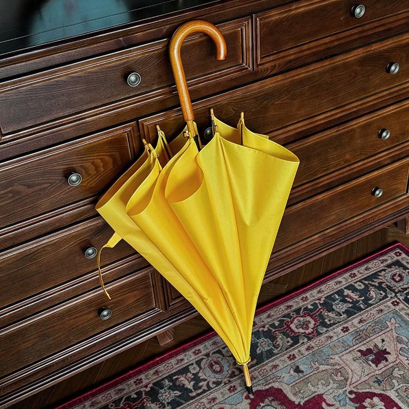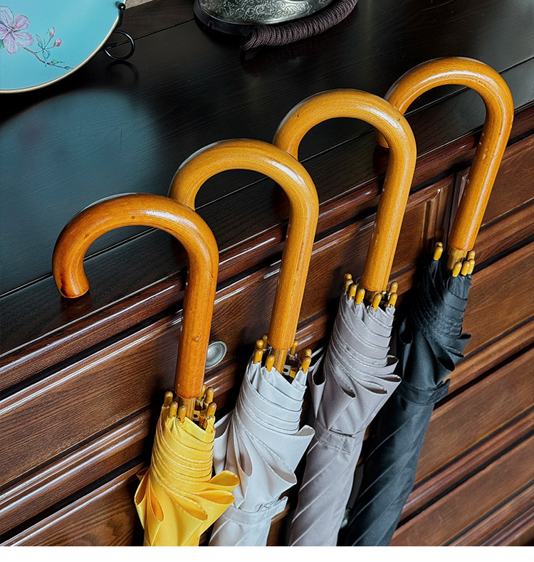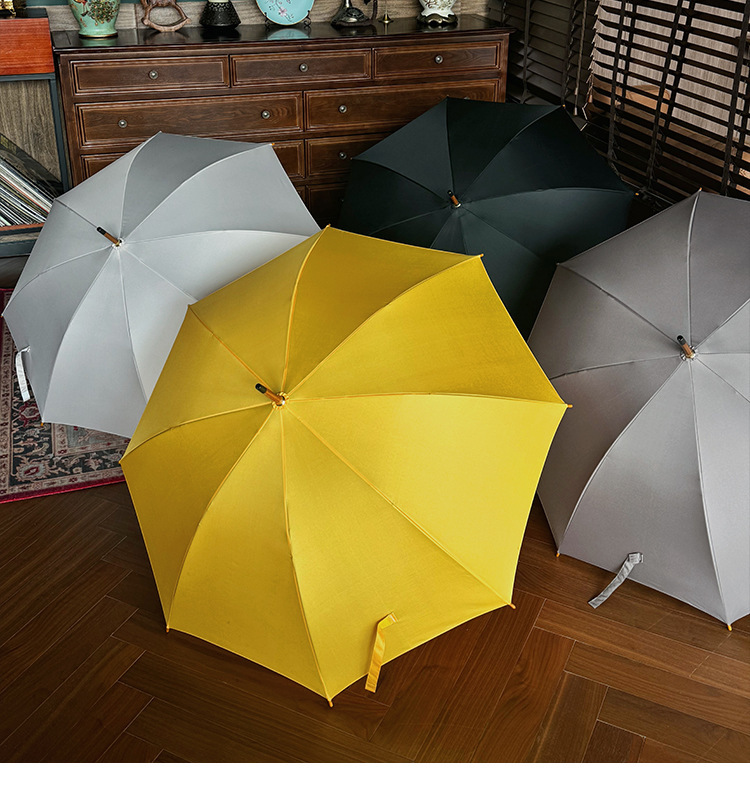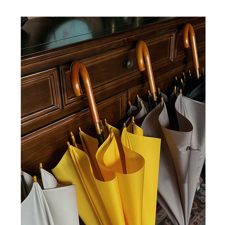 솔리드 우드 커브 핸들 인 스타일 두꺼운 솔리드 컬러 스트레이트 우산 일본 스타일 간단한 커플 우산 자동 비즈니스 우산 광고 우산스토어 가기