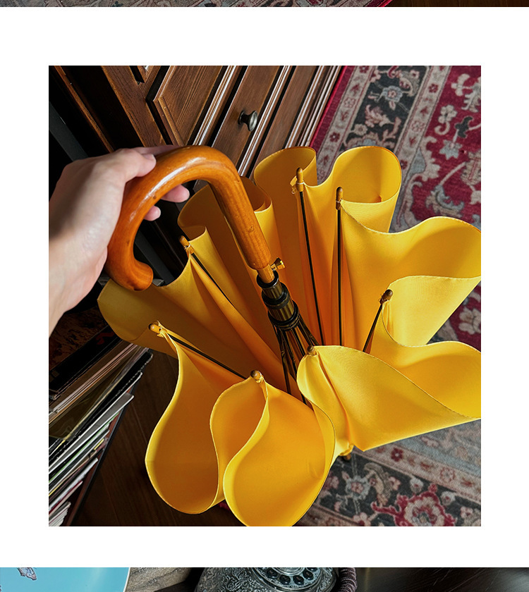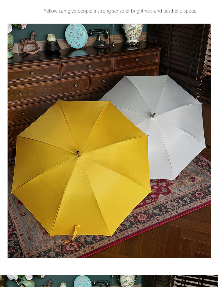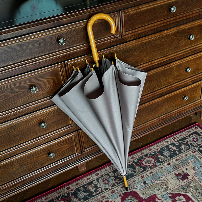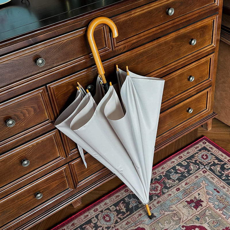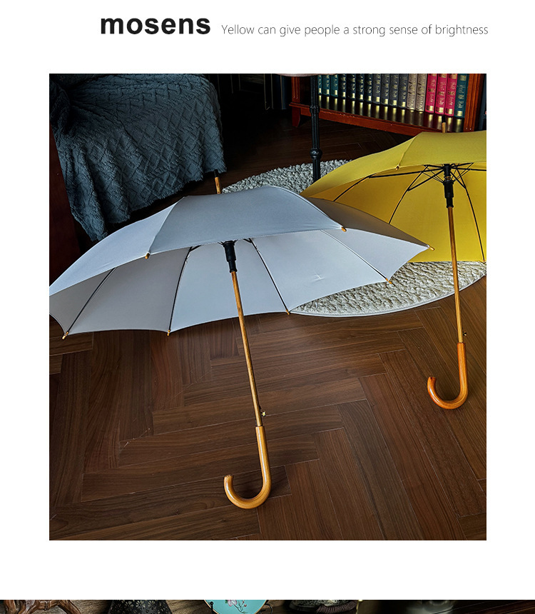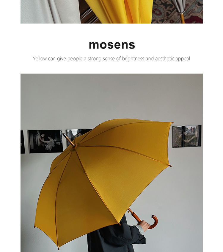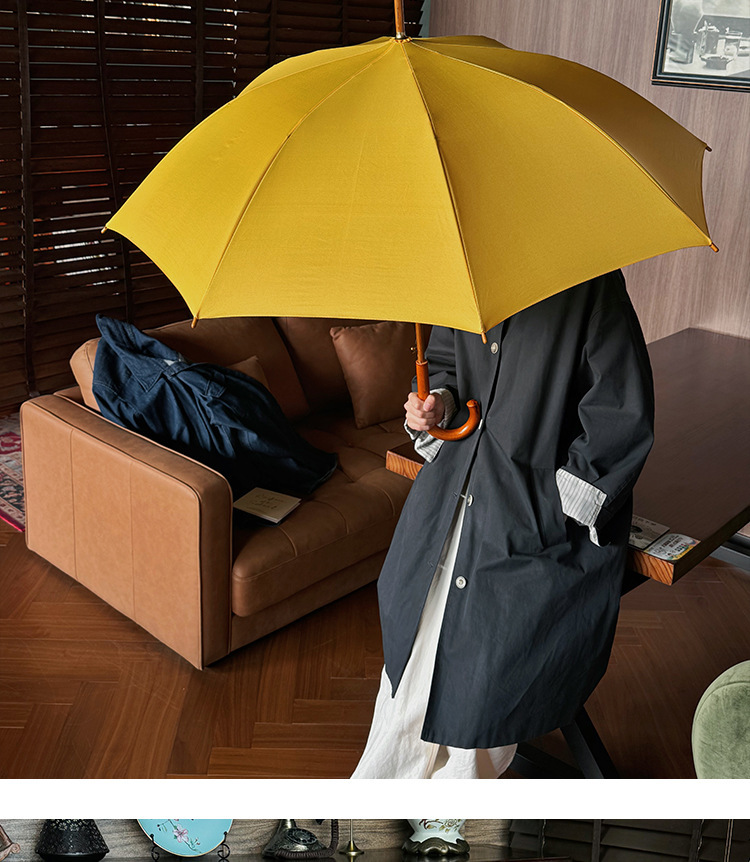 솔리드 우드 커브 핸들 인 스타일 두꺼운 솔리드 컬러 스트레이트 우산 일본 스타일 간단한 커플 우산 자동 비즈니스 우산 광고 우산스토어 가기