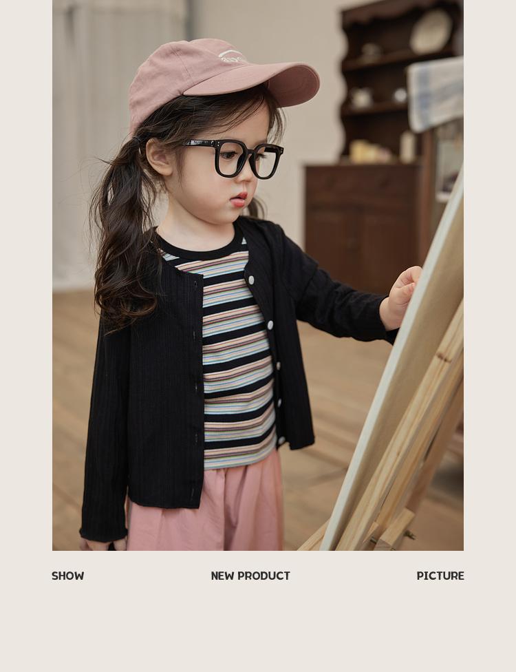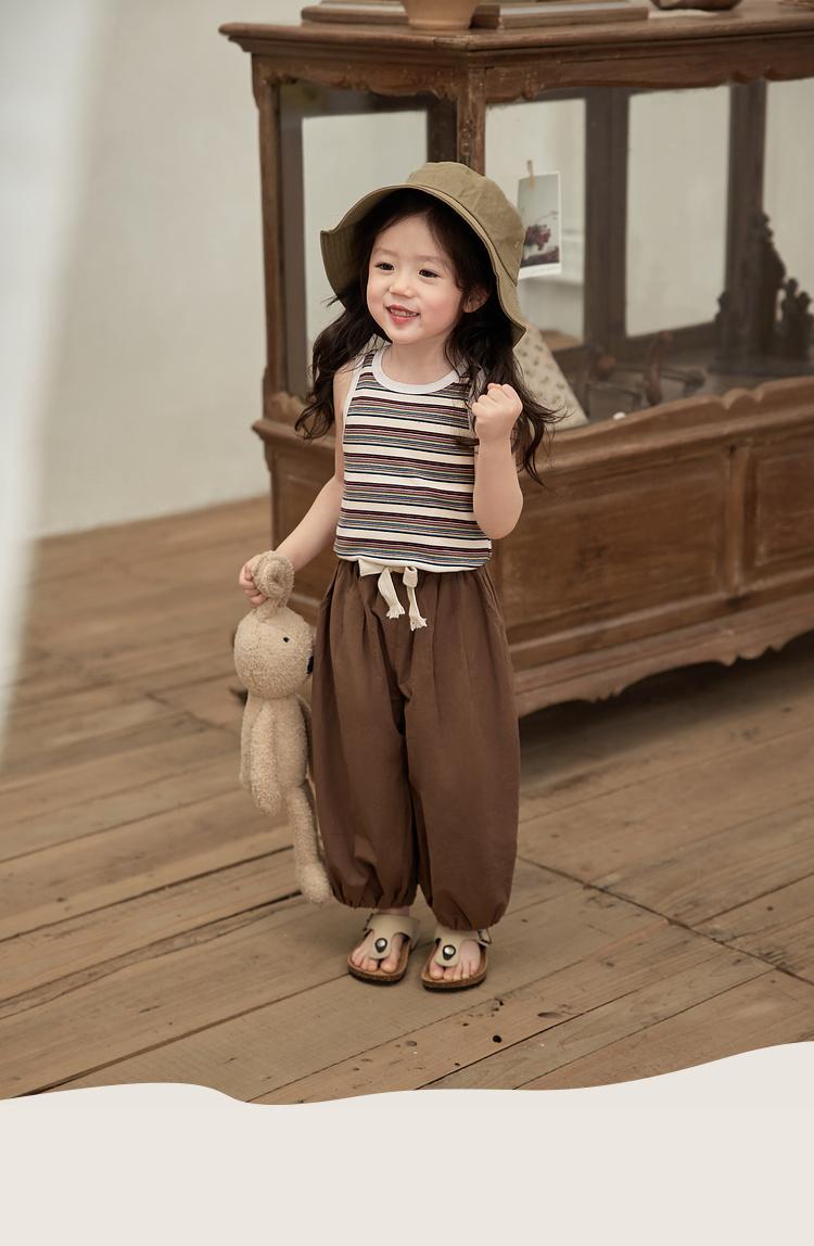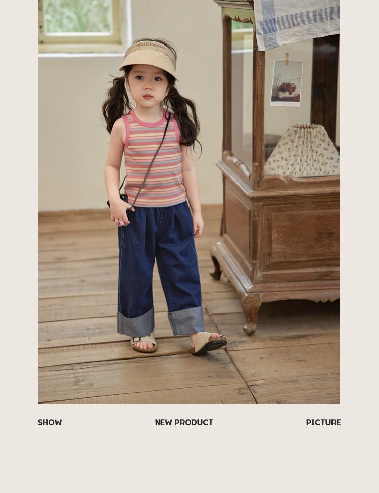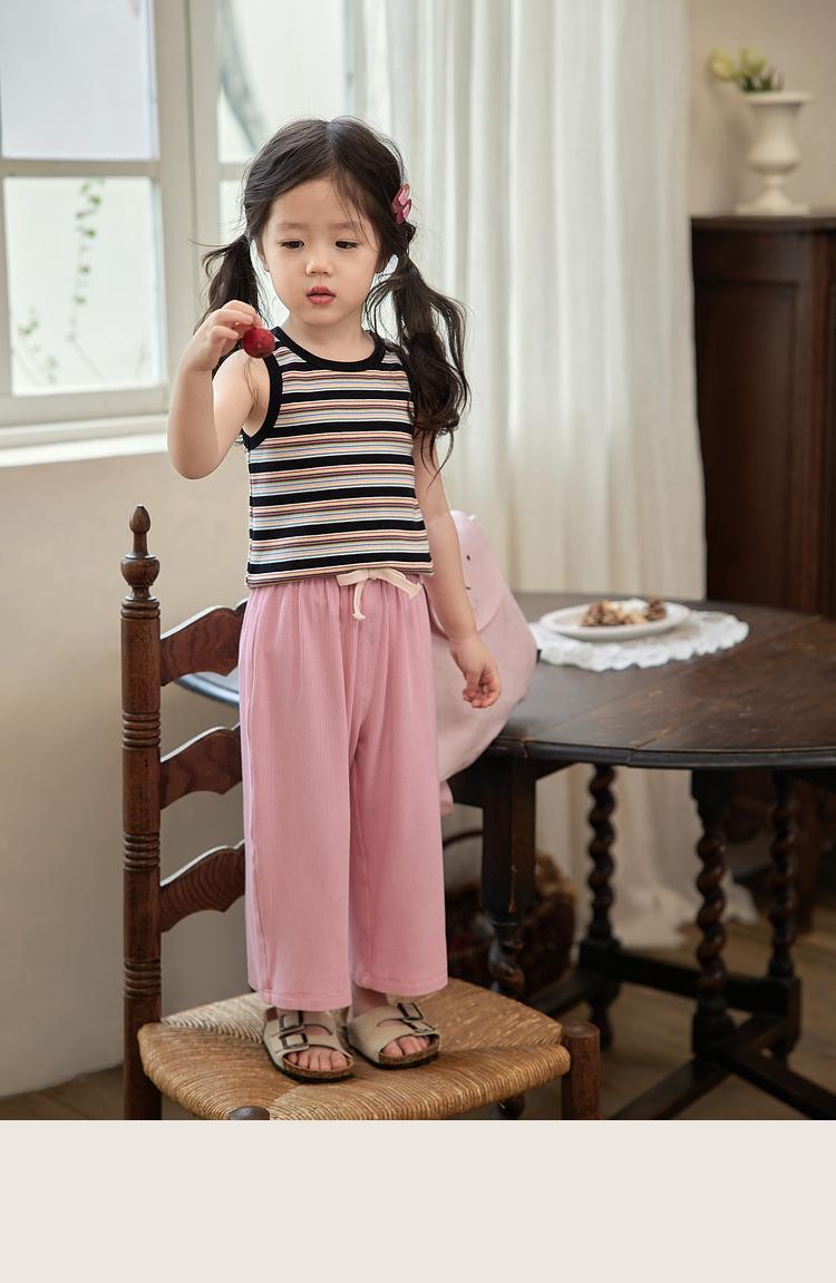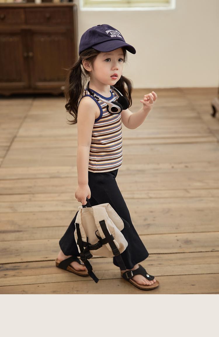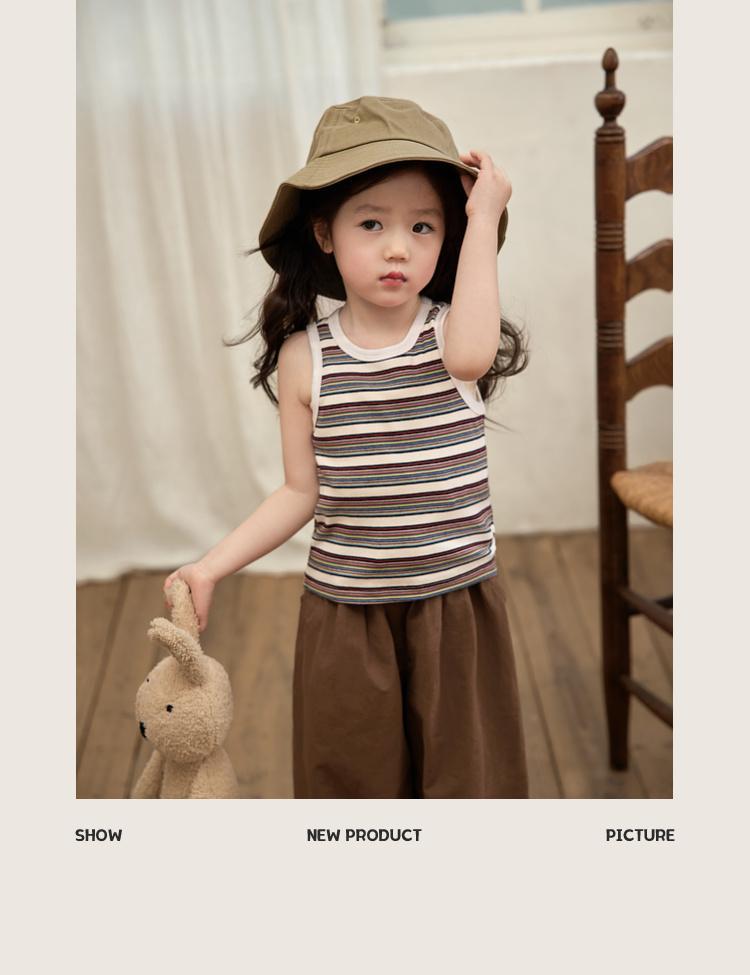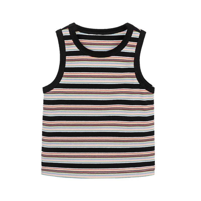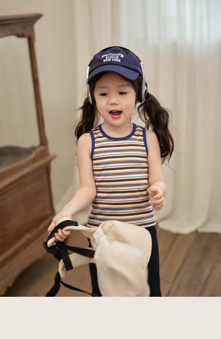 여름 새 소녀의 빈티지 스트라이프 조끼 어린이 서양식 슬림 대비 컬러 슬링 아기의 외부 착용 민소매 탑
