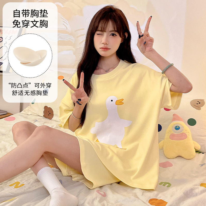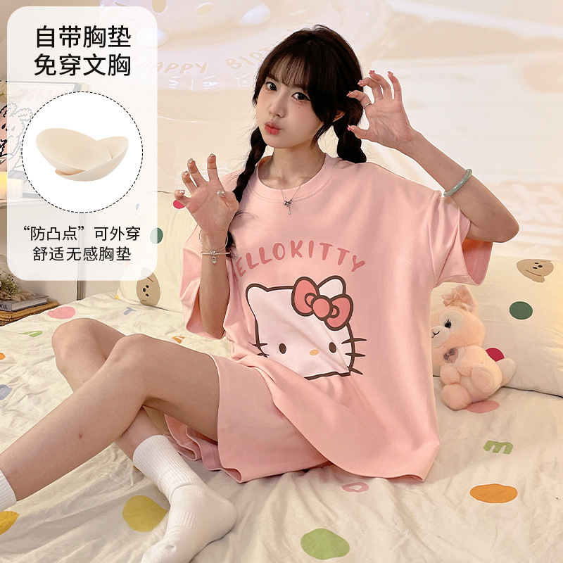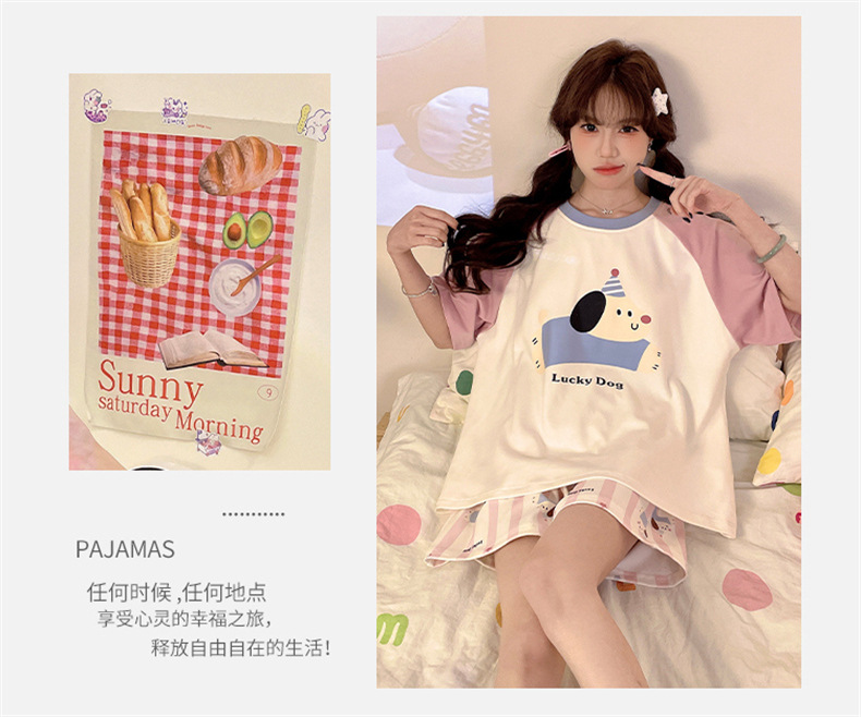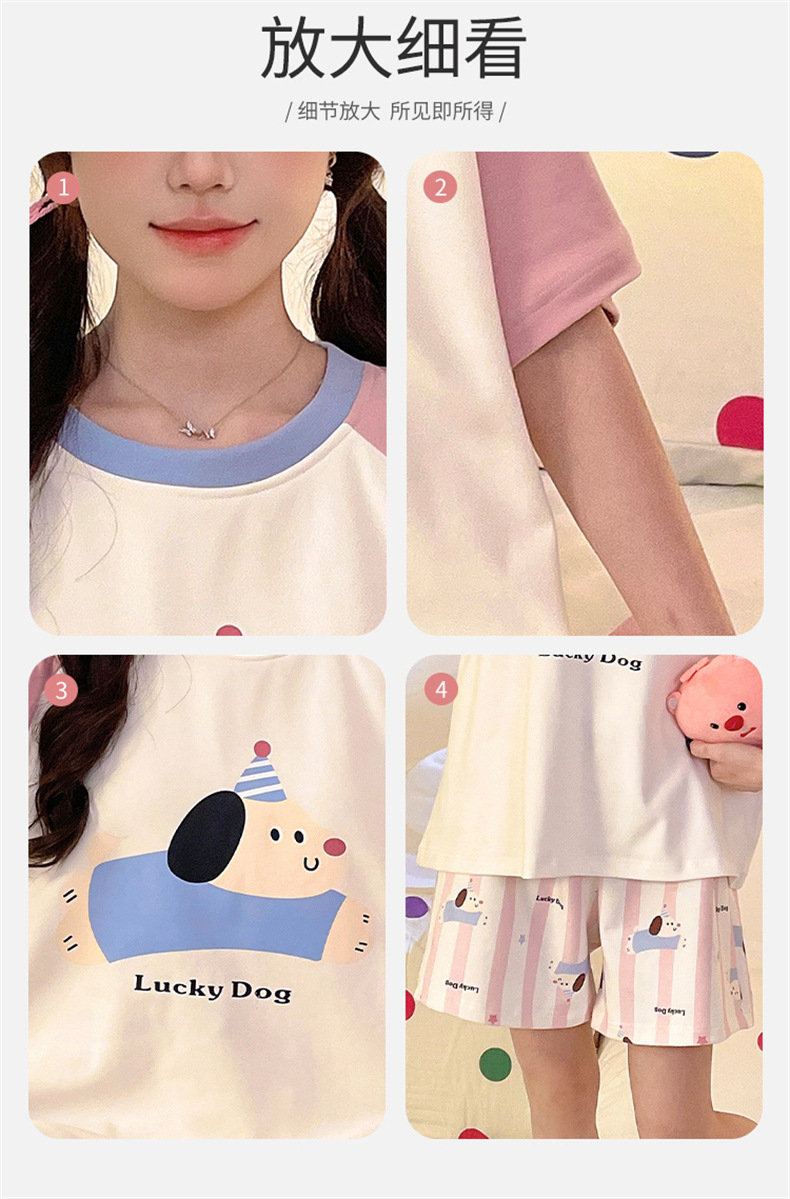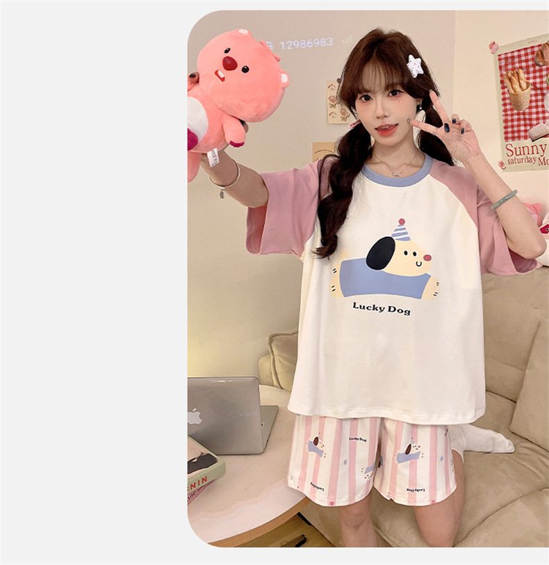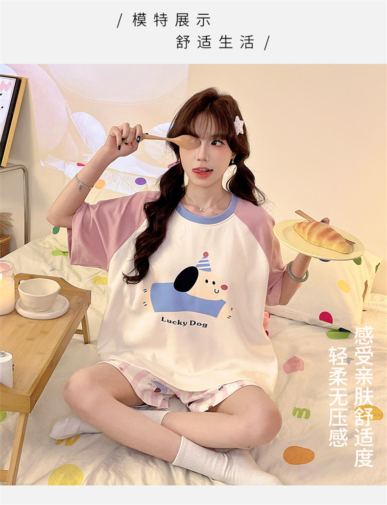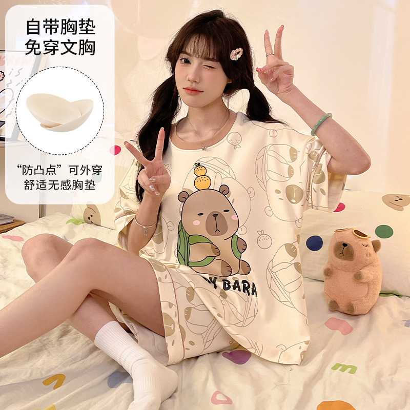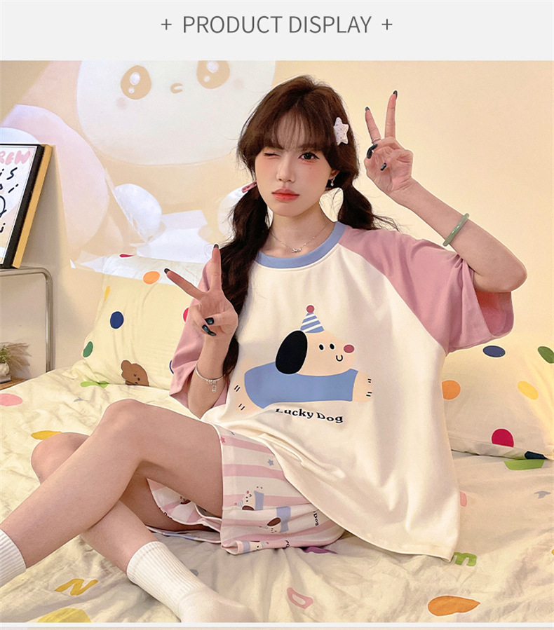 가슴 패드 잠옷 여성 여름 반팔 반바지 투피스 세트 의상 안티 범프 만화 여성 홈 의류스토어 가기