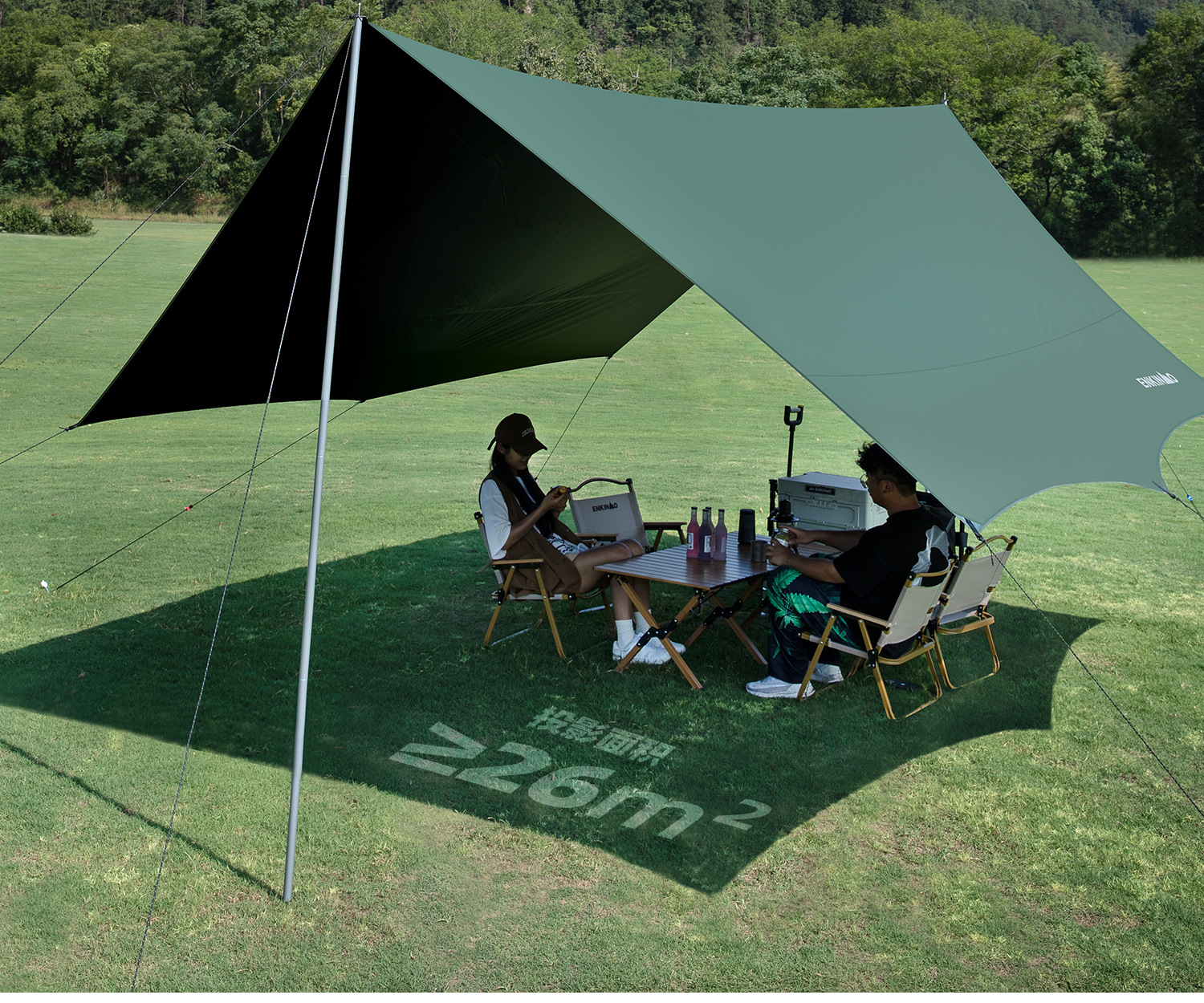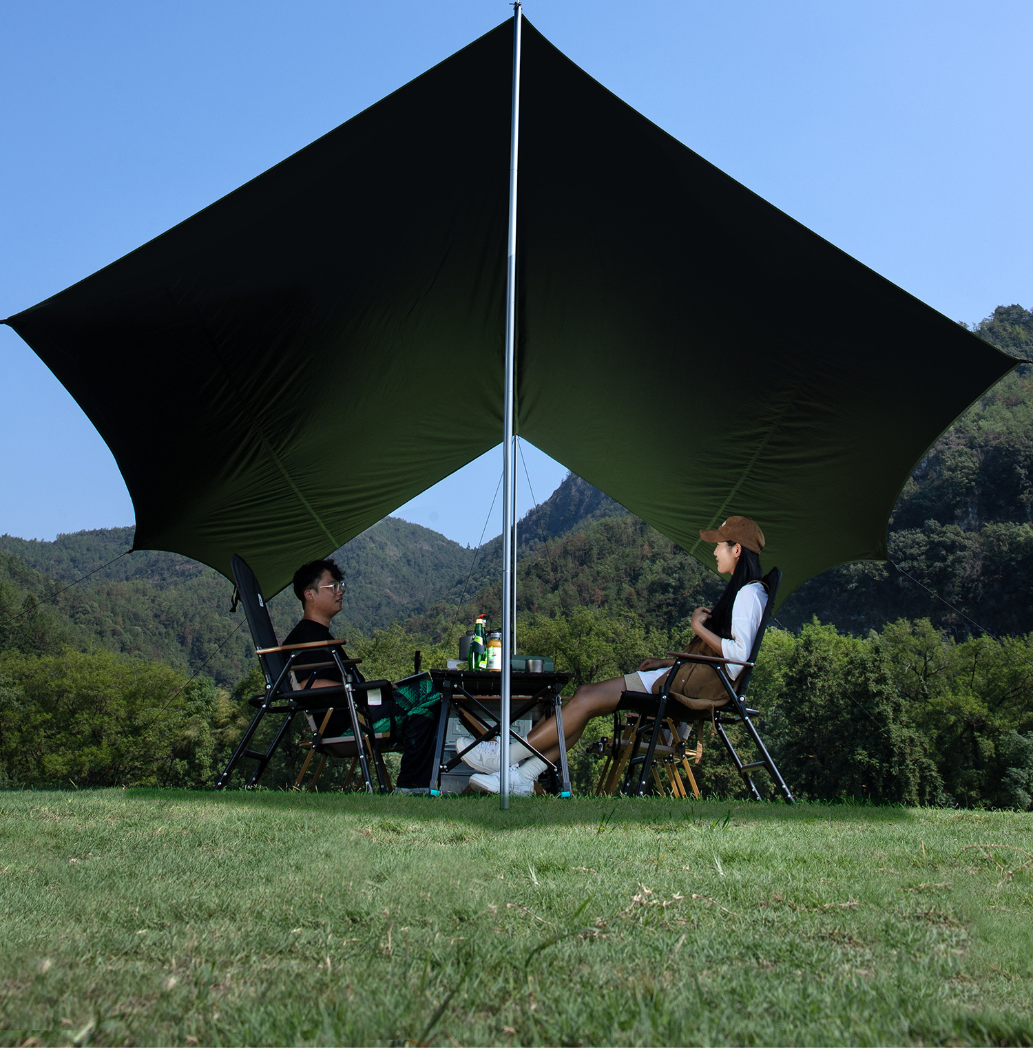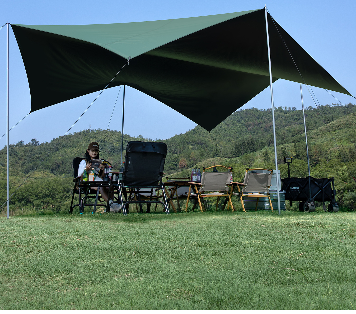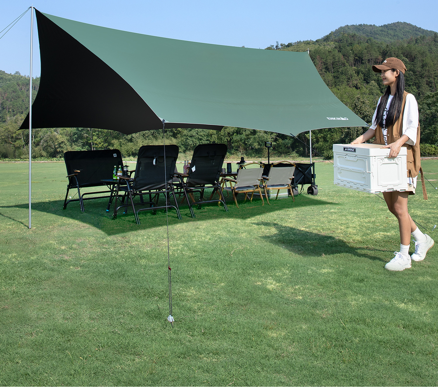 Enkomo 티타늄 비닐 캐노피 텐트 야외 캠핑 무료 설치 천막 테이블과 의자 6피스 캠핑 방수 천스토어 가기