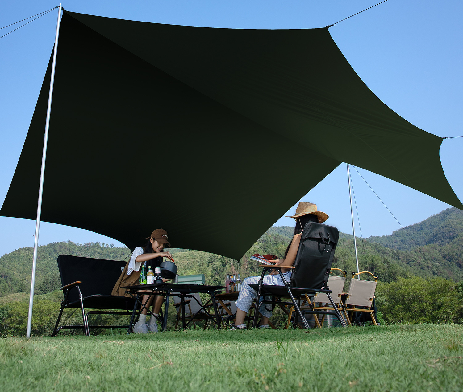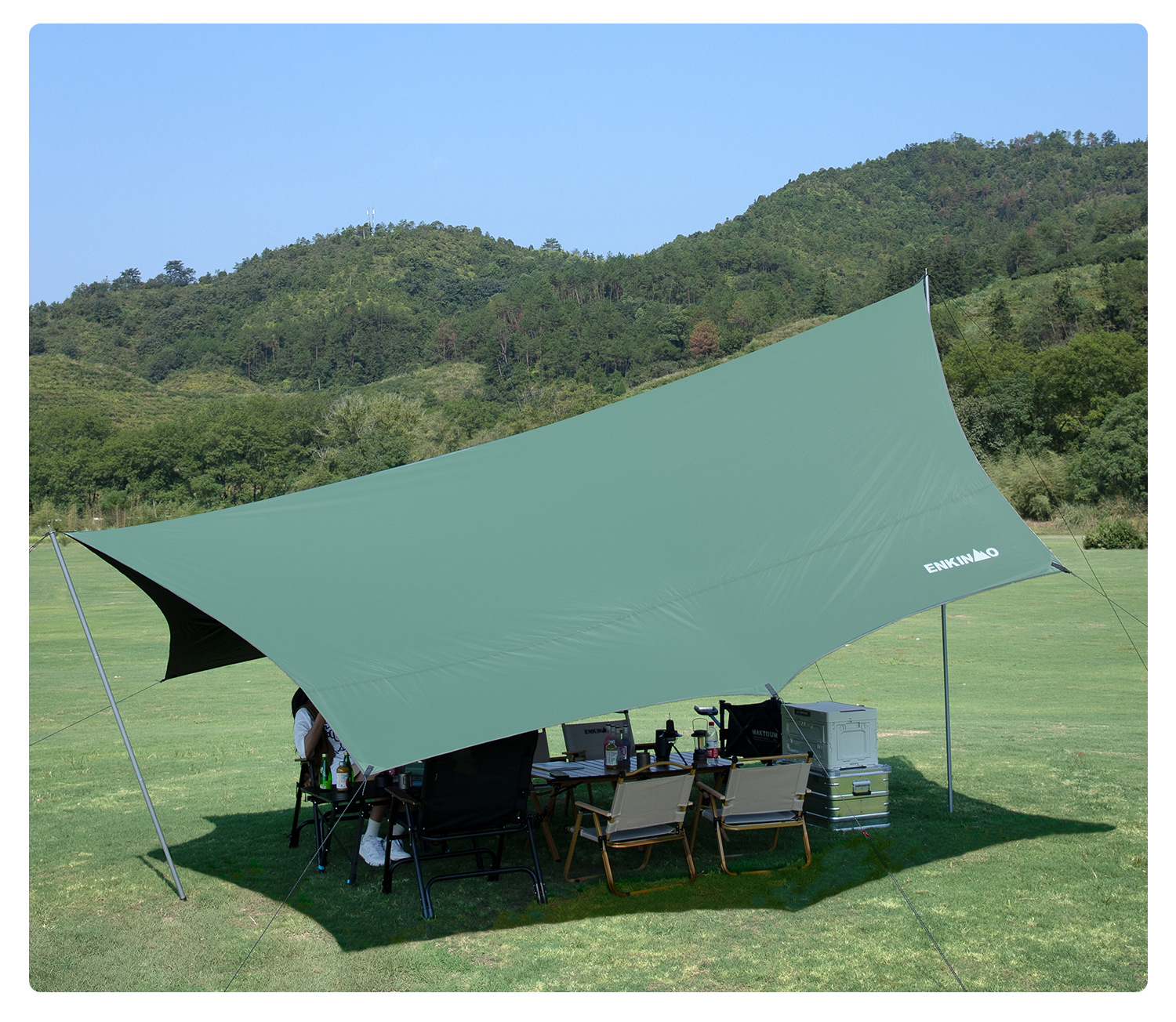 Enkomo 티타늄 비닐 캐노피 텐트 야외 캠핑 무료 설치 천막 테이블과 의자 6피스 캠핑 방수 천
