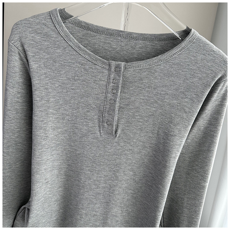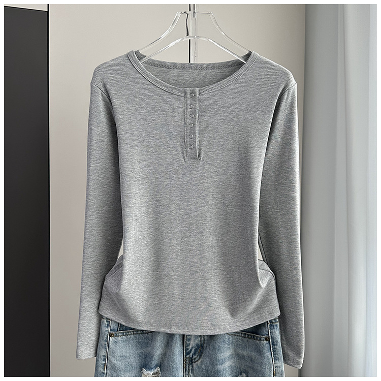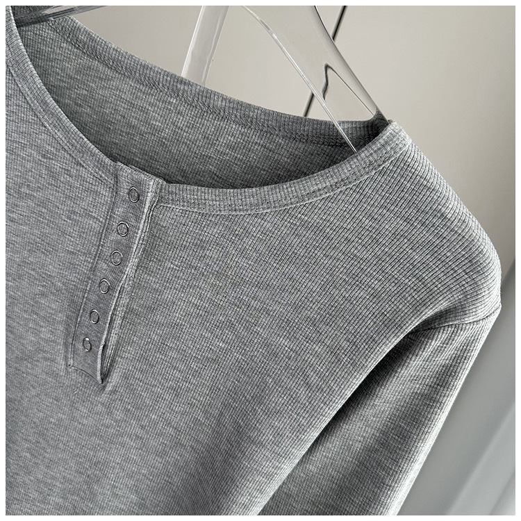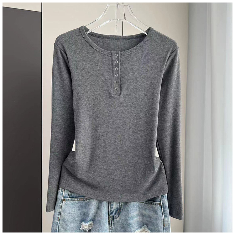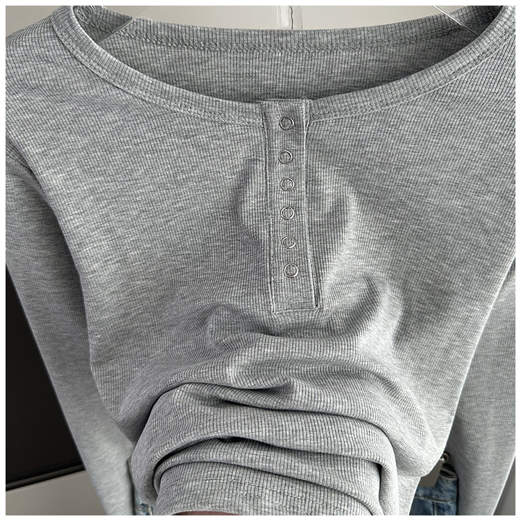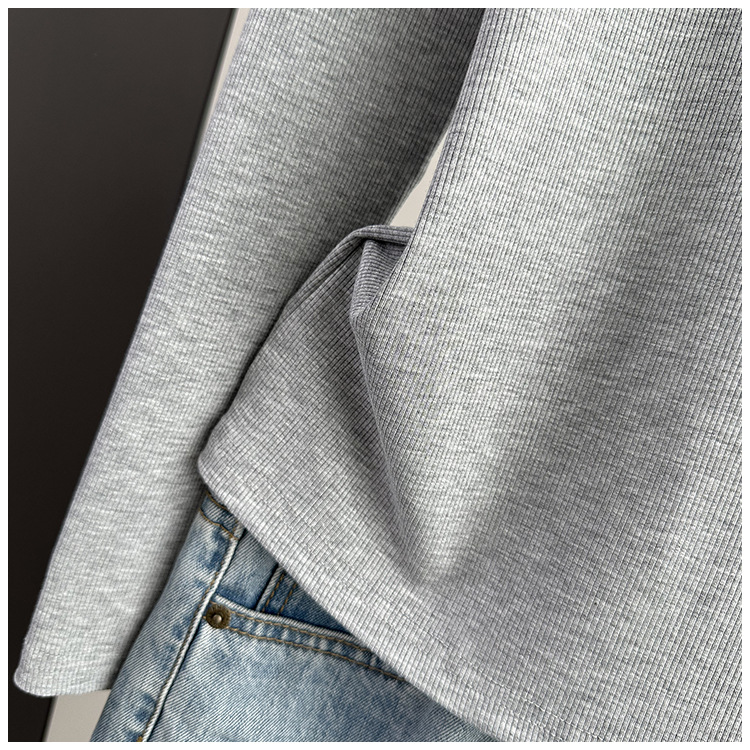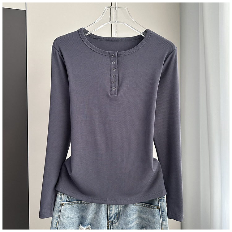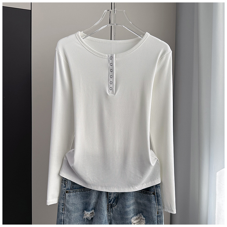 베이스 셔츠 여성의 봄과 가을 얇은 내부 탑 2025 새로운 스레드 어깨 슬림핏 슬리밍 긴팔 티셔츠스토어 가기