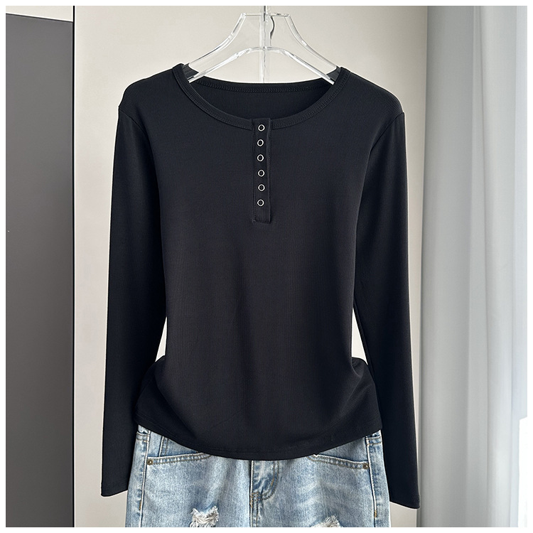 베이스 셔츠 여성의 봄과 가을 얇은 내부 탑 2025 새로운 스레드 어깨 슬림핏 슬리밍 긴팔 티셔츠