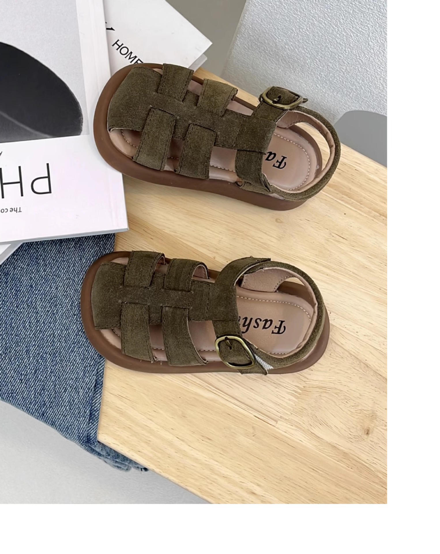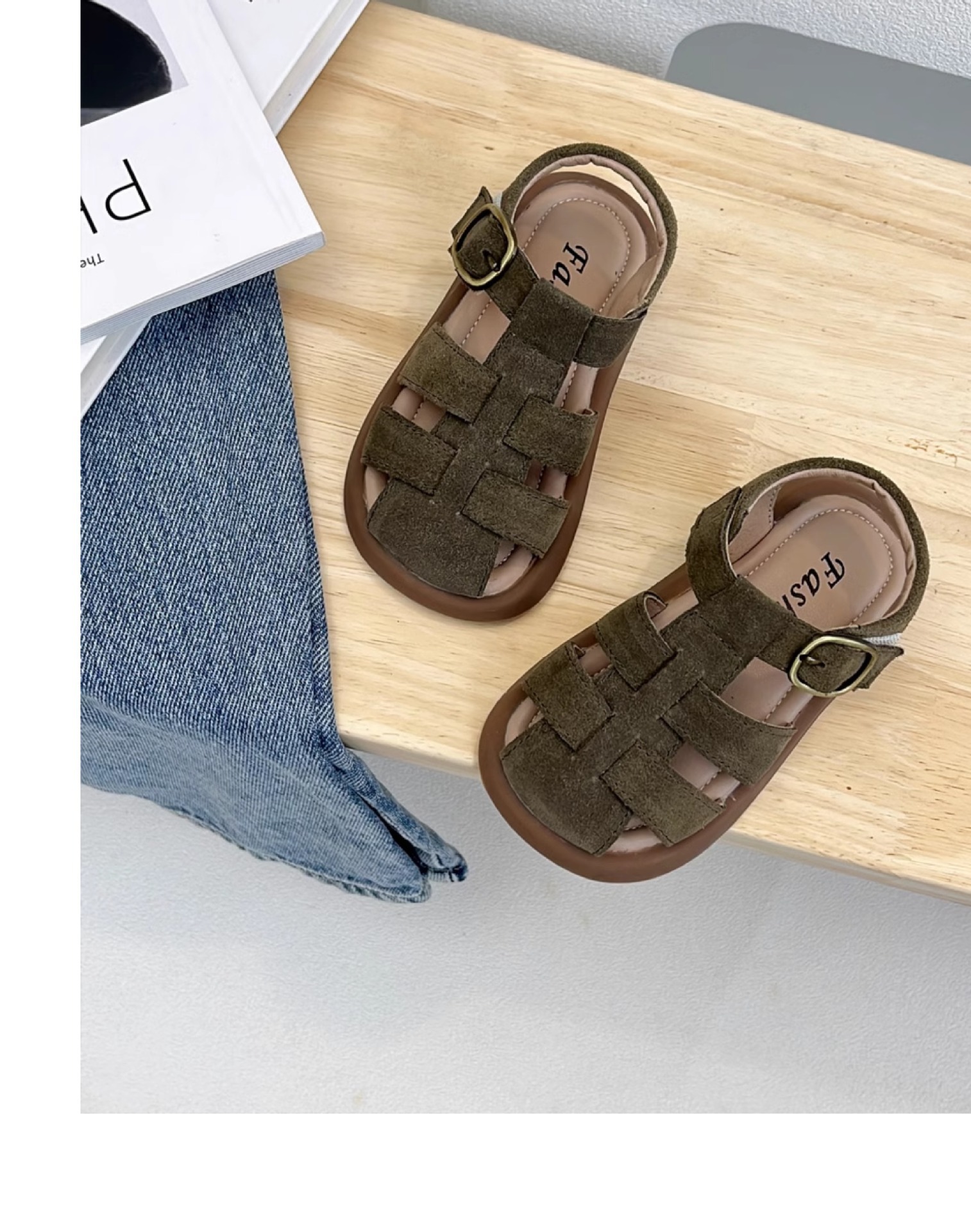 남성과 여성의 아기 어린이 한국식 짠 빈 아웃 레트로 영국식 서양식 미끄럼 방지 소프트 솔 비치 슈즈