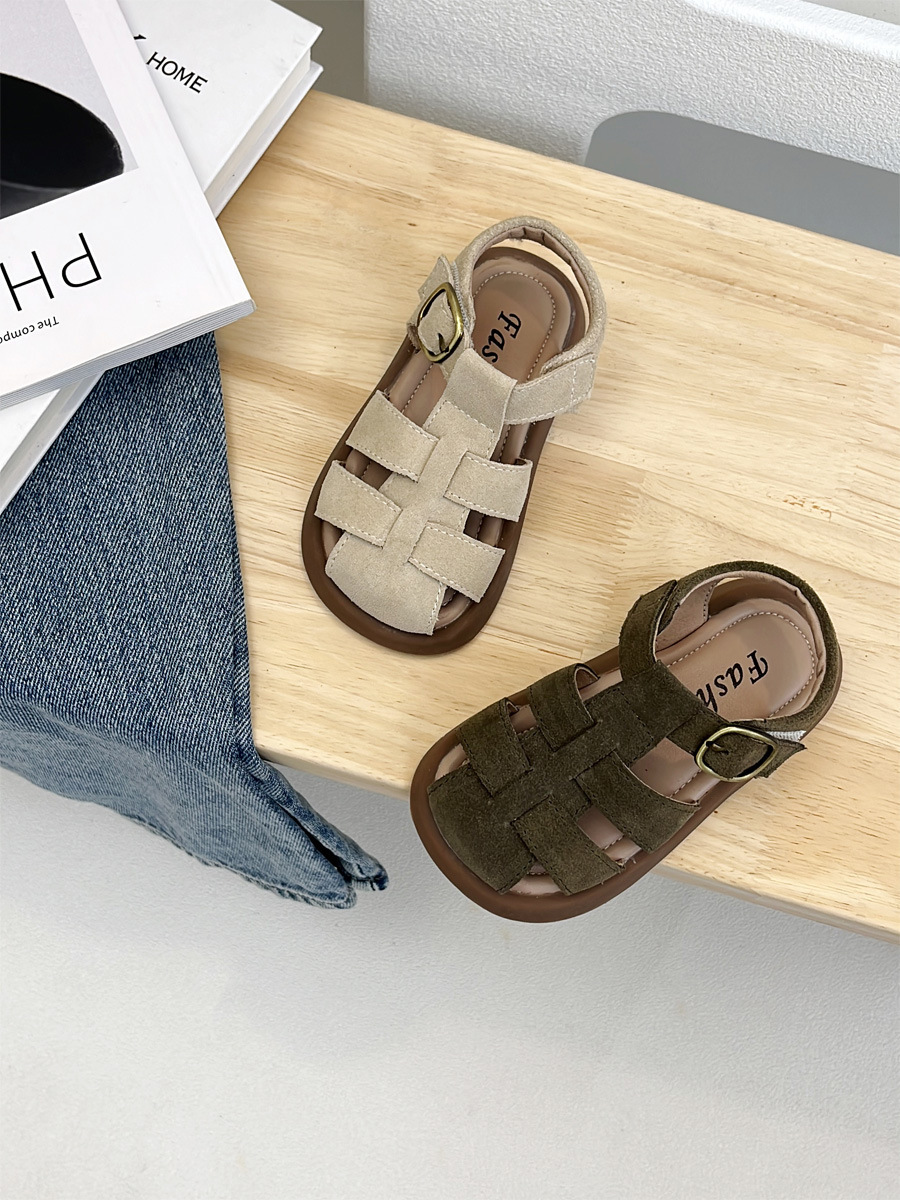 남성과 여성의 아기 어린이 한국식 짠 빈 아웃 레트로 영국식 서양식 미끄럼 방지 소프트 솔 비치 슈즈스토어 가기