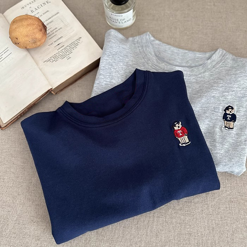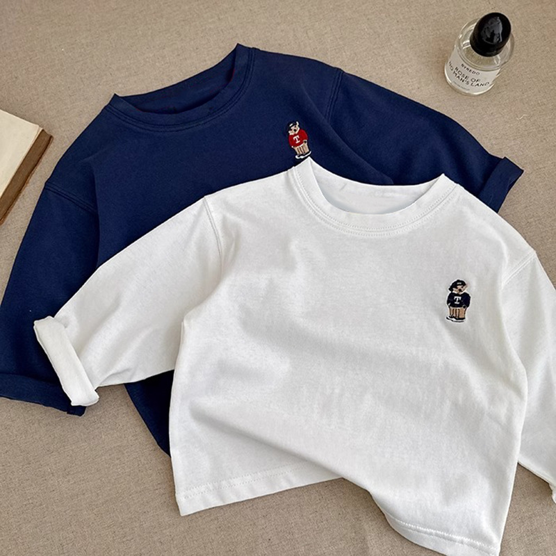 순면 아동복 티셔츠 긴팔 상의 2026 신상 트렌디 브랜드 자수 만화 캐릭터 캐주얼 만능 베이스 레이어 봄 가을스토어 가기