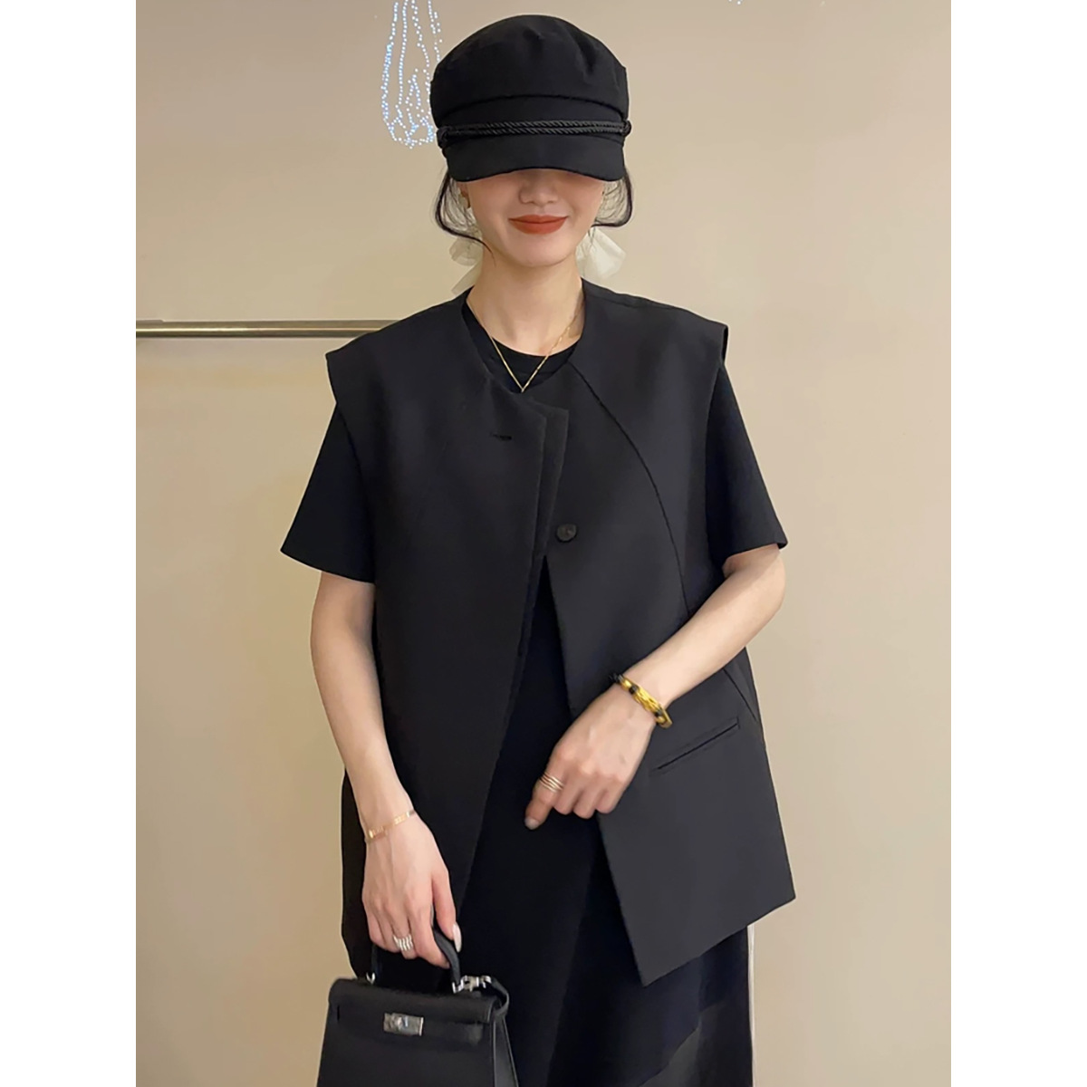 높은 수준의 슈퍼 잘 생긴 세트 조끼 여성의 2025 봄 새로운 작은 기질 조끼 재킷 재킷스토어 가기