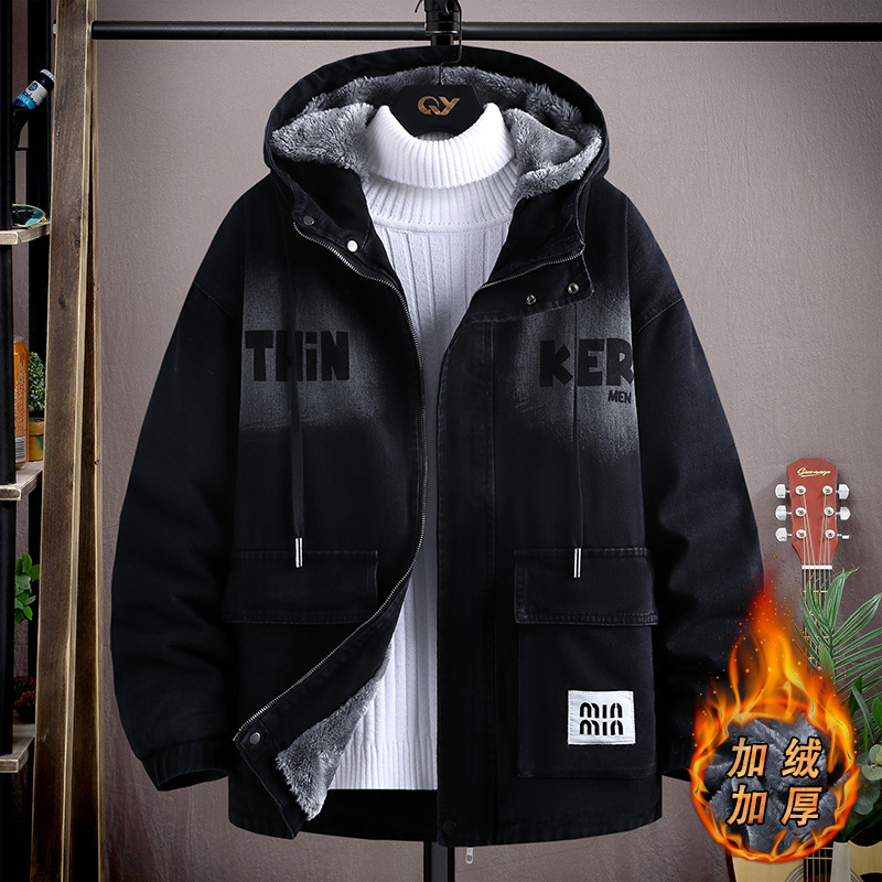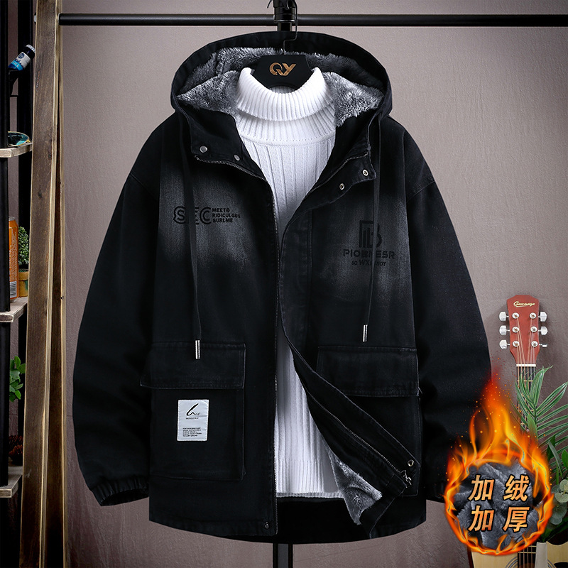 청소년 데님 재킷 가을 겨울용 플러스 벨벳 두꺼운 재킷 남학생 13세 중고등학생 15세 남성용 재킷스토어 가기