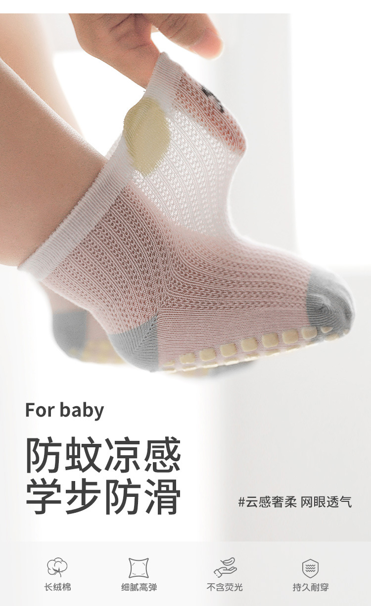 아기 바닥 양말 여름 초박형 아기 양말 통기성 어린이 미드 튜브 양말 미끄럼 방지 신생아 유아 양말