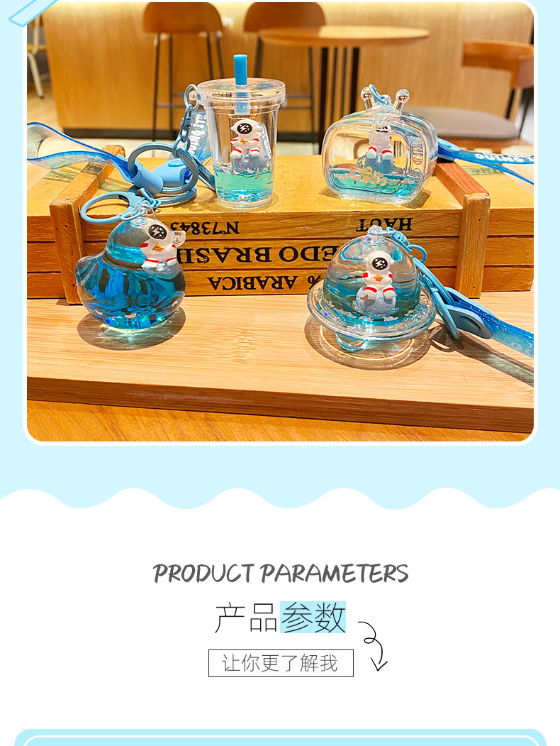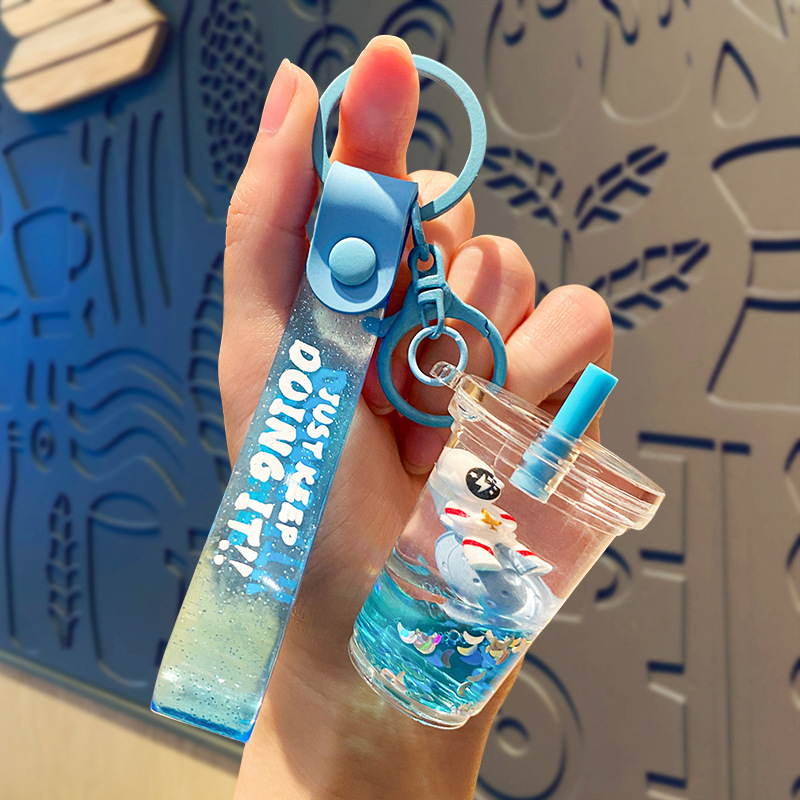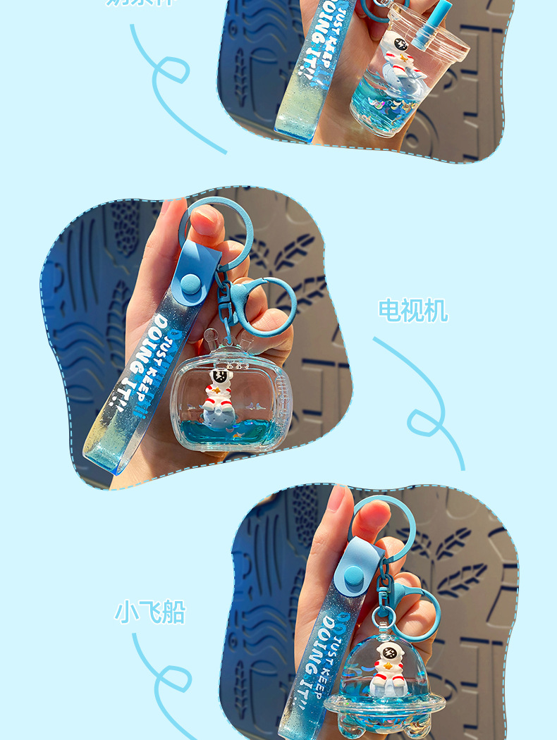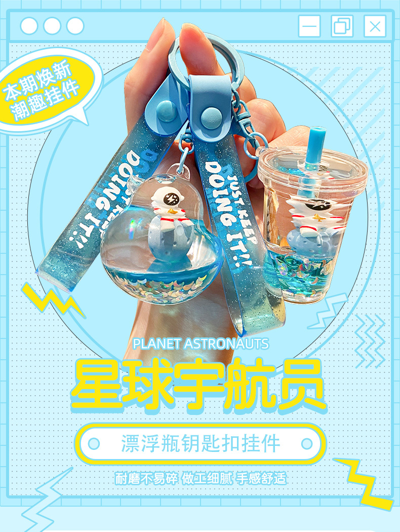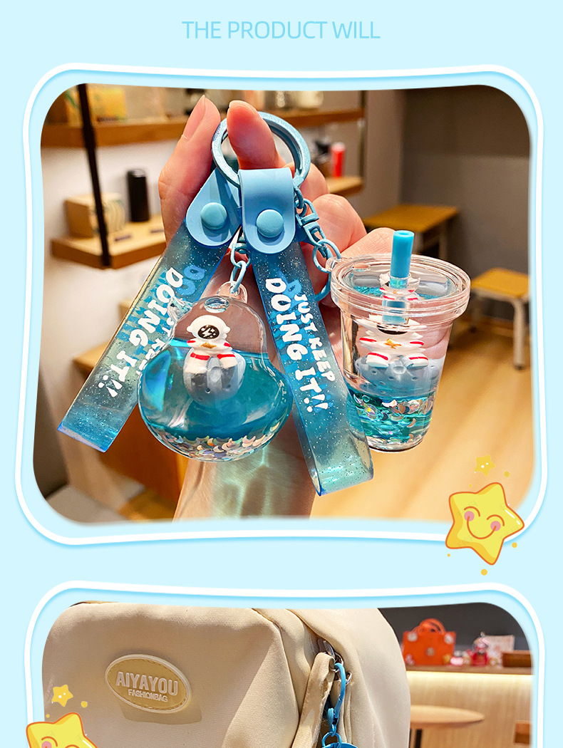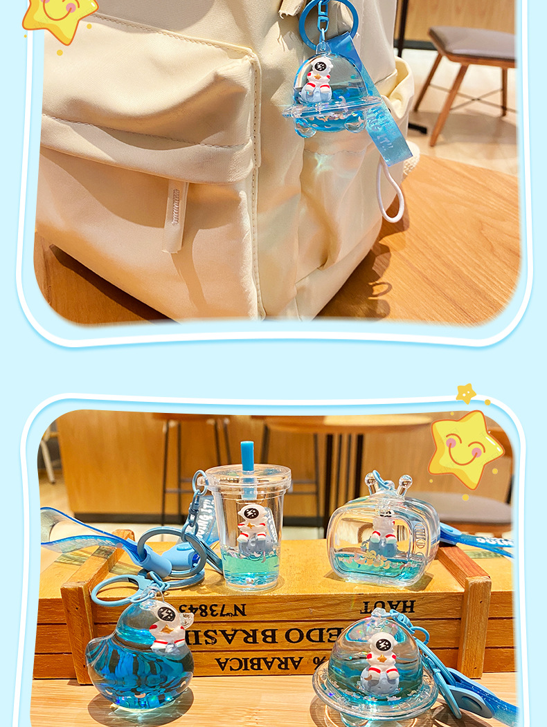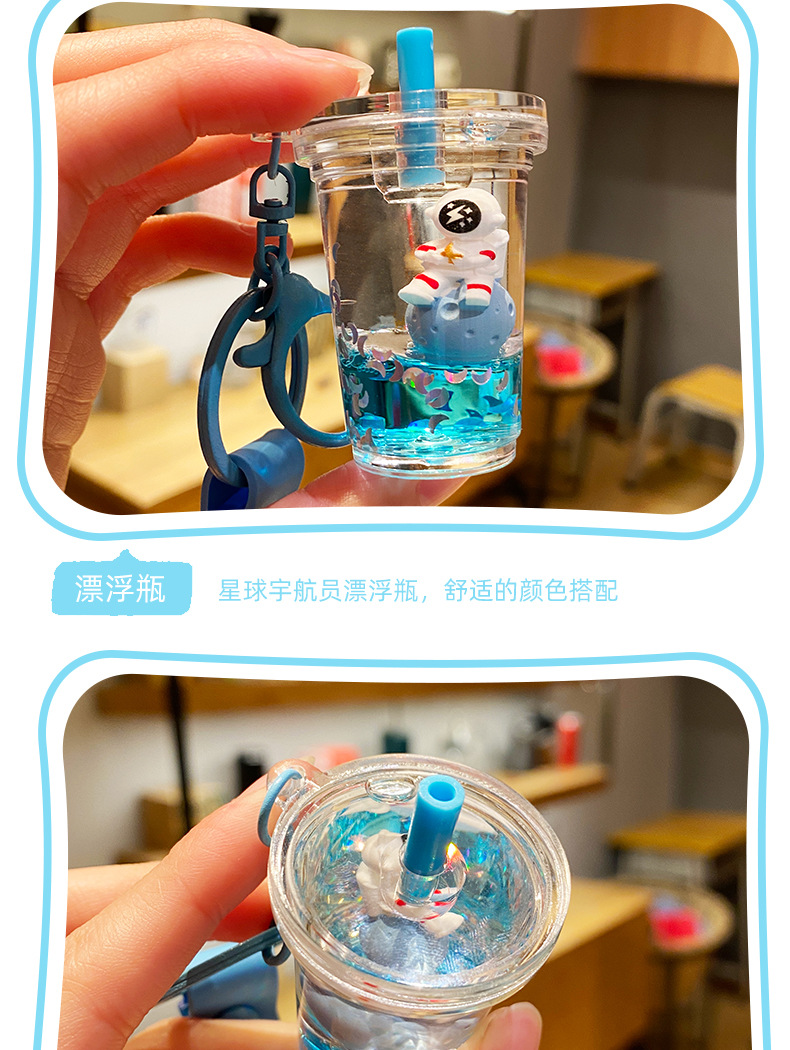 우주 비행사 오일 플로팅 병 가방 펜던트 작은 보석 귀여운 키 체인 높은 감각 만화 액세서리 도매스토어 가기