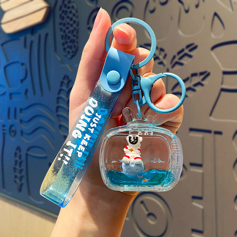 우주 비행사 오일 플로팅 병 가방 펜던트 작은 보석 귀여운 키 체인 높은 감각 만화 액세서리 도매
