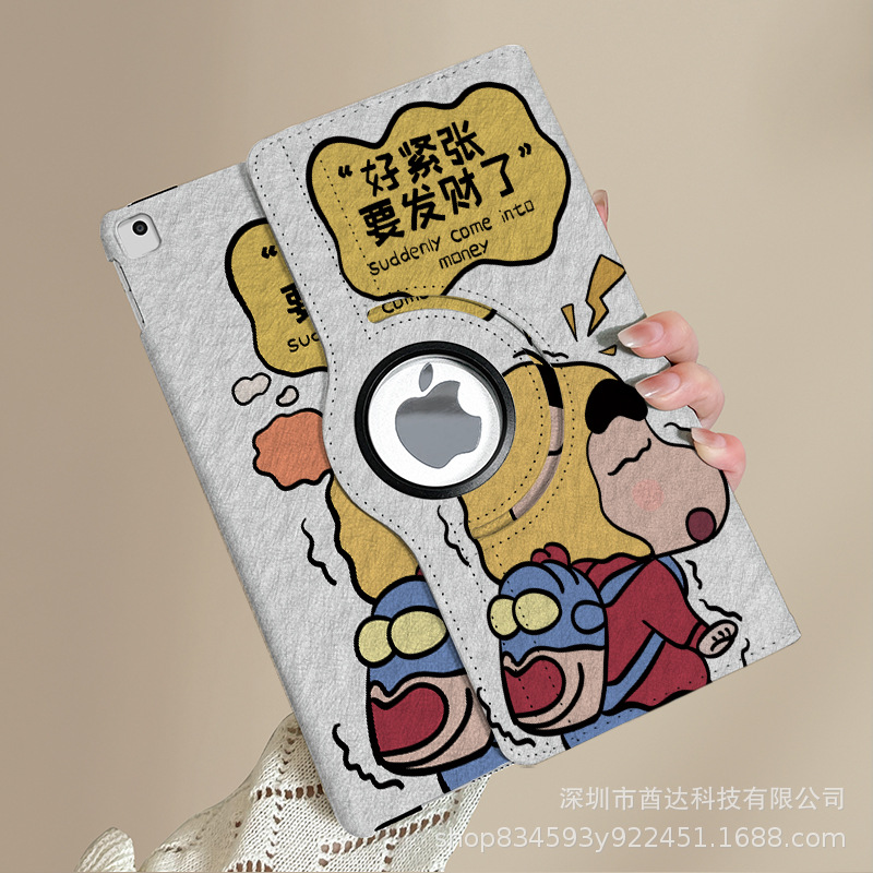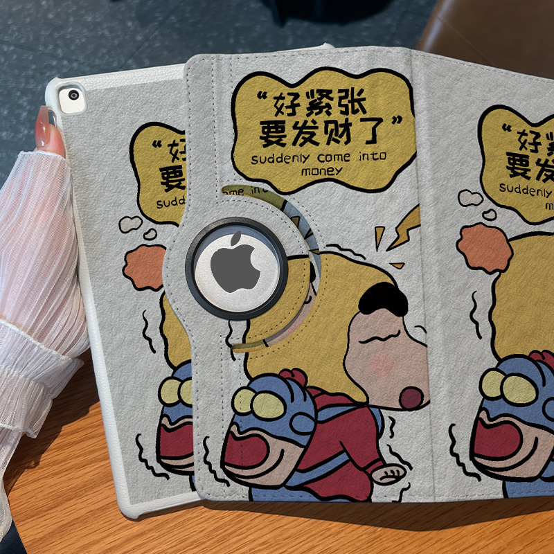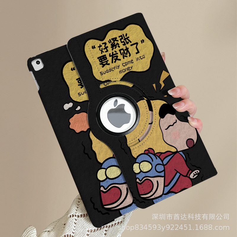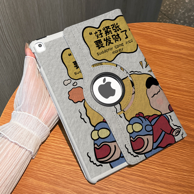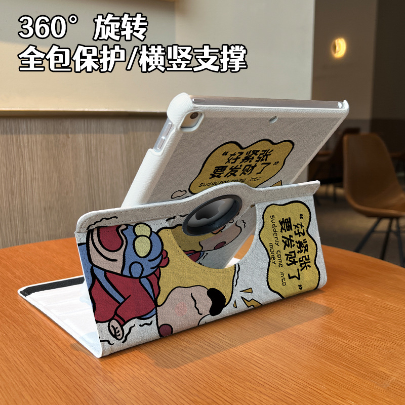 360 ° 회전 가죽 케이스 ipad9 태블릿 케이스 air7 낙하 방지 크레용 신짱 mini4/5/6iPad 보호 케이스