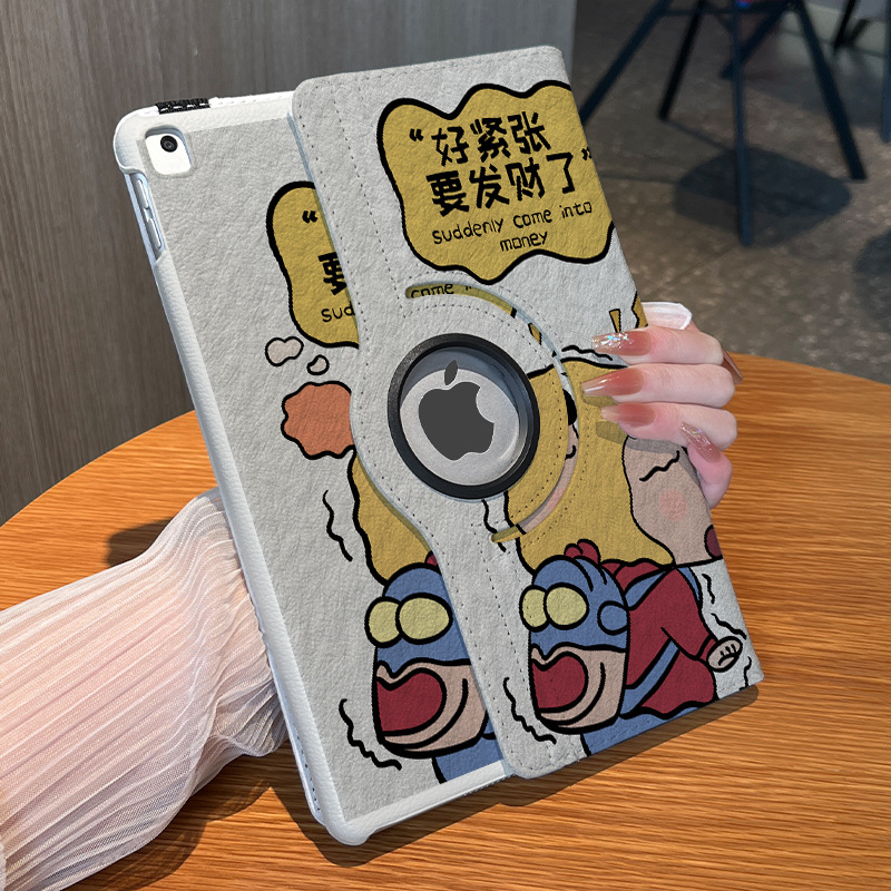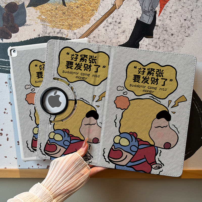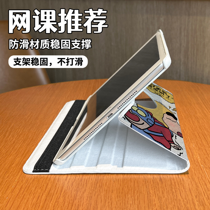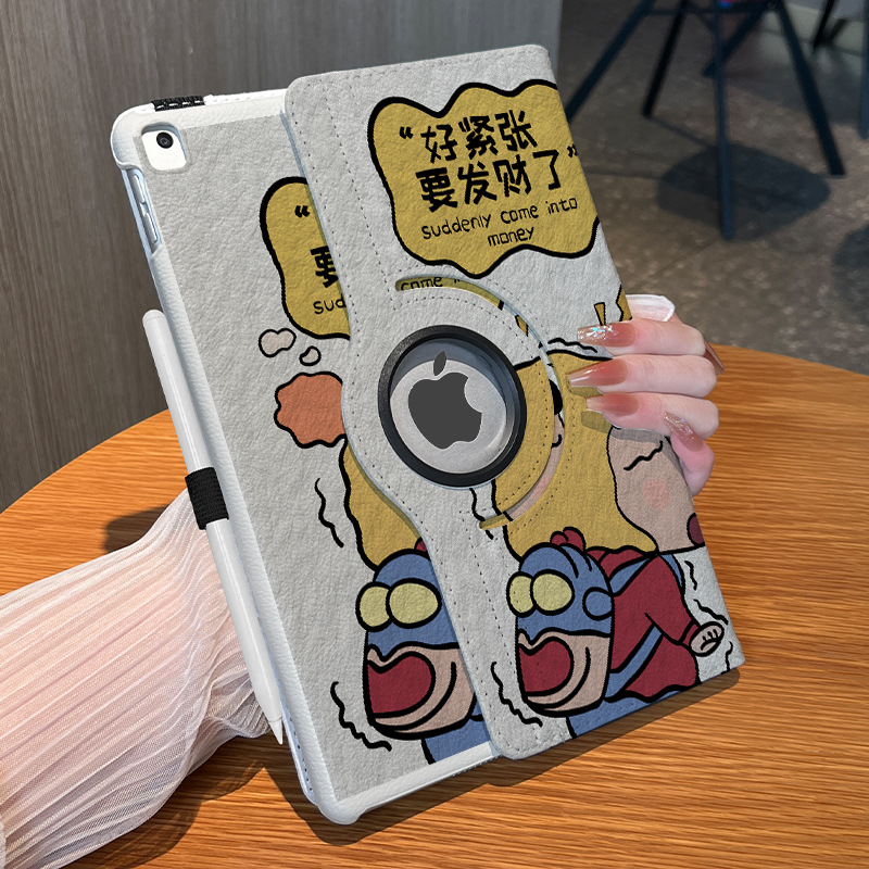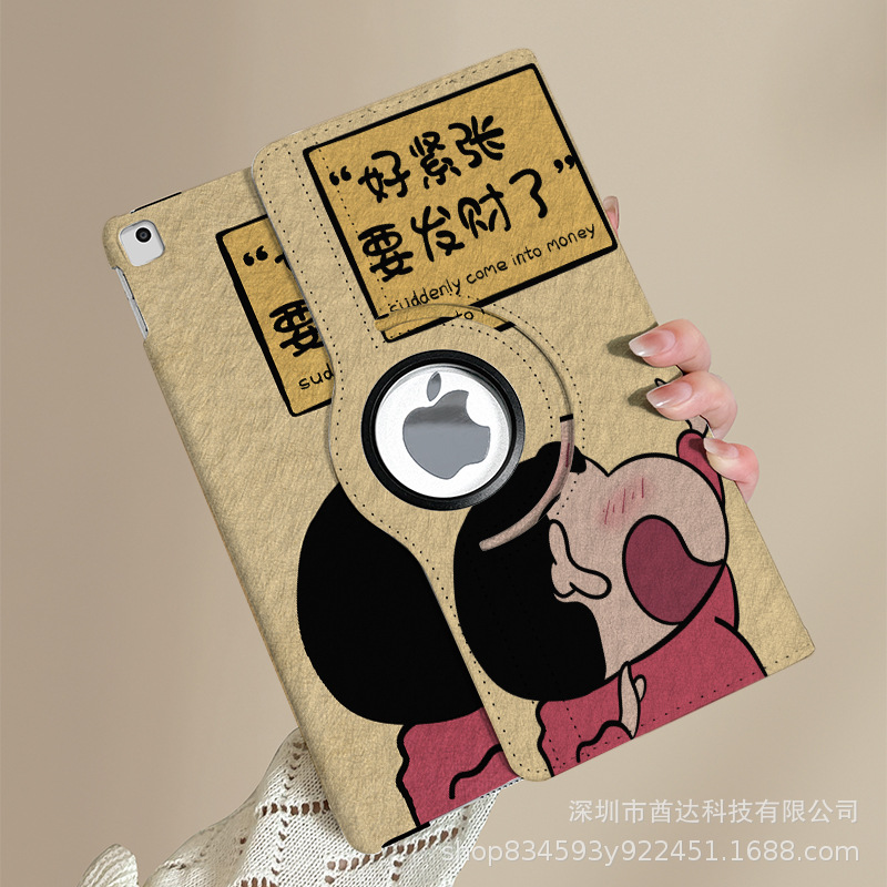 360 ° 회전 가죽 케이스 ipad9 태블릿 케이스 air7 낙하 방지 크레용 신짱 mini4/5/6iPad 보호 케이스