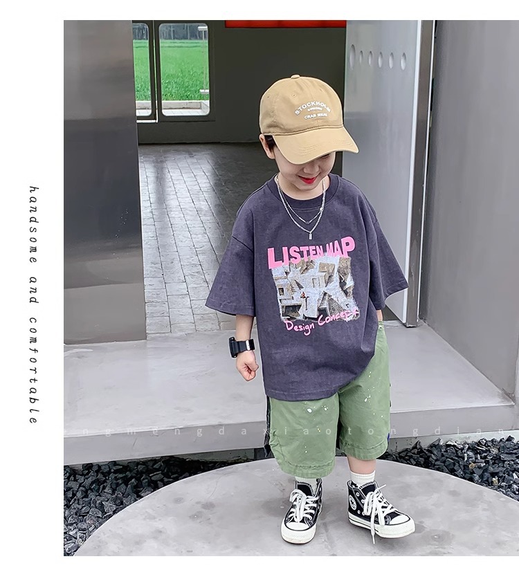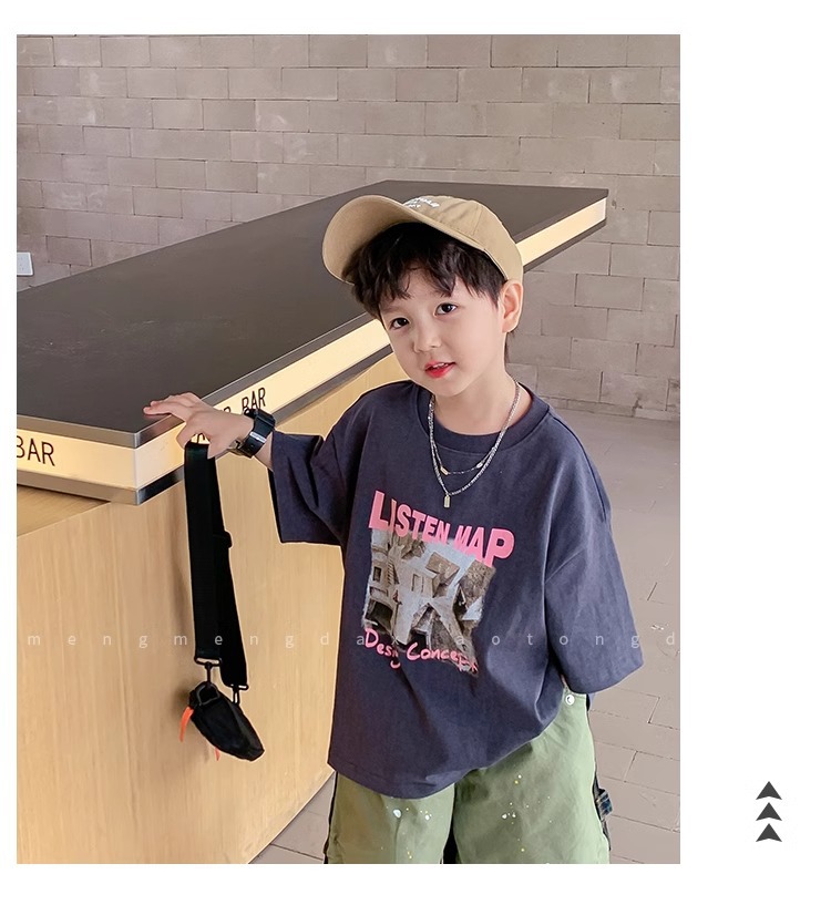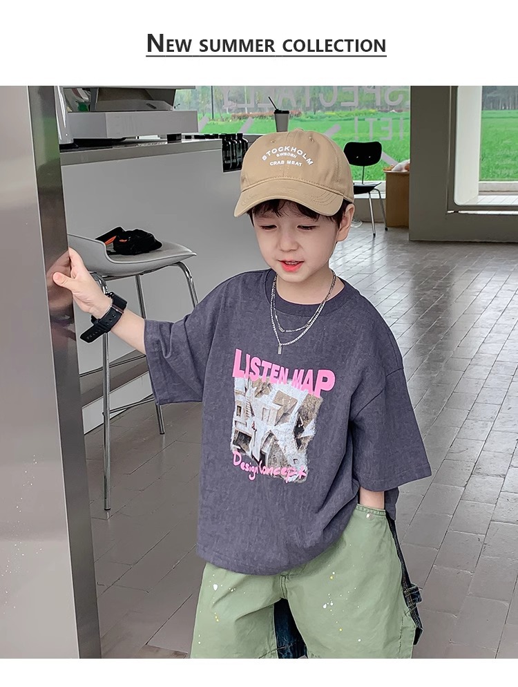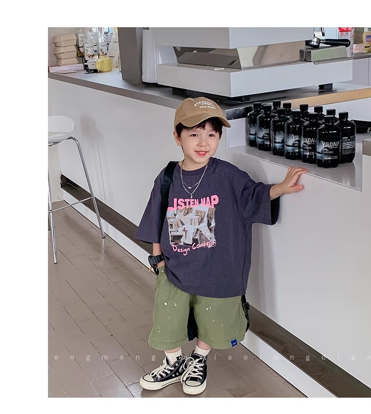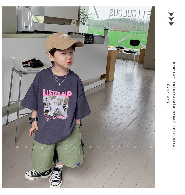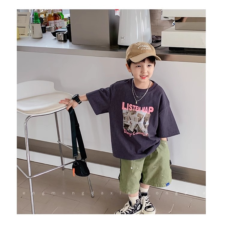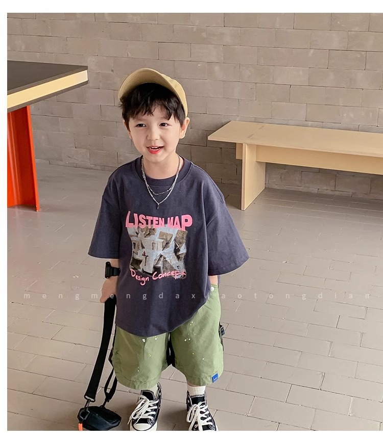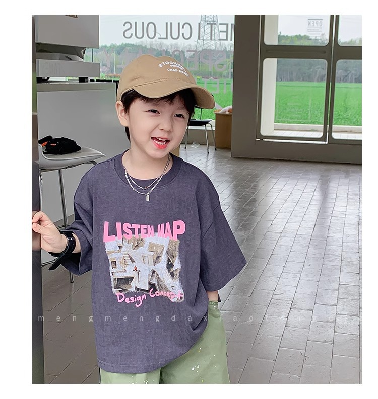 아동복 중소형 아동용 프린트 반팔 아동복 여름 소년 티셔츠 트렌디 2023 새 아동베이스 셔츠 한국판스토어 가기