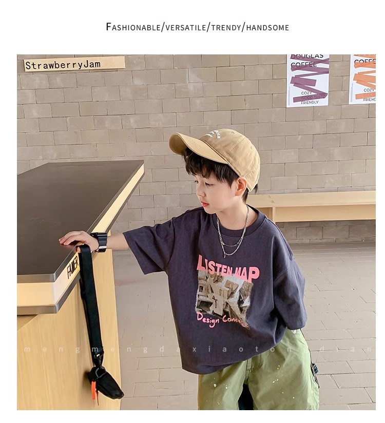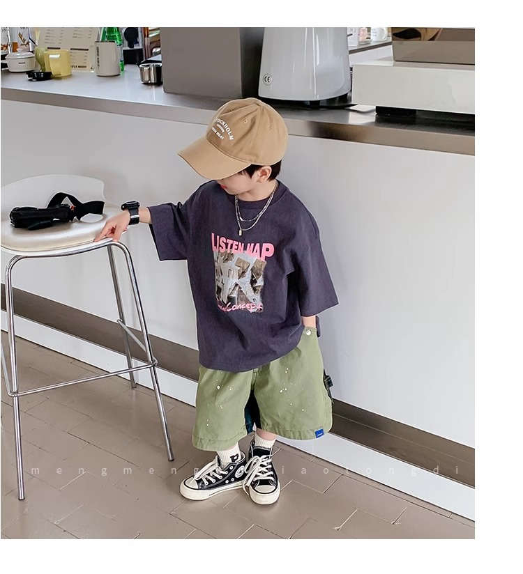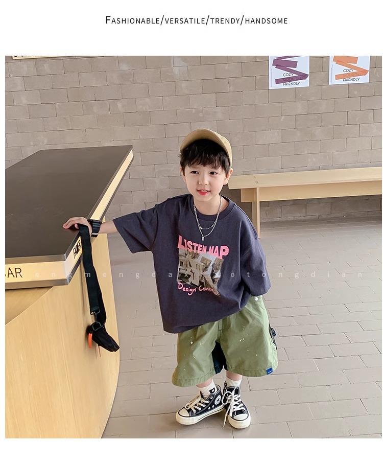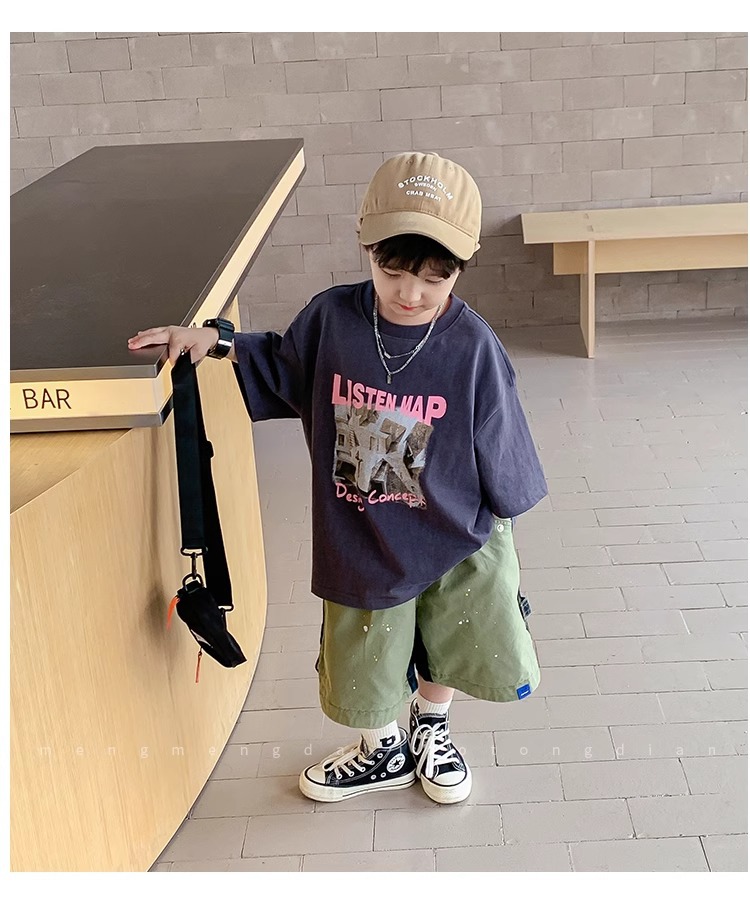 아동복 중소형 아동용 프린트 반팔 아동복 여름 소년 티셔츠 트렌디 2023 새 아동베이스 셔츠 한국판