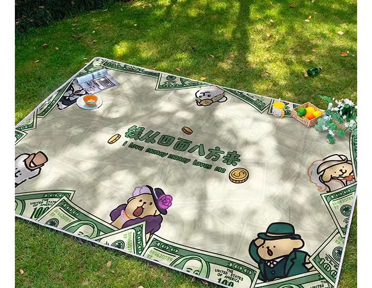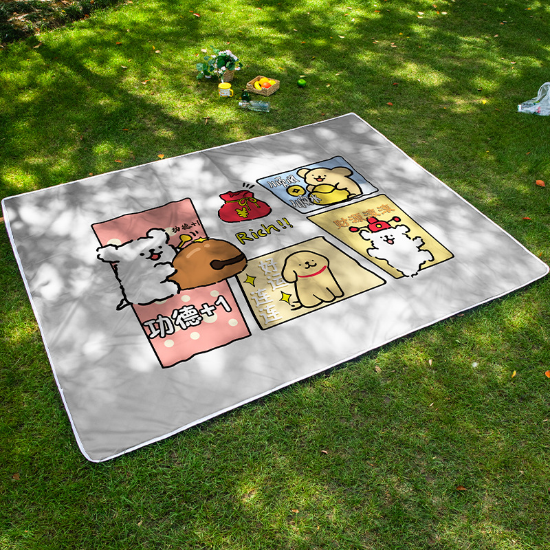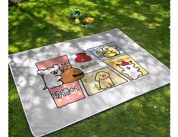 귀여운 개 포춘 Pnic Mat 야외 캠핑 비치 잔디 음악 축제 쿠션 여행 휴대용 천 수분 방지스토어 가기