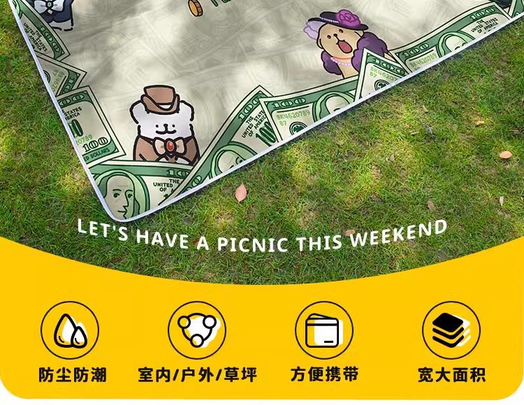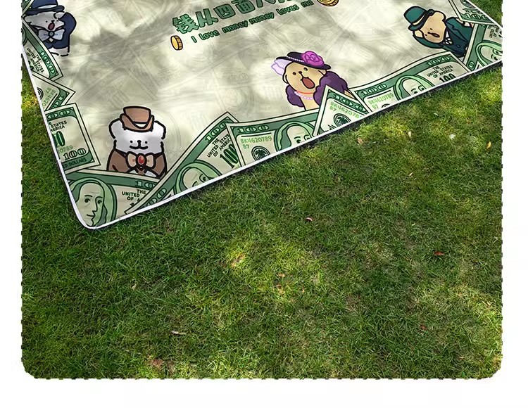 귀여운 개 포춘 Pnic Mat 야외 캠핑 비치 잔디 음악 축제 쿠션 여행 휴대용 천 수분 방지