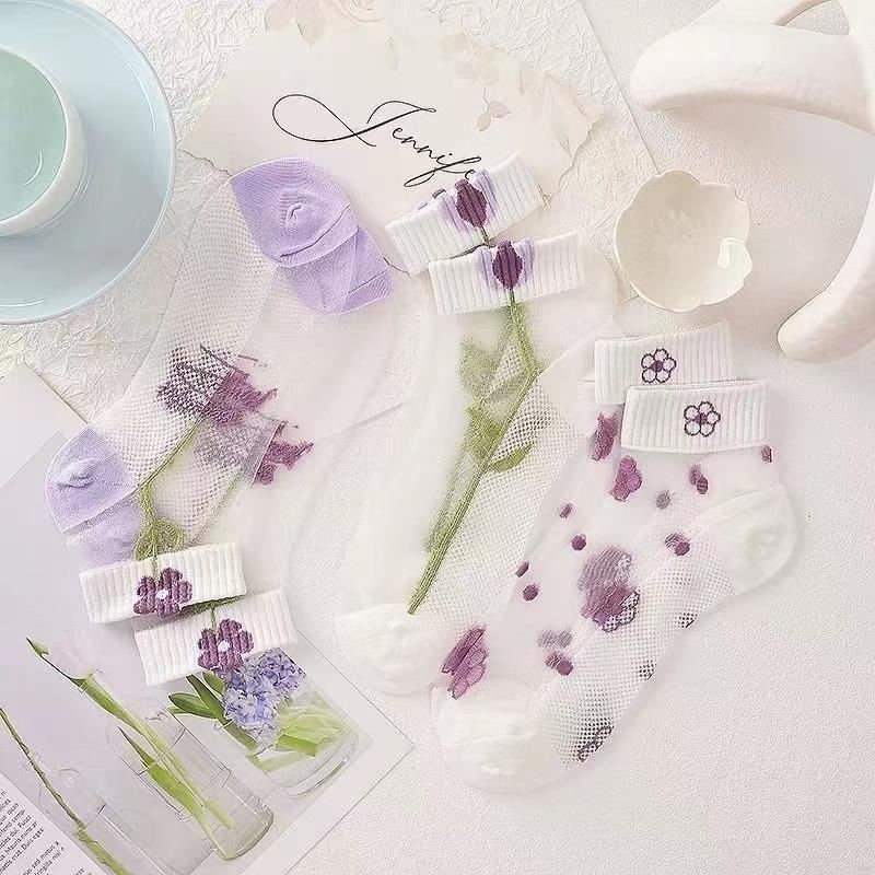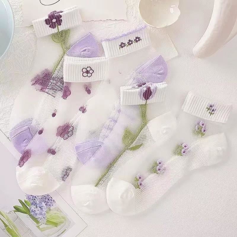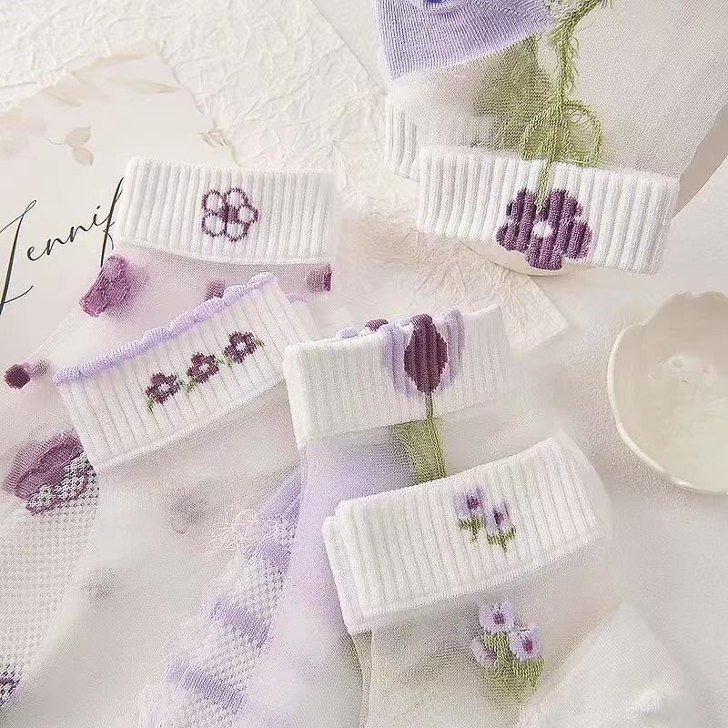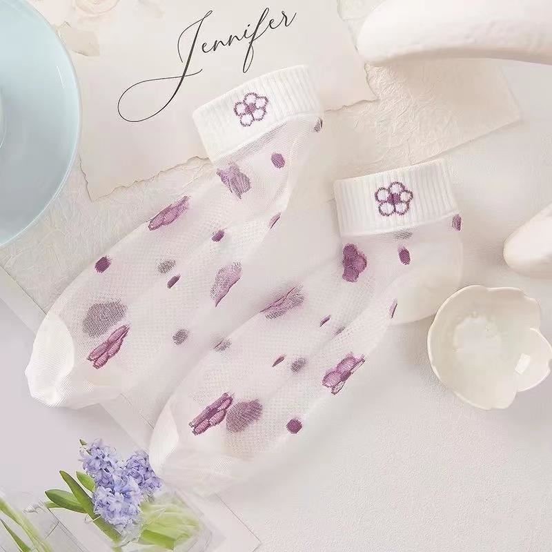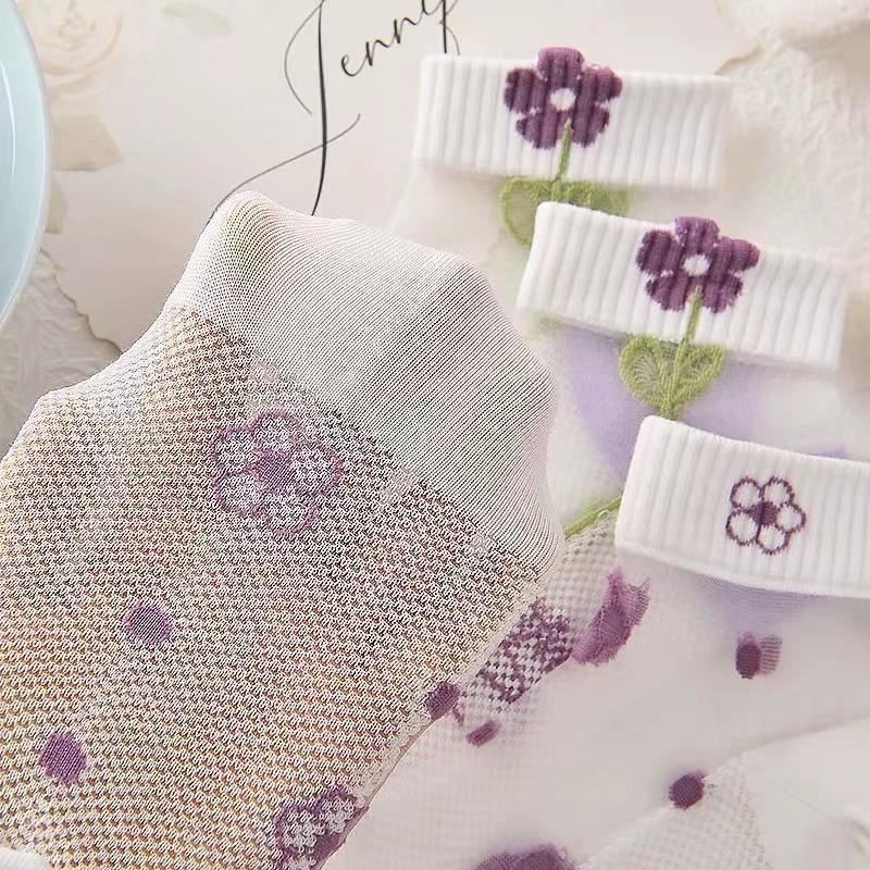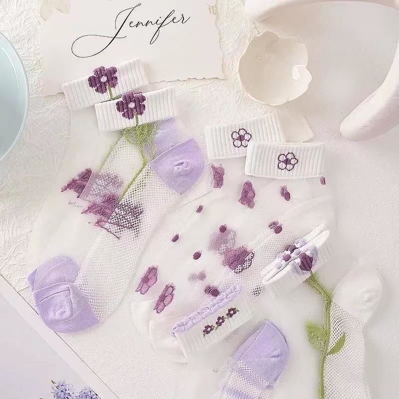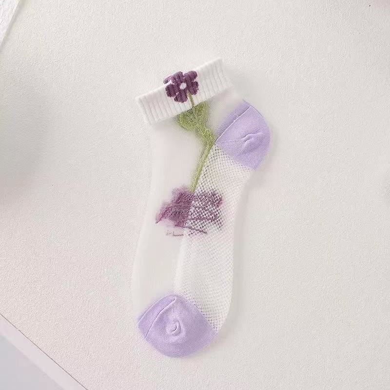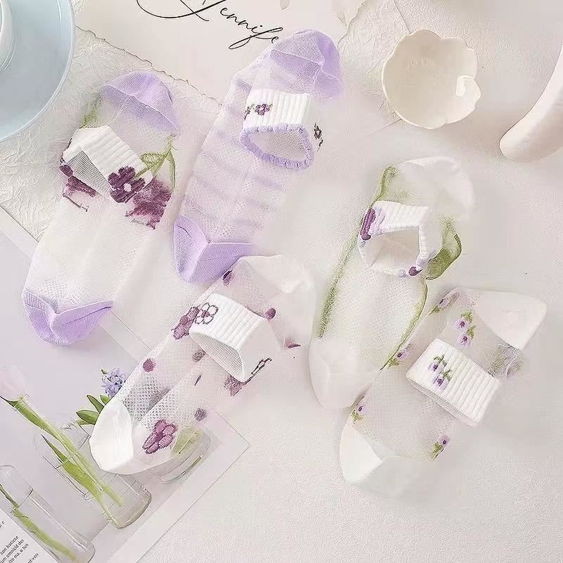 이순신 팬 얇은 카드 스타킹 여름 보라색 카드 크리스탈 보트 스타킹 짧은 양말 흡수 통기성 땀 봄 및 여름 여성용 얇은 양말