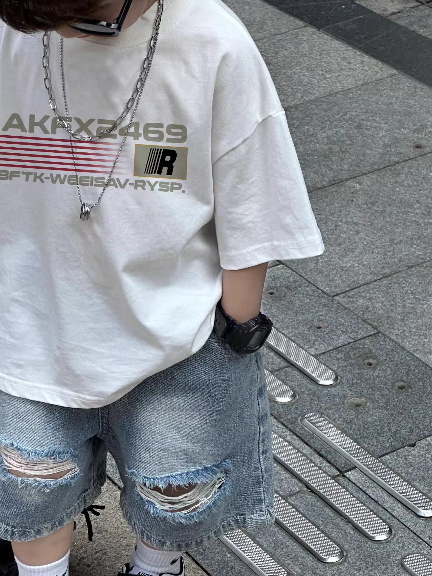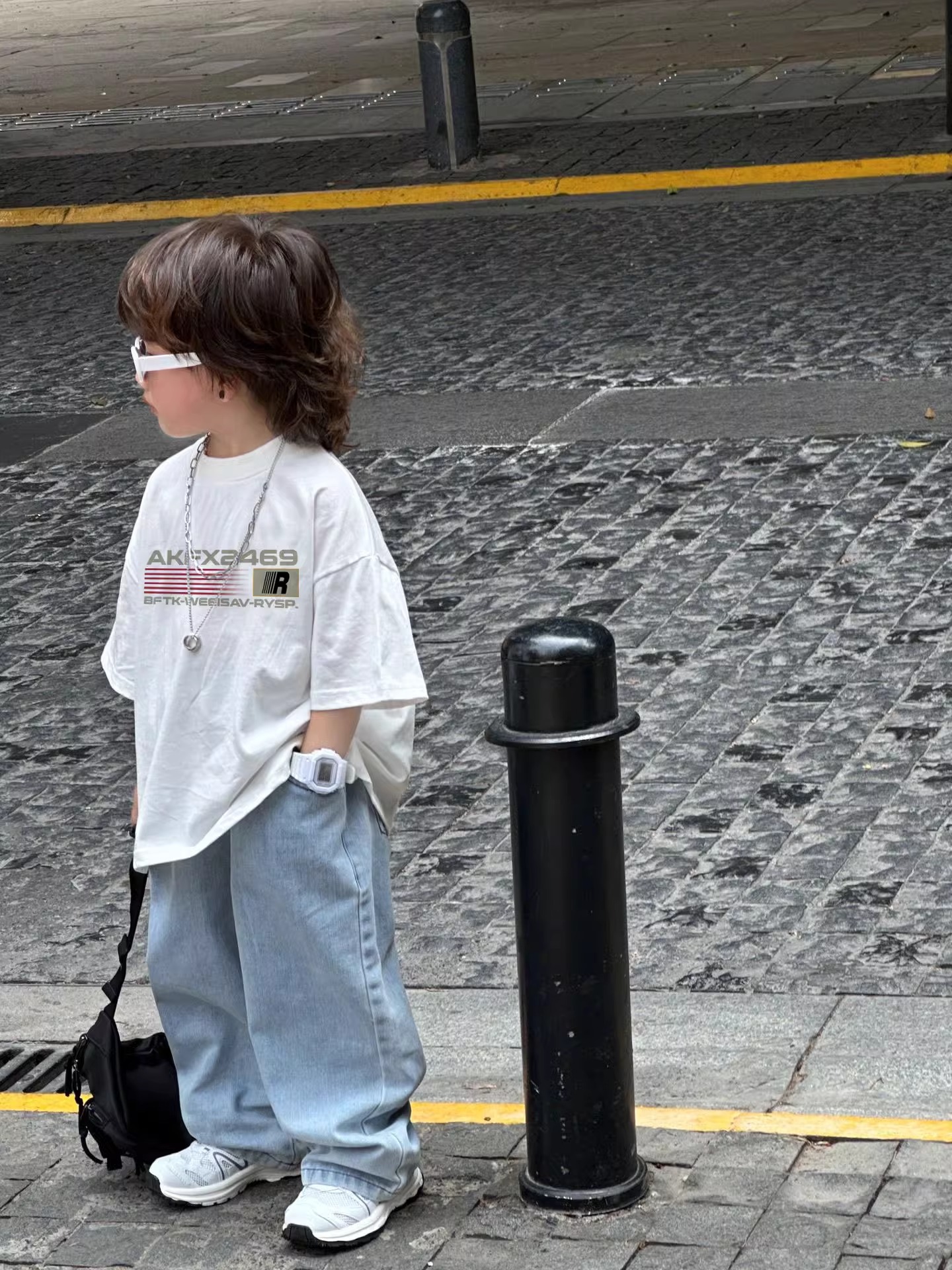 Yipi Shuai 튀긴 거리 미국 어린이 하이 스트리트 소년 아기 티셔츠 짧은 소매 여름 코트 소년 티셔츠 새로운베이스 셔츠스토어 가기