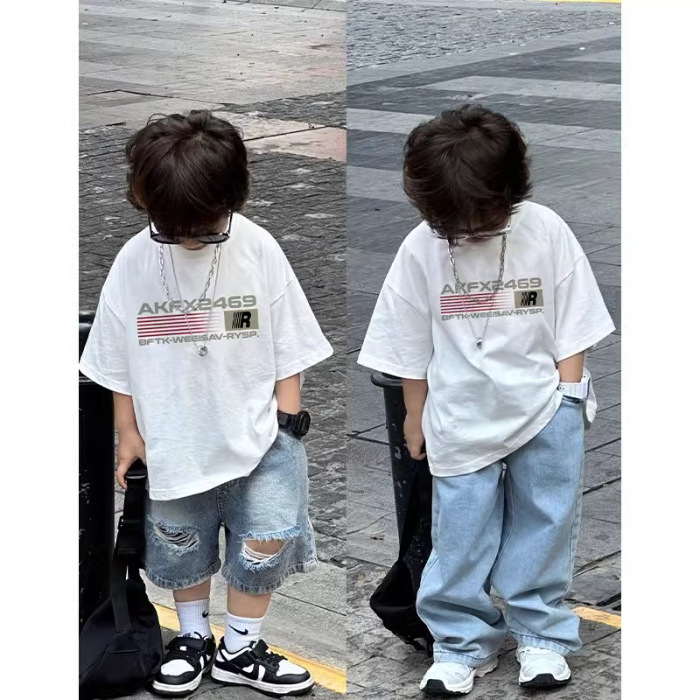 Yipi Shuai 튀긴 거리 미국 어린이 하이 스트리트 소년 아기 티셔츠 짧은 소매 여름 코트 소년 티셔츠 새로운베이스 셔츠
