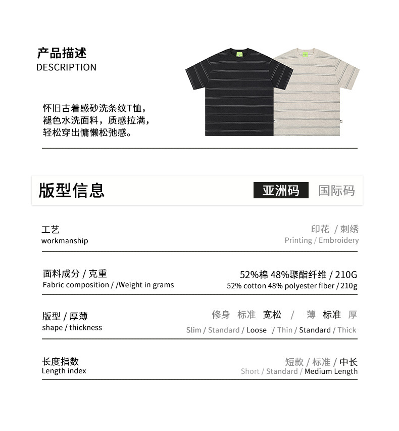 일본식 골동품 아미 카지 드레스 샌드 워시 페이드 수평 줄무늬 티셔츠 여름 새로운 올 매치 느슨한 반팔 남자