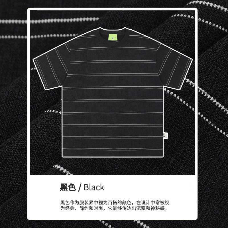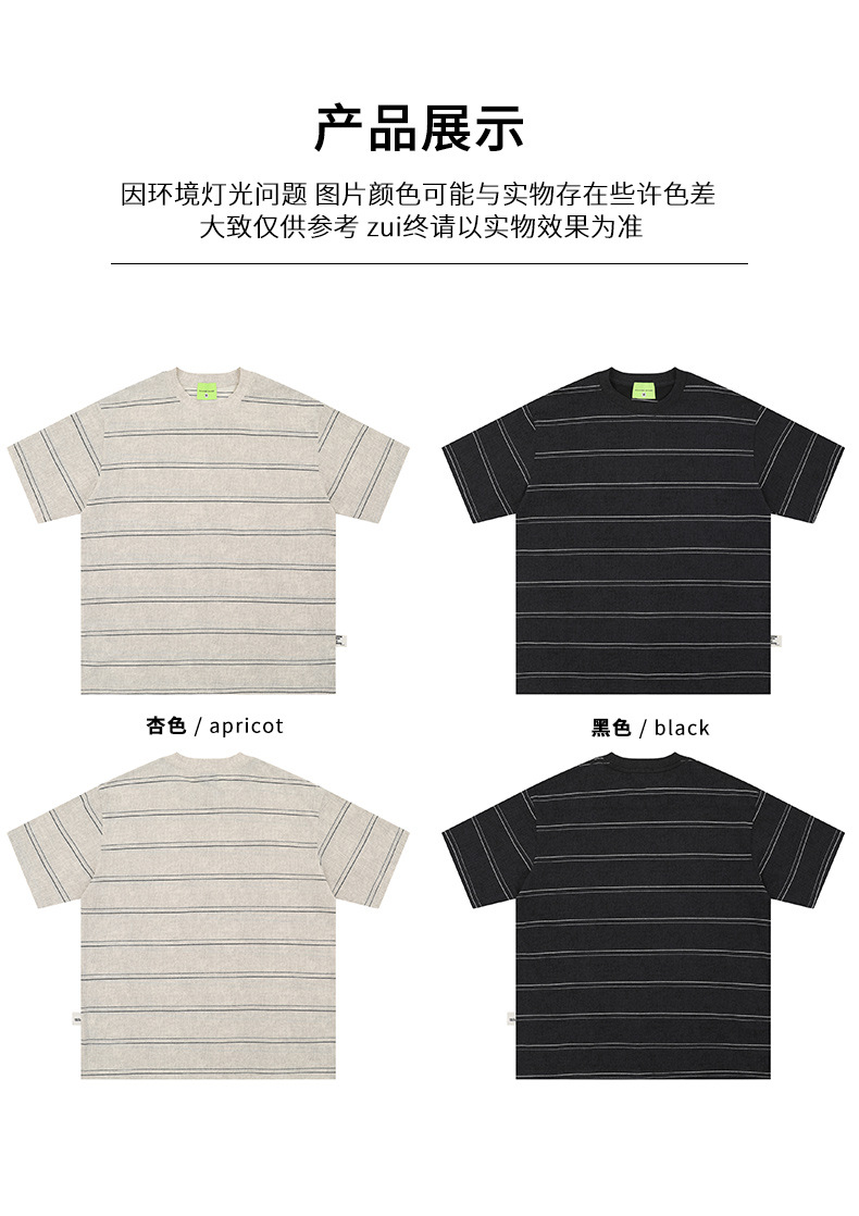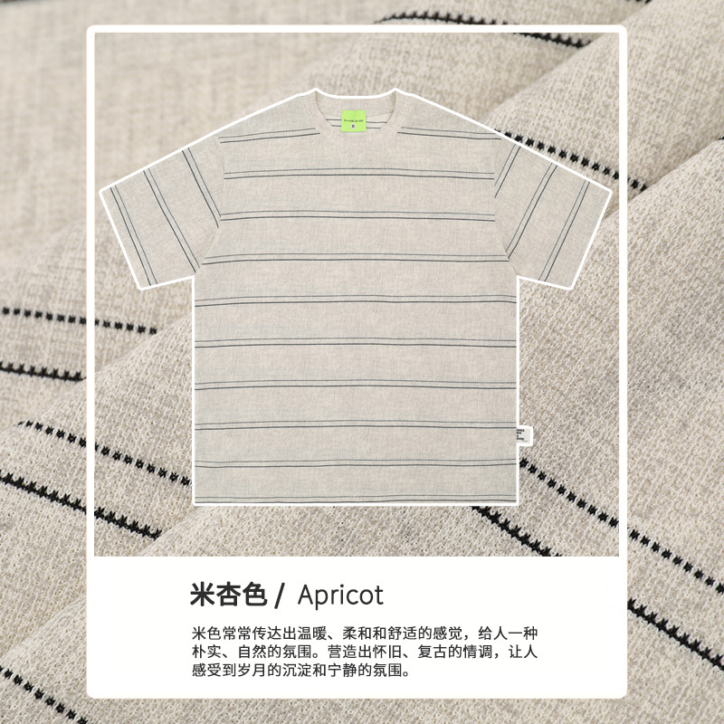 일본식 골동품 아미 카지 드레스 샌드 워시 페이드 수평 줄무늬 티셔츠 여름 새로운 올 매치 느슨한 반팔 남자스토어 가기