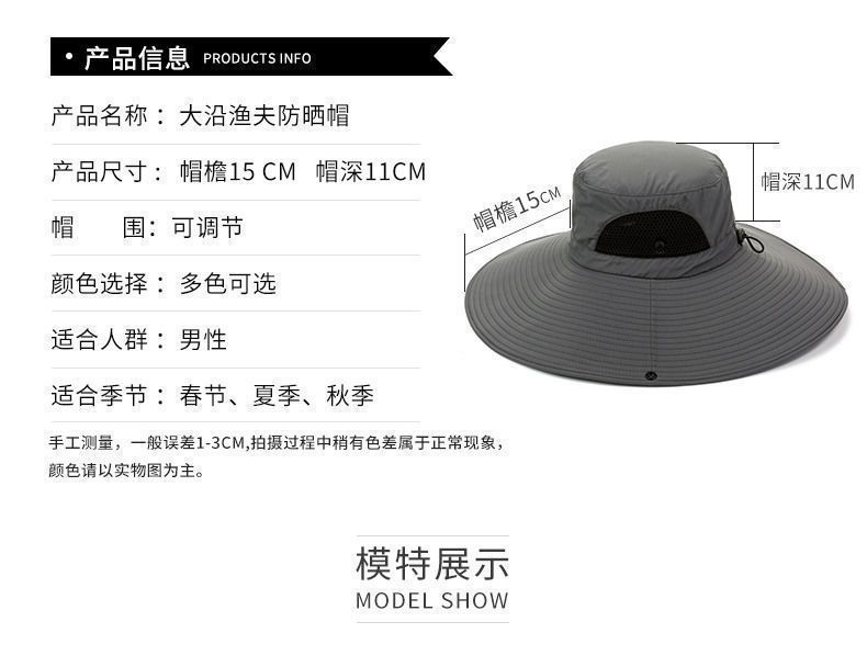 15CM 빅 브림 어부의 모자 선 스크린 태양 모자 여름 UV 보호 야외 낚시 등산 태양 모자