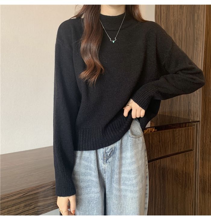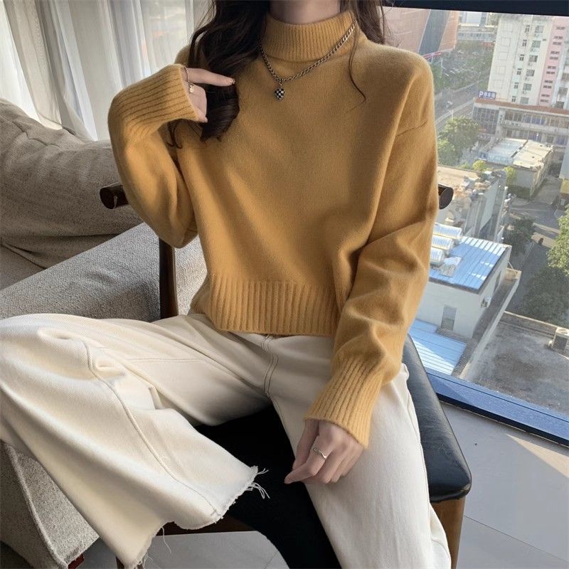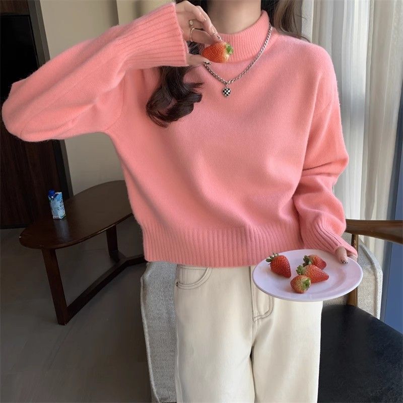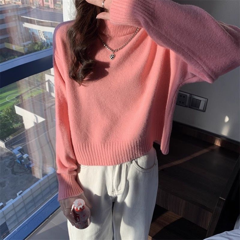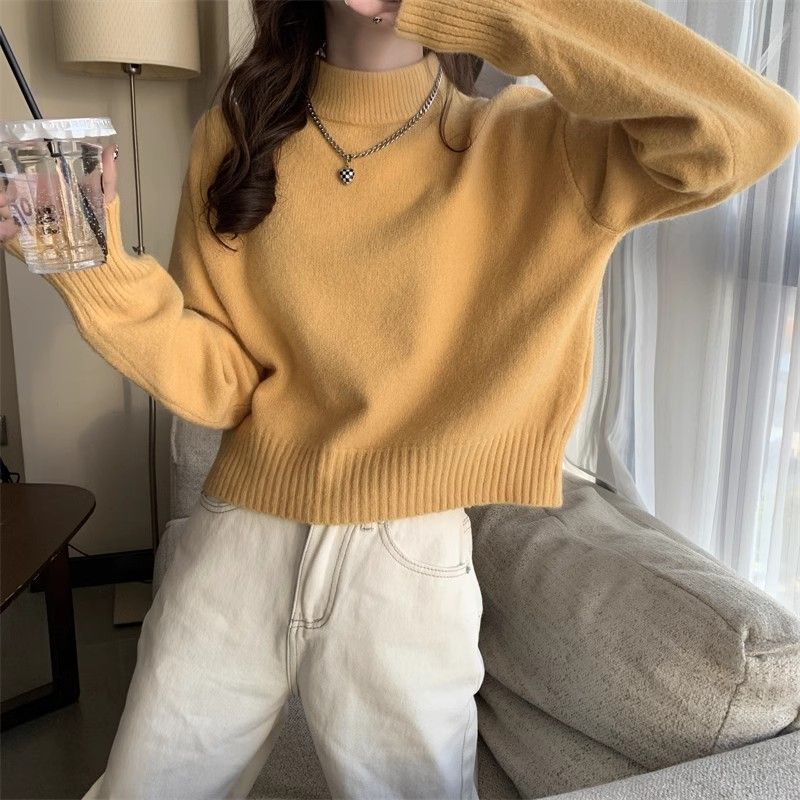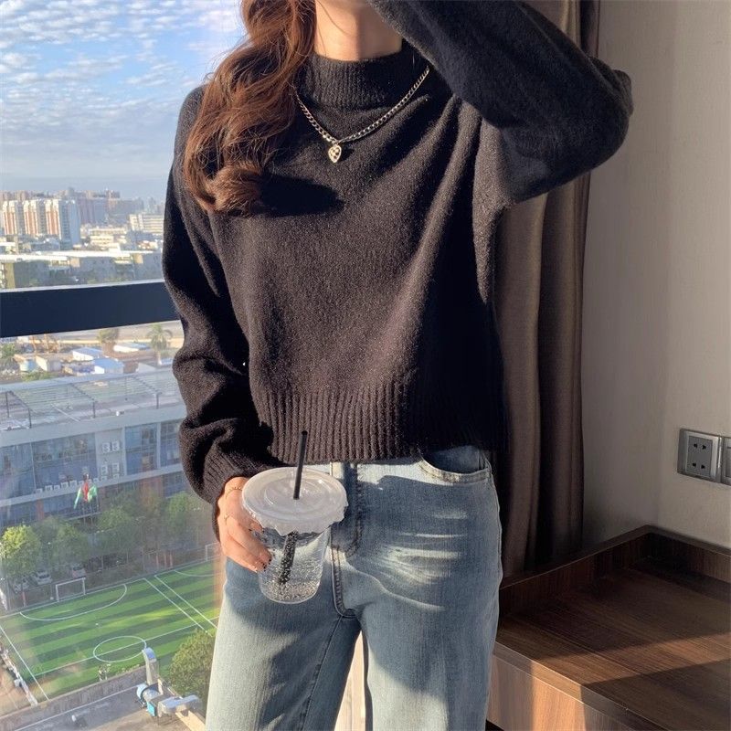 화이트 하프 하이 칼라 쇼트 탑 여성 스웨터 코트 내베이스 셔츠 가을 및 겨울 새로운 2025 작은 니트스토어 가기
