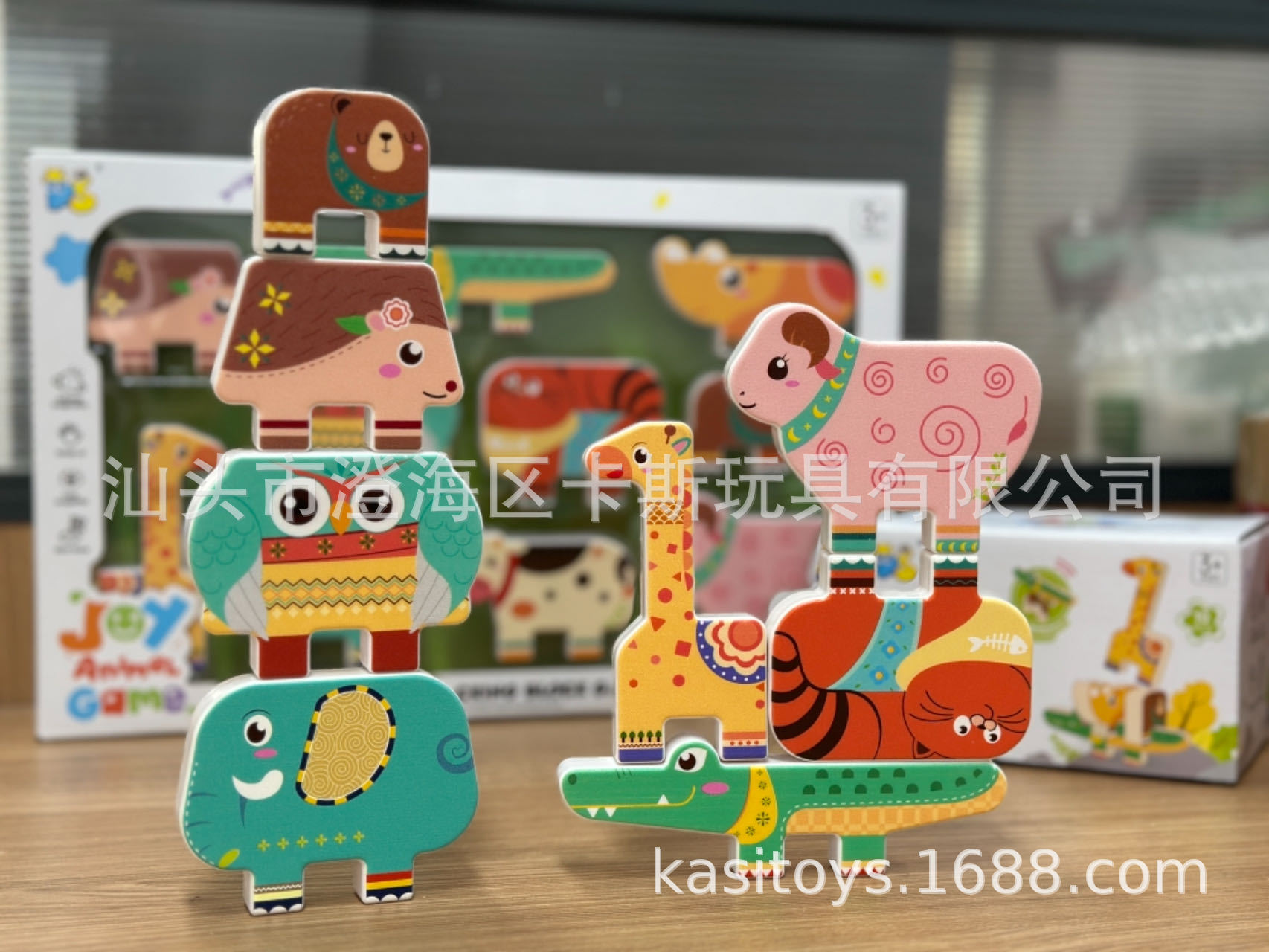 국경 간 어린이 동물 균형 스태킹 유치원 동물 패턴인지 스태킹 조기 교육 건물 블록 장난감스토어 가기